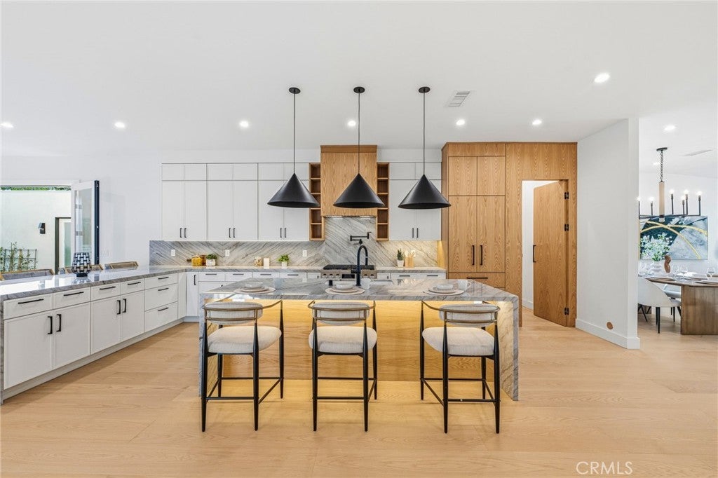 Located in the heart of Baldwin Hills on an exceptionally rare approximately 1/3-acre lot, this newly constructed modern residence offers a level of space, privacy, and flexibility seldom found within the city of Los Angeles. Spanning approximately 3,631 square feet, the home features 4 bedrooms and 4 bathrooms, thoughtfully designed to combine striking contemporary architecture with elevated everyday living. Inside, soaring ceilings and expansive open-concept living spaces create a dramatic yet welcoming atmosphere. Walls of glass fill the home with natural light and create a seamless connection between indoor and outdoor living. The gourmet kitchen serves as the centerpiece of the home, appointed with premium appliances, custom cabinetry, and an oversized island that flows effortlessly into the living and dining areas—ideal for both elegant entertaining and relaxed daily living. The primary suite is designed as a luxurious private retreat, featuring two custom walk-in closets and a spa-inspired bathroom that offers a tranquil escape from the pace of the city. The outdoor setting is truly exceptional. Rare for Los Angeles, the approximately one-third acre lot provides an expansive backyard oasis complete with a large pool, lush lawn, and generous space for outdoor lounging, dining, and entertaining. The property also offers ample room to add an ADU or pool house, presenting exciting possibilities for future expansion or guest accommodations. The extended driveway and detached garage provide remarkable on-site parking, with space for up to 10 vehicles or potential boat and RV parking, an extremely uncommon convenience in the city. Crowning the detached garage is a rooftop deck capturing sweeping city views, including a striking view of the Hollywood Sign—an unforgettable backdrop for sunset gatherings and evening entertaining. Combining bold modern design, resort-style outdoor living, and one of the largest residential lots in the area, this Baldwin Hills property represents a rare opportunity to enjoy space, privacy, and luxury in one of Los Angeles’ most sought-after hillside communities.