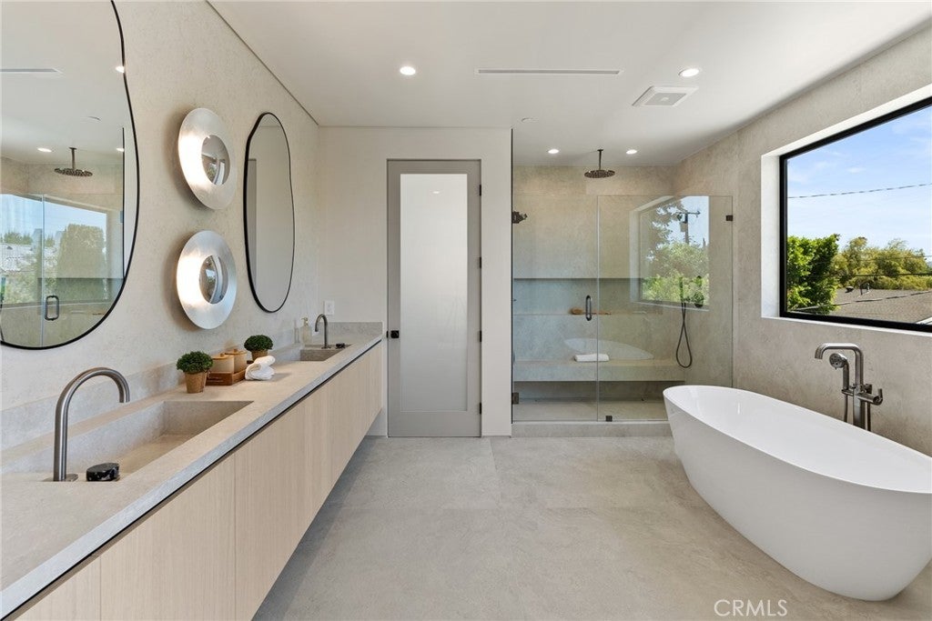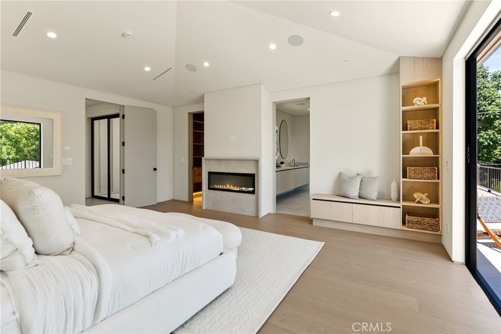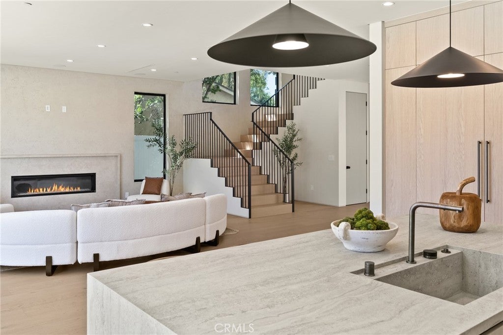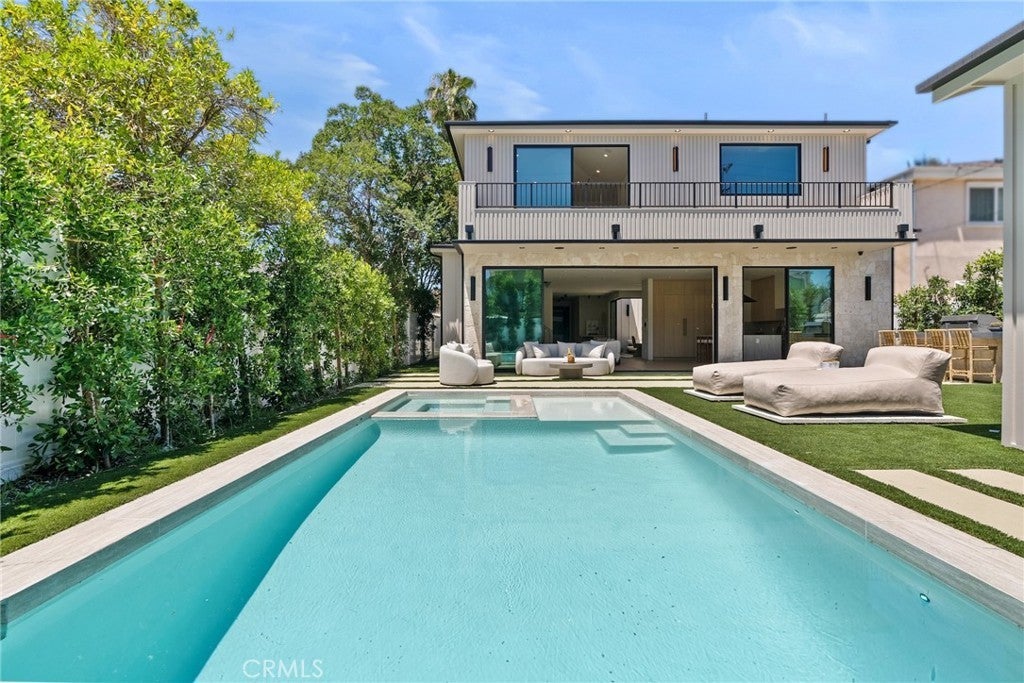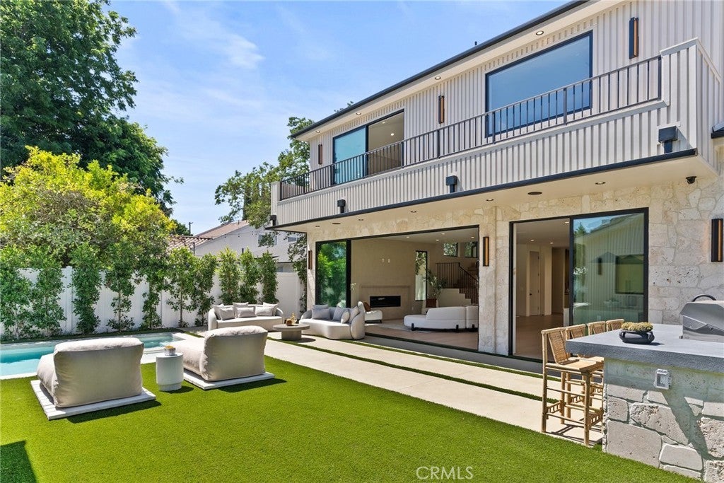 Welcome to this exceptional newly built 2025 gated estate, crafted by one of Sherman Oaks’ most acclaimed builders and designers, renowned for their visionary architecture, superior craftsmanship, and sophisticated blend of high-end materials.Situated on a serene street lined with luxury homes, just moments from Ventura Boulevard, this stunning residence sets a new standard for luxury living. Designed with both comfort and elegance in mind, the main house features 5 beds & 5.5 bathrooms, including a detached guest house. The open-concept floor plan is ideal for modern living, featuring wide-plank golden oak flooring, warm Venetian plaster walls, & expansive floor-to-ceiling windows flood the space with natural light. A dramatic family room with a sleek custom fireplace, & oversized pocket sliding doors that open to the backyard oasis. The designer chef’s kitchen is a true centerpiece, featuring custom cabinetry, high-end appliances, porcelain countertops, and a statement island with integrated stone sink & premium fixtures, blending functionality with artistry.The formal dining room is elevated by a statement wall & a designed wall wine holder adds a bold touch of sophistication and convenience for entertainers. The first-floor ensuite is perfectly positioned for use as a home office, wellness or guest room. A dramatic powder room with a floating stone sink adds a bold design element. Upstairs, soaring ceilings frame three generously sized ensuite bedrooms, shared front balcony and all with access to an oversized patio. The primary suite is a luxurious retreat, with a stunning fireplace, a designer wall finished in custom textured Venetian plaster infused with relaxing Tulum-inspired vibes, custom built-ins, a walk-in closet, and a private balcony. The spa-like bathroom boasts a soaking tub, dual rainfall showers & vanities. Step outside to a resort-style backyard with lush landscaping, a sparkling pool & spa, outdoor kitchen with b.b.q, a detached enclosed cabana equipped with a full bathroom & a kitchenette designed for guests, an office/pool house and effortless entertaining & relaxation. The Crestron smart home is equipped with built-in speakers, security cameras, and ambient LED lighting throughout. Located in a highly sought-after Sherman Oaks neighborhood, easy access to the area's best shops, dining, Kester magnet school and the 101 & 405 freeways. Own this rare opportunity, a one-of-a-kind 2025home that perfectly embodies both luxury & lifestyle.