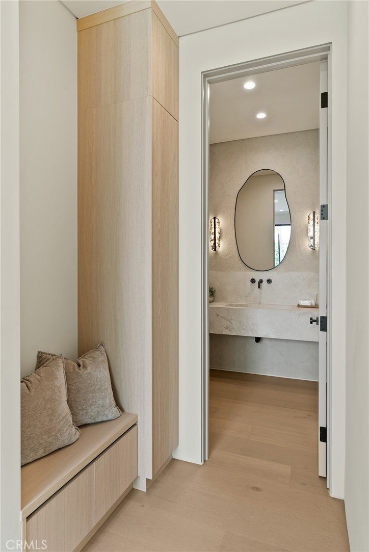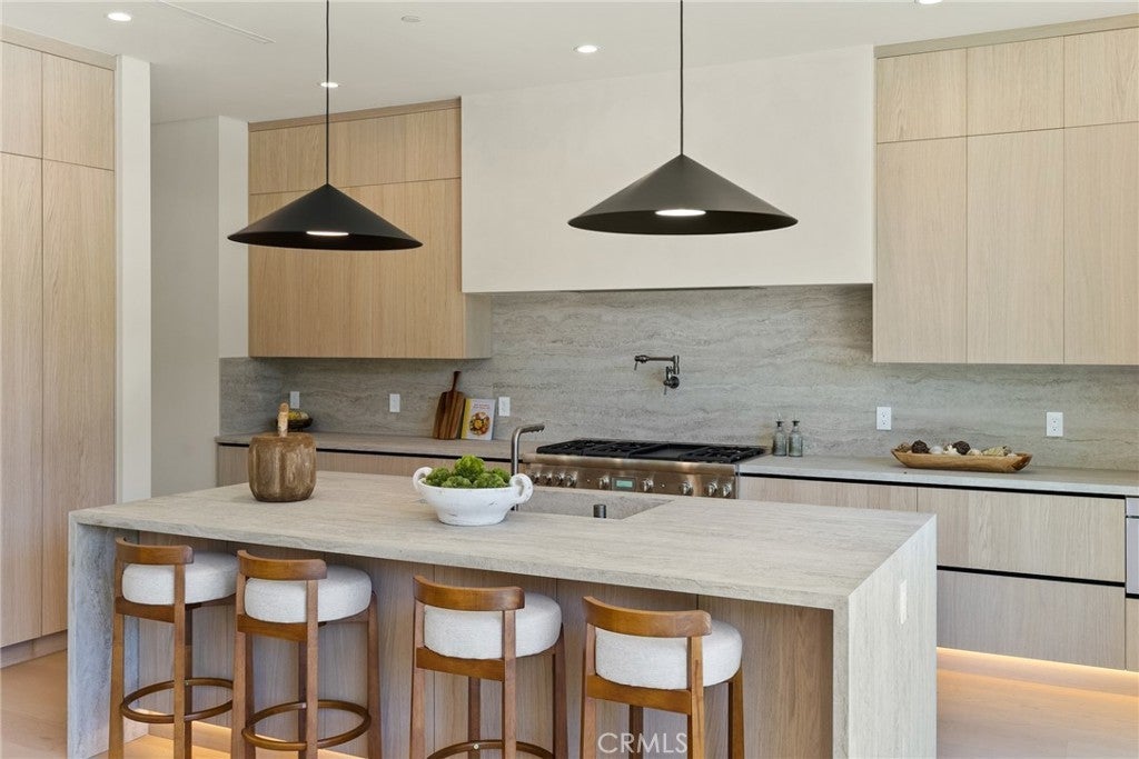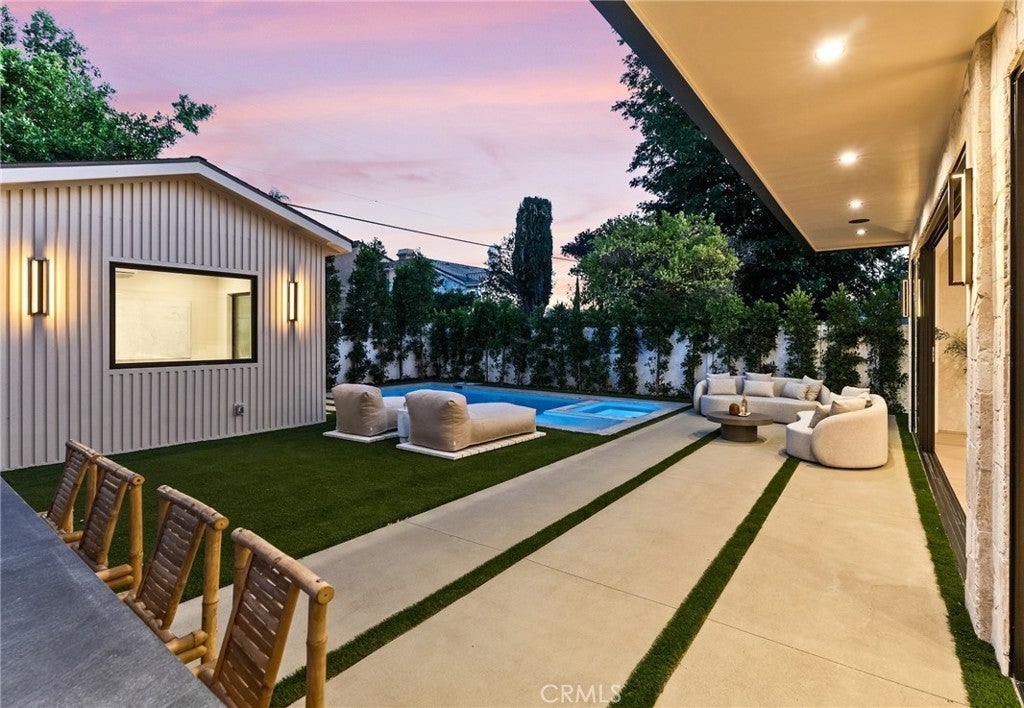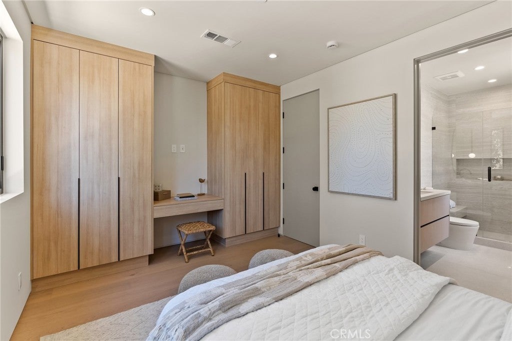 Welcome to this exceptional newly built 2025 gated estate, crafted by one of Sherman Oaks’ most acclaimed builders and designers, renowned for their visionary architecture, superior craftsmanship, and sophisticated blend of high-end materials.Situated on a serene street lined with luxury homes, just moments from Ventura Boulevard, this stunning residence sets a new standard for luxury living. Designed with both comfort and elegance in mind, the main house features 5 beds & 5.5 bathrooms, including a detached guest house. The open-concept floor plan is ideal for modern living, featuring wide-plank golden oak flooring, warm Venetian plaster walls, & expansive floor-to-ceiling windows flood the space with natural light. A dramatic family room with a sleek custom fireplace, & oversized pocket sliding doors that open to the backyard oasis. The designer chef’s kitchen is a true centerpiece, featuring custom cabinetry, high-end appliances, porcelain countertops, and a statement island with integrated stone sink & premium fixtures, blending functionality with artistry.The formal dining room is elevated by a statement wall & a designed wall wine holder adds a bold touch of sophistication and convenience for entertainers. The first-floor ensuite is perfectly positioned for use as a home office, wellness or guest room. A dramatic powder room with a floating stone sink adds a bold design element. Upstairs, soaring ceilings frame three generously sized ensuite bedrooms, shared front balcony and all with access to an oversized patio. The primary suite is a luxurious retreat, with a stunning fireplace, a designer wall finished in custom textured Venetian plaster infused with relaxing Tulum-inspired vibes, custom built-ins, a walk-in closet, and a private balcony. The spa-like bathroom boasts a soaking tub, dual rainfall showers & vanities. Step outside to a resort-style backyard with lush landscaping, a sparkling pool & spa, outdoor kitchen with b.b.q, a detached enclosed cabana equipped with a full bathroom & a kitchenette designed for guests, an office/pool house and effortless entertaining & relaxation. The Crestron smart home is equipped with built-in speakers, security cameras, and ambient LED lighting throughout. Located in a highly sought-after Sherman Oaks neighborhood, easy access to the area's best shops, dining, Kester magnet school and the 101 & 405 freeways. Own this rare opportunity, a one-of-a-kind 2025home that perfectly embodies both luxury & lifestyle.