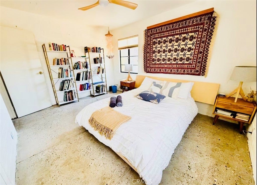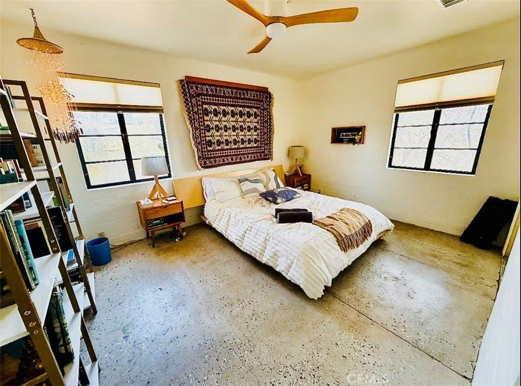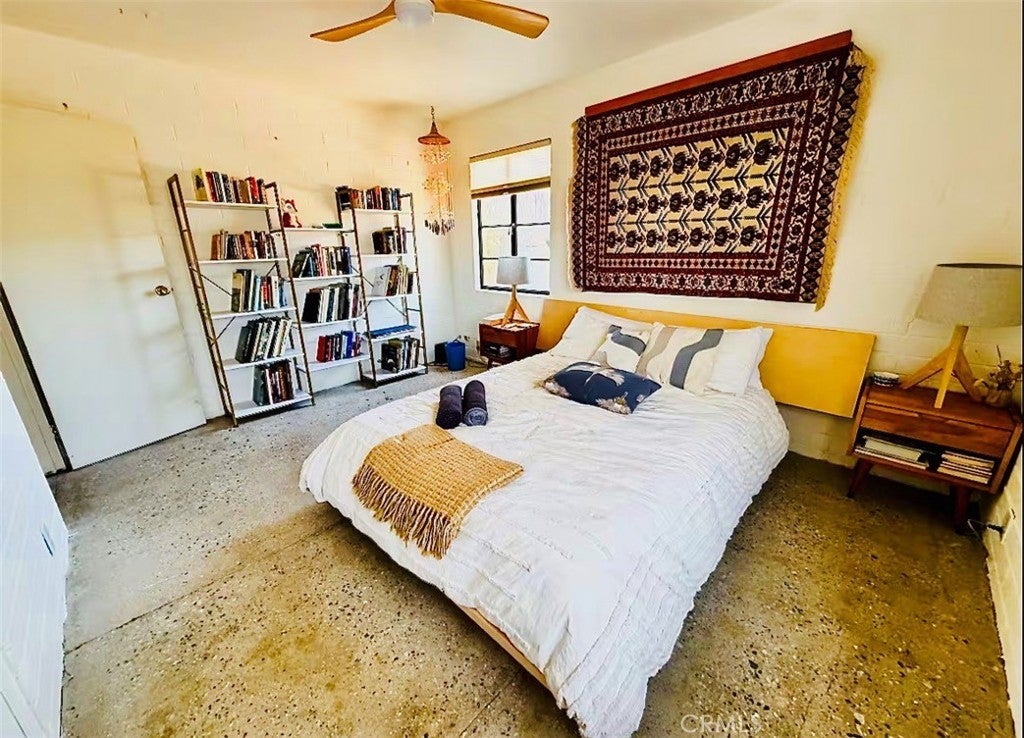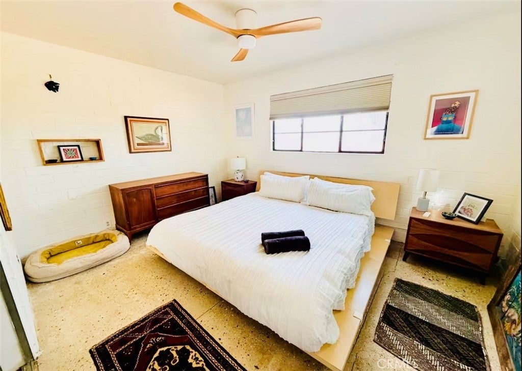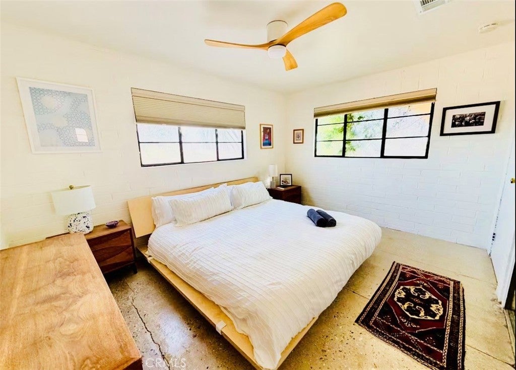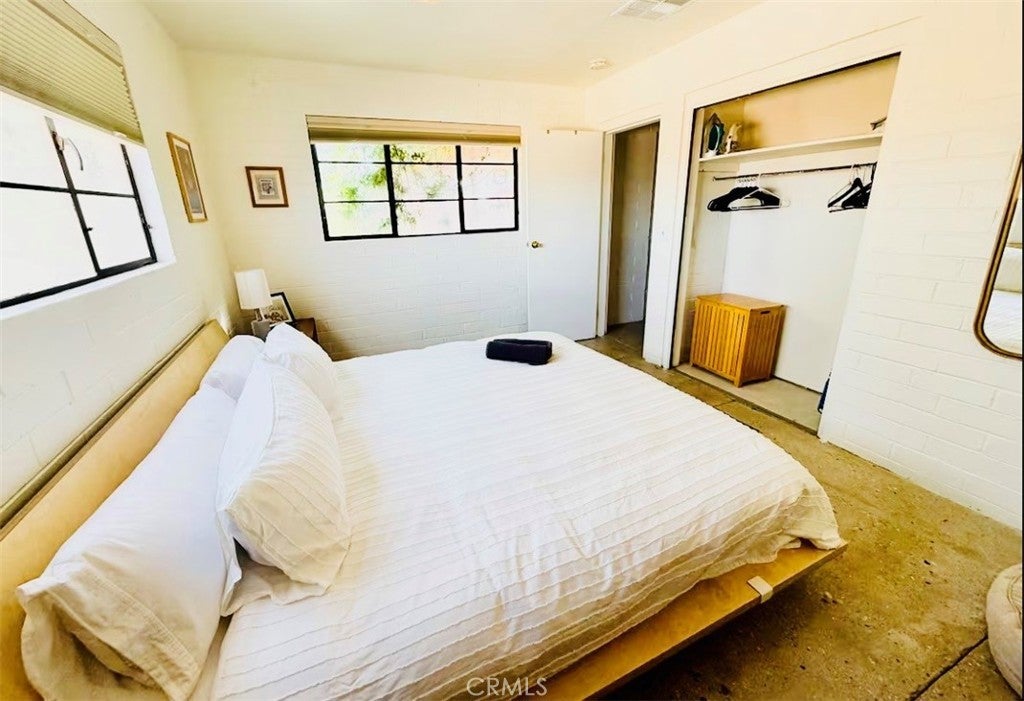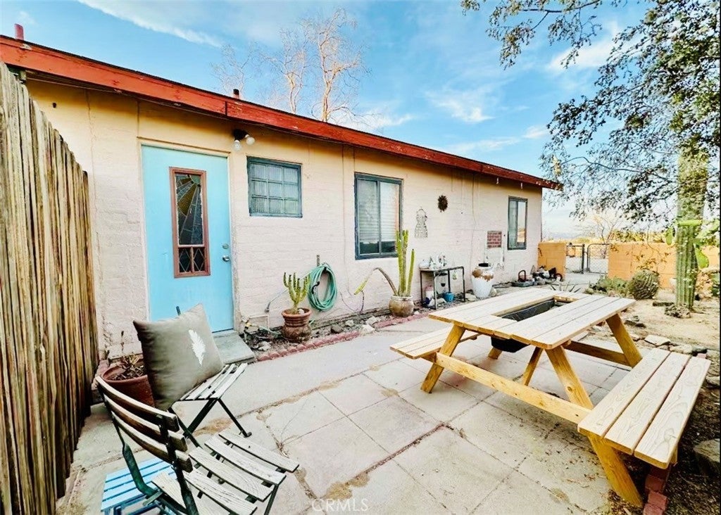 Desert-cool mid-century home on an approx. 1-acre corner lot, reworked for flexible multi-unit living and solid income potential while keeping its original character. The main home is currently set up as two spaces: one side offers a 3 bedroom, 1 bathroom layout with generous living and dining areas, and the other side is a 1 bedroom, 1 bathroom unit that works well for guests, long-term tenants, or a private workspace. The detached garage includes an added bathroom and functions as a studio-style third space, ideal for visitors, creative use, or potential rental. In total, the property lives as 5 bedrooms and 3 bathrooms; square footage is permitted per prior records. Solid masonry construction, simple clean lines, and a blend of original details with practical updates make this property feel both authentic and livable for today’s buyer, with plenty of room outside for parking, entertaining, and future ideas on the approx. 1-acre lot, close to the USMC base, downtown Twentynine Palms, and Joshua Tree National Park—buyer to verify.