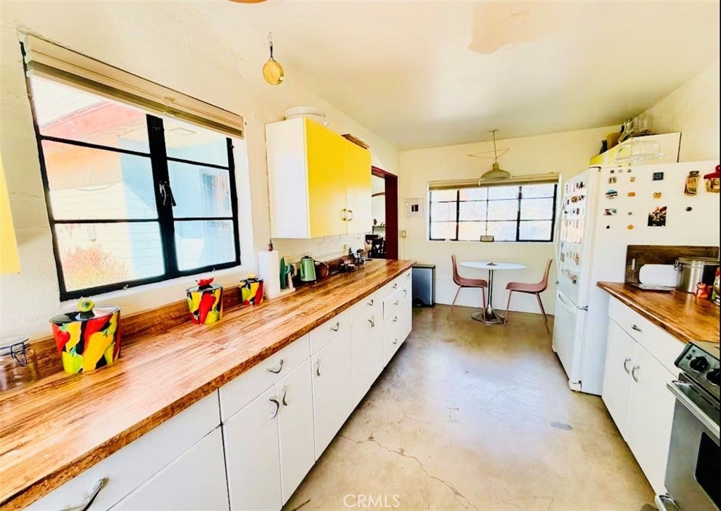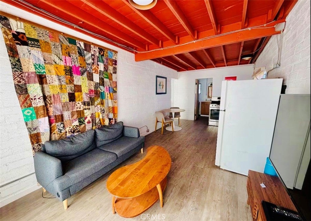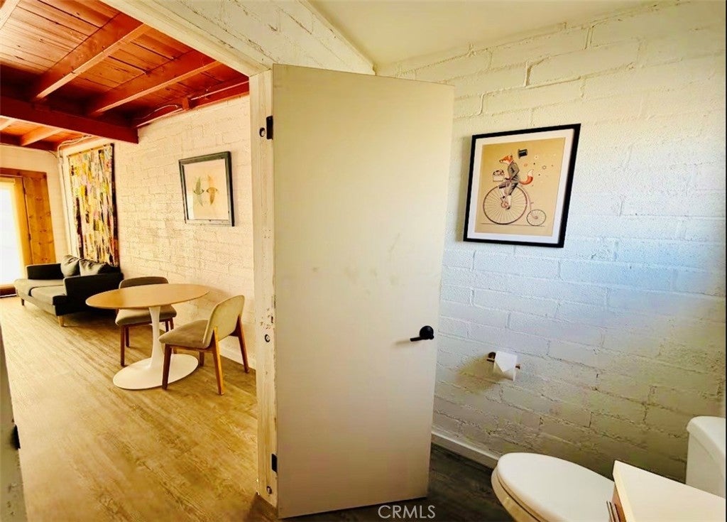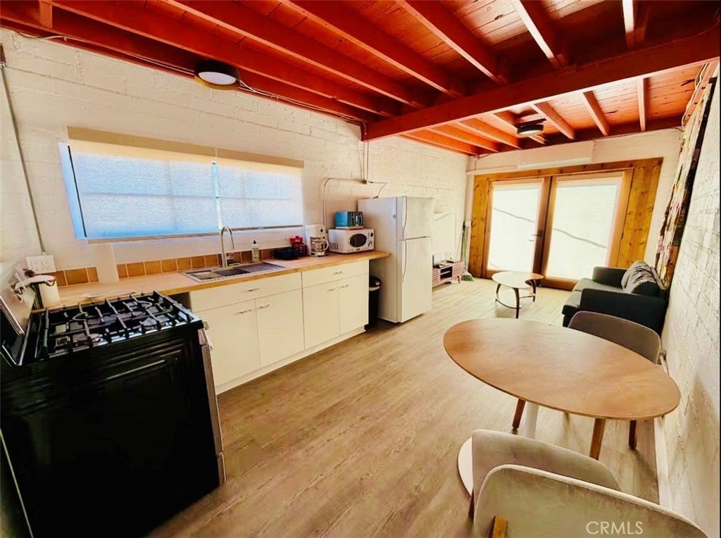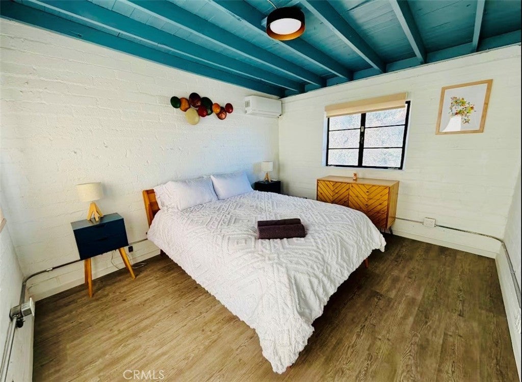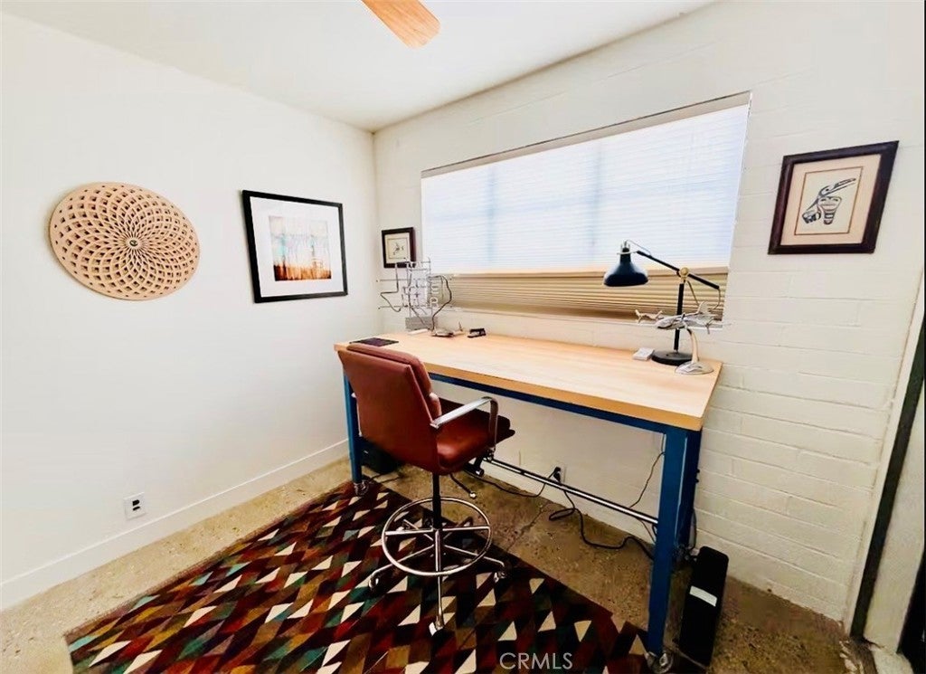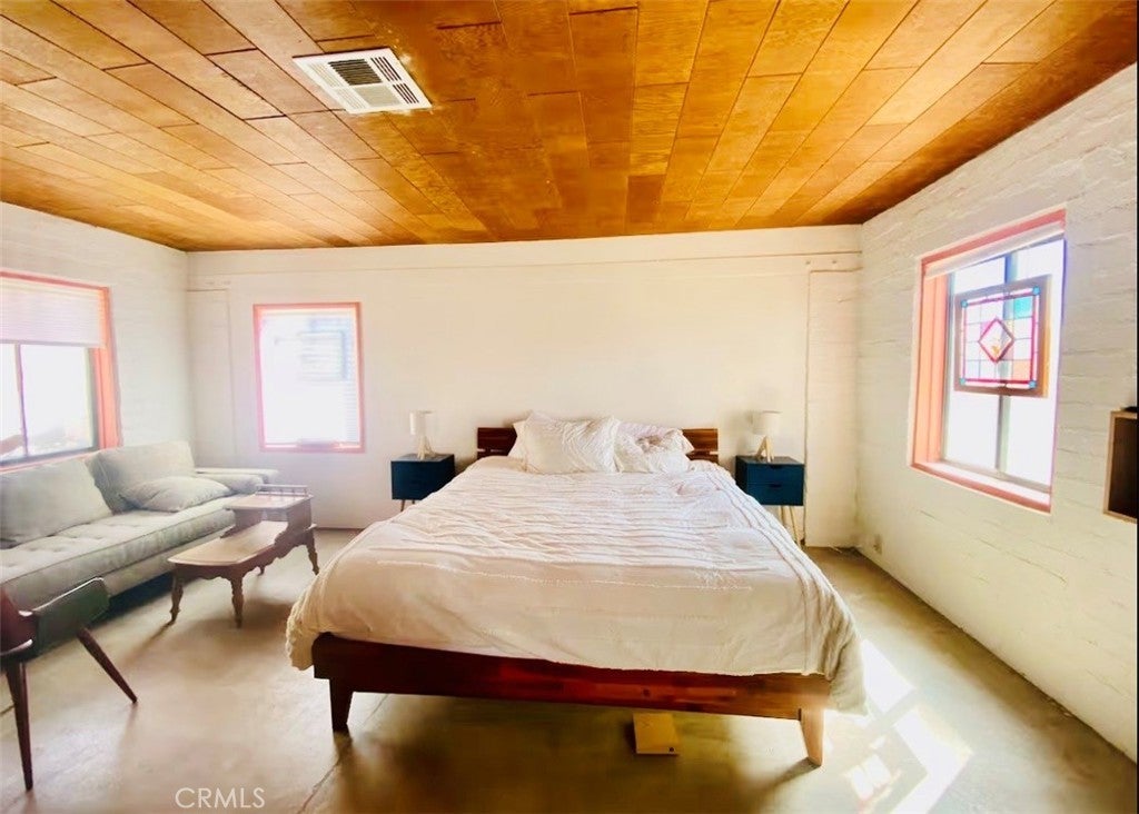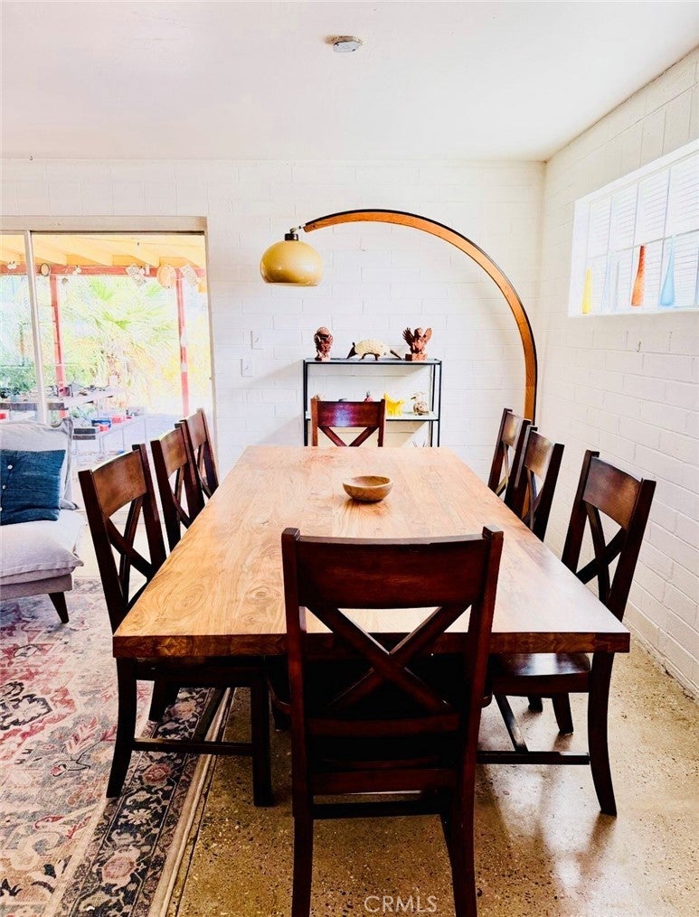 Desert-cool mid-century home on an approx. 1-acre corner lot, reworked for flexible multi-unit living and solid income potential while keeping its original character. The main home is currently set up as two spaces: one side offers a 3 bedroom, 1 bathroom layout with generous living and dining areas, and the other side is a 1 bedroom, 1 bathroom unit that works well for guests, long-term tenants, or a private workspace. The detached garage includes an added bathroom and functions as a studio-style third space, ideal for visitors, creative use, or potential rental. In total, the property lives as 5 bedrooms and 3 bathrooms; square footage is permitted per prior records. Solid masonry construction, simple clean lines, and a blend of original details with practical updates make this property feel both authentic and livable for today’s buyer, with plenty of room outside for parking, entertaining, and future ideas on the approx. 1-acre lot, close to the USMC base, downtown Twentynine Palms, and Joshua Tree National Park—buyer to verify.