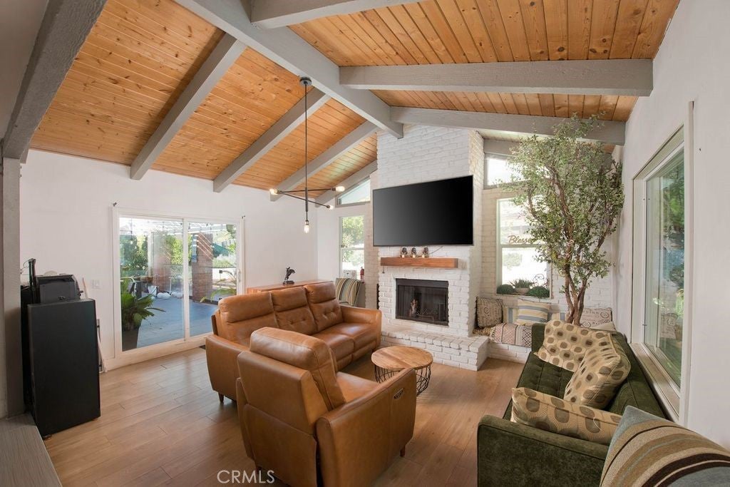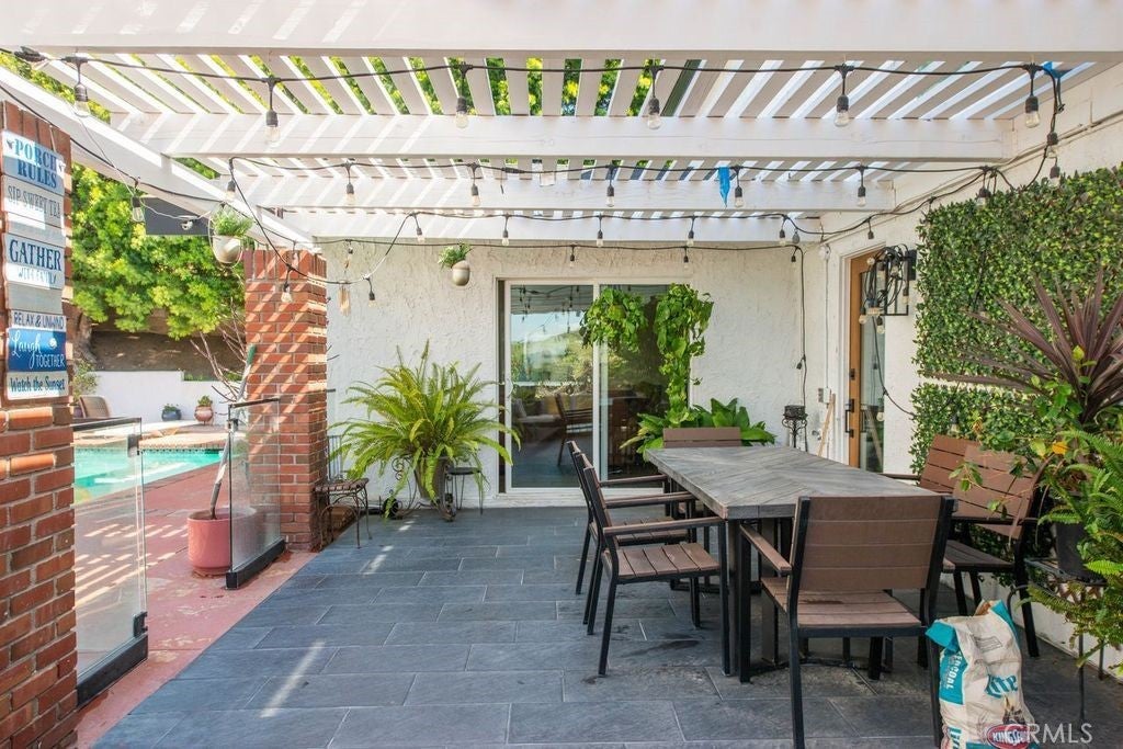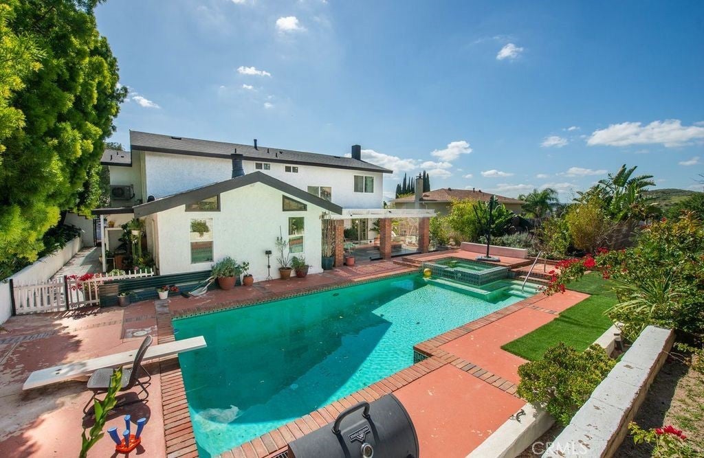Gorgeous Large Family House with a Pool and ADU!! The Main house is a five bedroom 3 bath home with four bedrooms upstairs and one downstairs. It features an open floor plan with recently remodeled kitchen and bathrooms. It also has Central heating and air conditioning, Dual pane windows, Owned Solar power production, High wood beam ceilings, Pool, Two fireplaces, Fruit trees and two covered patios. The ADU has its own entrance and is attached to the main house but doesn't allow access. It is a Two bedroom and Two bath unit this is approximately 1000 sq. ft. . It is perfect for a rental income or keeping family close. This home is Located North of the 118 freeway close to many different shopping centers and parks.