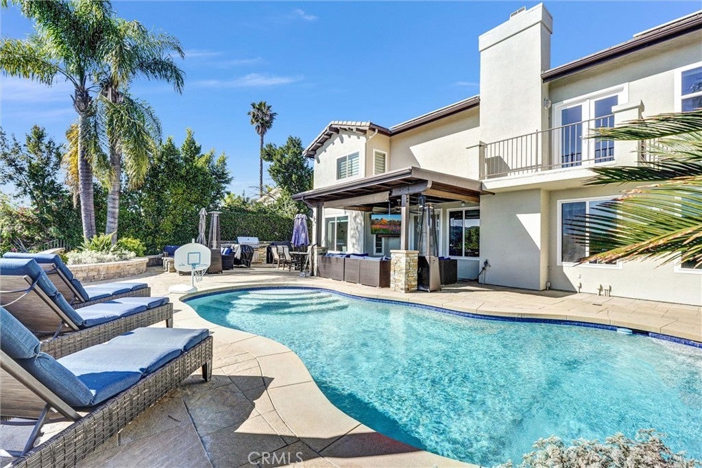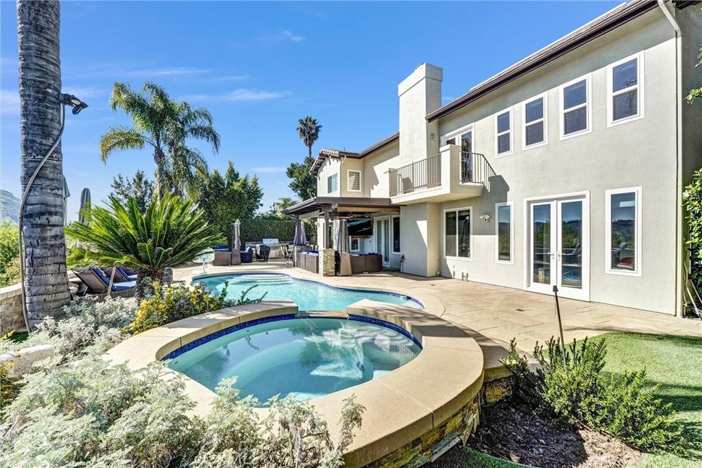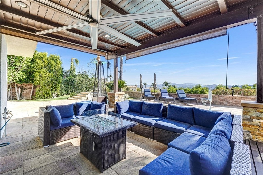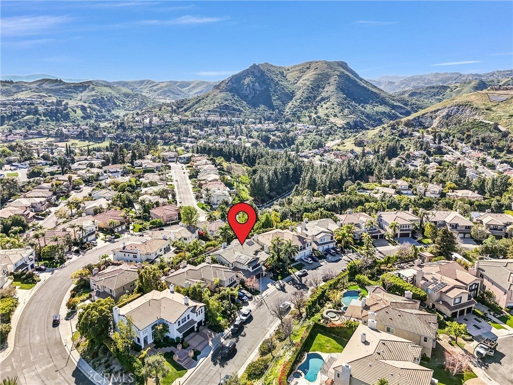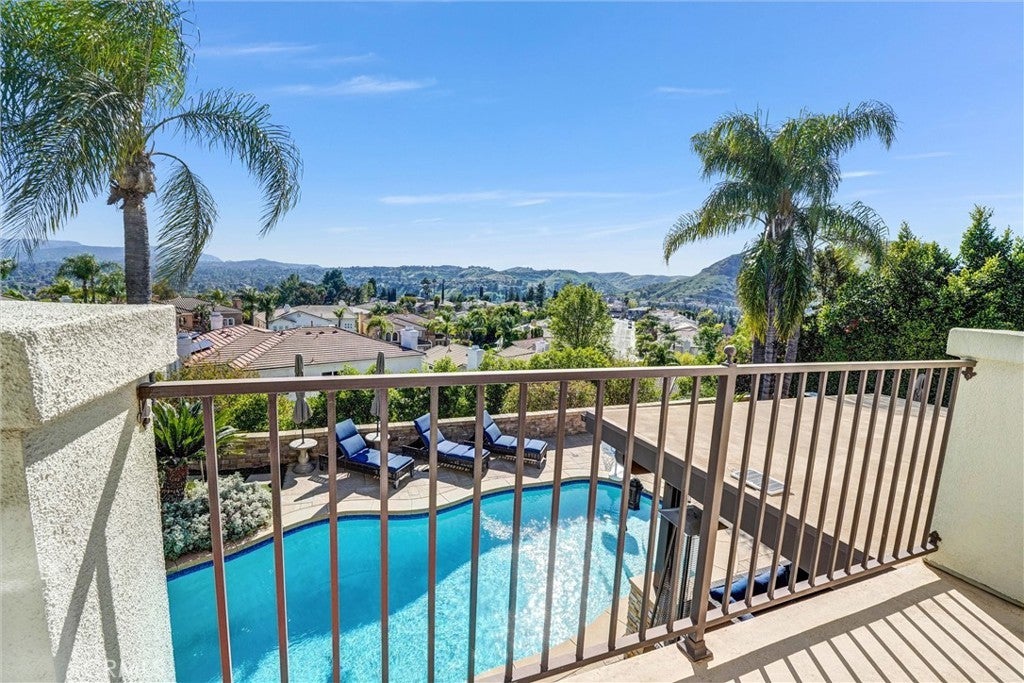 Perched in the highly desirable Monte Vista neighborhood, this impressive six bedroom, five bathroom home offers generous living space, stunning views, and exceptional upgrades throughout. A grand entry welcomes you with soaring ceilings and a dramatic staircase, setting the tone for the spacious and warm light filled interior. Step down into the elegant formal living room anchored with a custom fireplace and adjacent dining room featuring beautiful French doors. Additional living space is found in the expansive family room filled with natural light showcasing the breathtaking 180-degree valley and mountain views, along with custom shelving, recessed lightning and a cozy fireplace perfect for cool evenings. The newly remodeled kitchen is designed for both everyday living and entertainment, featuring a large center island, GE stainless steel appliances, and beautiful stone countertops. Crisp and clean white custom cabinets are abundant as well as vast counter space for large family meals or an active cook. Energy efficient dual-pane doors and windows with automated blinds provide comfort and convenience throughout the home while showcasing the beautiful lush foliage that surrounds the property. The flexible "Plan 5" floor plan includes two bedrooms a full bathroom plus powder room on the main level, ideal for guests or multi-generational living. A sixth bedroom can easily serve as a playroom, office, home gym or den. Upstairs, the grand primary suite offers a private balcony with stunning views, dual closets, and a spa-inspired bathroom complete with a soaking tub, separate shower, and dual vanities. Three additional generously sized guest bedrooms complete the upper level. The backyard is an entertainer’s dream featuring newer pavers, resurfaced heated pool, cascading spa, built-in BBQ, and large built-in fire pit situated to take in the Valleys beautiful sunsets. You will want to show off your incredible views to family and friends or quietly relax in the shade under the custom gazebo. Additional highlights include fully paid solar, two EV charging stations in the garage, and a comprehensive Ring security system with cameras and alarm surrounding the home inside and out as well as controls for the exterior landscape lighting. This exceptional property showcases pride of ownership with high end finishes that combine space, comfort, and modern amenities in the most sought-after West Hills neighborhood.