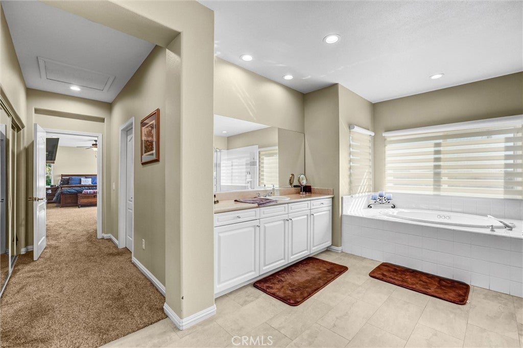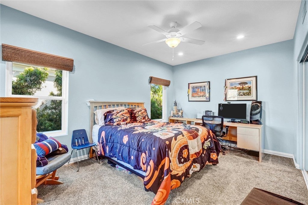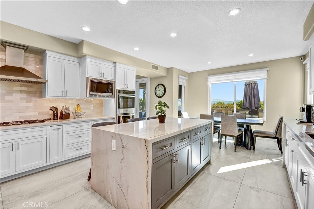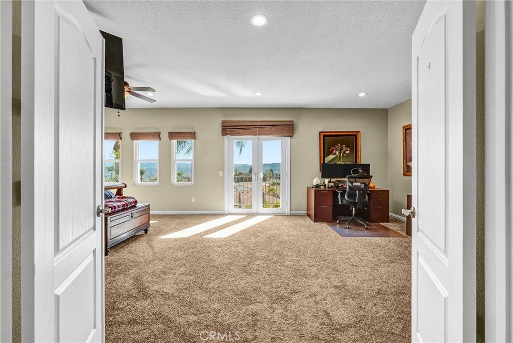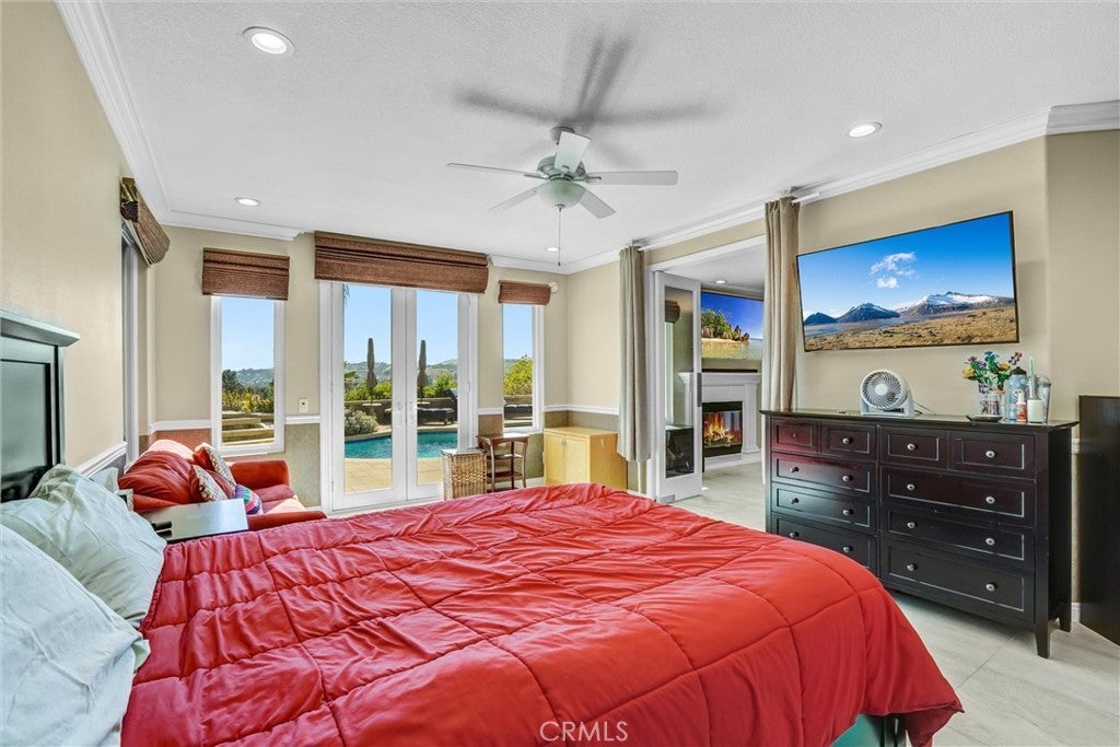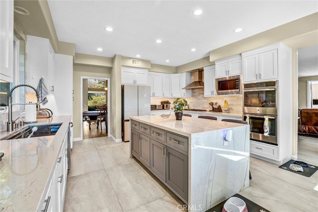 Perched in the highly desirable Monte Vista neighborhood, this impressive six bedroom, five bathroom home offers generous living space, stunning views, and exceptional upgrades throughout. A grand entry welcomes you with soaring ceilings and a dramatic staircase, setting the tone for the spacious and warm light filled interior. Step down into the elegant formal living room anchored with a custom fireplace and adjacent dining room featuring beautiful French doors. Additional living space is found in the expansive family room filled with natural light showcasing the breathtaking 180-degree valley and mountain views, along with custom shelving, recessed lightning and a cozy fireplace perfect for cool evenings. The newly remodeled kitchen is designed for both everyday living and entertainment, featuring a large center island, GE stainless steel appliances, and beautiful stone countertops. Crisp and clean white custom cabinets are abundant as well as vast counter space for large family meals or an active cook. Energy efficient dual-pane doors and windows with automated blinds provide comfort and convenience throughout the home while showcasing the beautiful lush foliage that surrounds the property. The flexible "Plan 5" floor plan includes two bedrooms a full bathroom plus powder room on the main level, ideal for guests or multi-generational living. A sixth bedroom can easily serve as a playroom, office, home gym or den. Upstairs, the grand primary suite offers a private balcony with stunning views, dual closets, and a spa-inspired bathroom complete with a soaking tub, separate shower, and dual vanities. Three additional generously sized guest bedrooms complete the upper level. The backyard is an entertainer’s dream featuring newer pavers, resurfaced heated pool, cascading spa, built-in BBQ, and large built-in fire pit situated to take in the Valleys beautiful sunsets. You will want to show off your incredible views to family and friends or quietly relax in the shade under the custom gazebo. Additional highlights include fully paid solar, two EV charging stations in the garage, and a comprehensive Ring security system with cameras and alarm surrounding the home inside and out as well as controls for the exterior landscape lighting. This exceptional property showcases pride of ownership with high end finishes that combine space, comfort, and modern amenities in the most sought-after West Hills neighborhood.