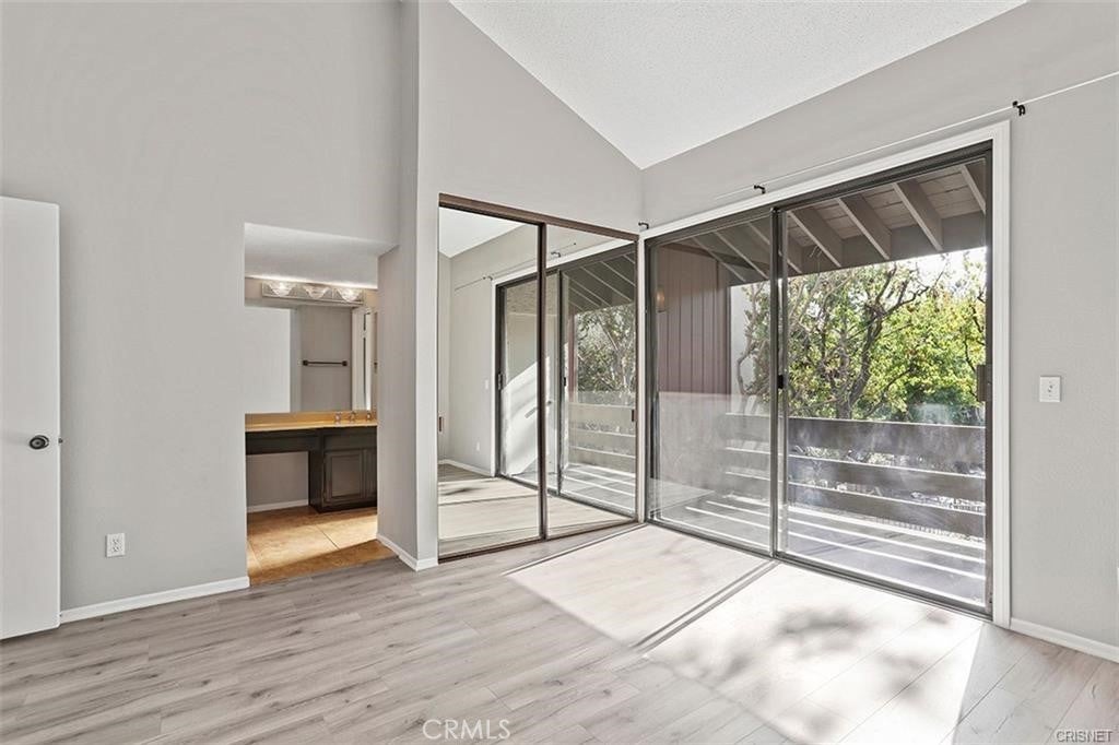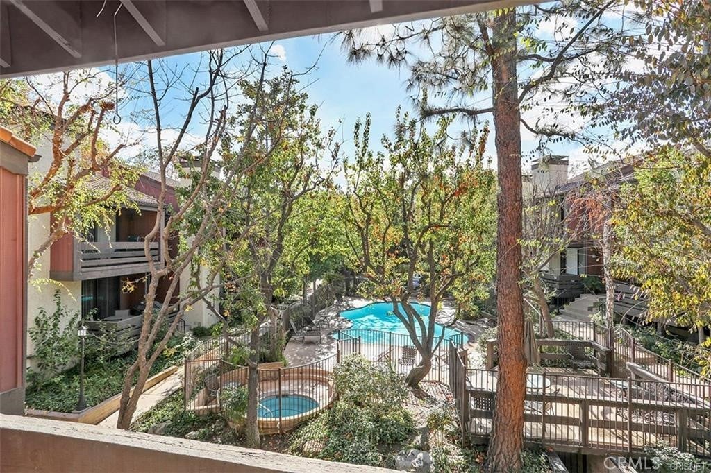 Offering this stunning, remodeled, resort-style townhouse in the heart of Warner Center in Woodland Hills. Private entrance opens up to a grand Family Room with tall ceilings and cozy fireplace. Enjoy a spacious patio adjacent to the Family Room, perfect for entertainment and relaxation. Upgrades include new hardwood floors and fresh paint throughout entire unit including the cabinets in the kitchen and all bathrooms. Kitchen features a generous dining area absorbing copious amounts of natural light. At the top of the stairs you will find two large bedrooms with vaulted ceilings. Across the hallway is the Master Suite boasting an en-suite bathroom, walk-in closet, vaulted ceilings, and a private balcony surrounded by lush, mature trees. Bottom level includes a bonus room/den and laundry area with direct access to an attached two-car garage. Warner Woods features a luxurious pool and spa conveniently located adjacent to this unit. Situated on the other side of Marylee, Warner Center Park is perfect for a wide array of activities. This home is located minutes away from The Westfield Topanga and The Village Mall, the 101 Freeway, AMC Promenade 16 Movie Theatre, and the finest restaurants, shops, and nightlife that Woodland Hills has to offer.