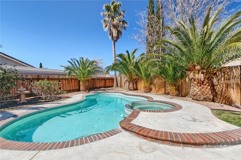 Located in the desirable California Horizon subdivision of West Lancaster near Quartz Hill, this beautifully maintained 3-bedroom, 2-bath home offers comfort, convenience, and a true backyard retreat!! NEW AC condenser and NEW water heater! Step inside to an inviting open floor plan where the kitchen flows seamlessly into the living room, creating a bright and welcoming space perfect for both everyday living and entertaining. The home features a tasteful combination of tile and wood flooring, while a cozy gas fireplace adds warmth and charm to the main living area. The practical layout includes a two-car garage with direct access into a convenient service porch laundry area, making daily tasks easy and efficient. Step outside and you'll discover the real showstopper — a stunning resort-style backyard. Towering palm trees surround a sparkling pool and relaxing jacuzzi, creating a private oasis ideal for enjoying sunny Antelope Valley days or hosting gatherings with friends and family. Location is another highlight. The home is just minutes from local schools to include Sundown Elementary, Endeavour & Quartz Hill High School and a nearby plaza featuring a top rated pastry & coffee shop, Sinful Treats along with the well-known The Raven’s Nest restaurant — perfect for quick morning coffee runs or casual dining close to home. If you're looking for a home that blends indoor comfort with outdoor luxury in one of West Lancaster’s most desirable neighborhoods, this California Horizon property is a must-see!!