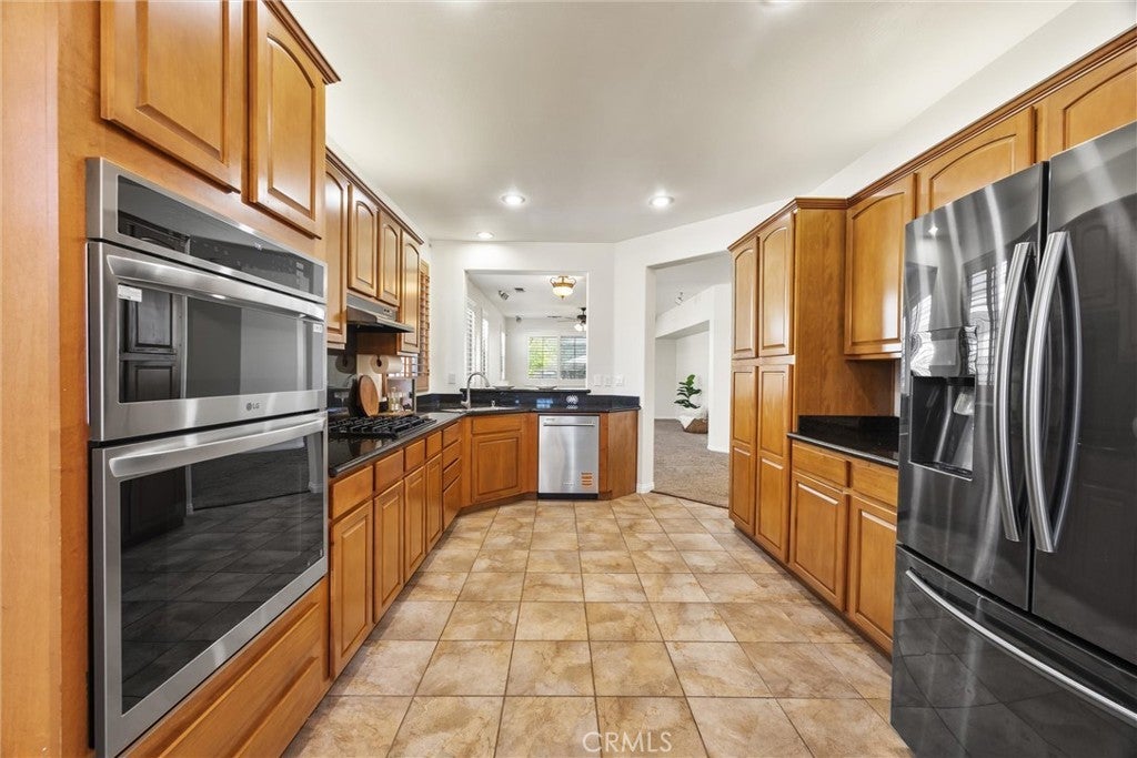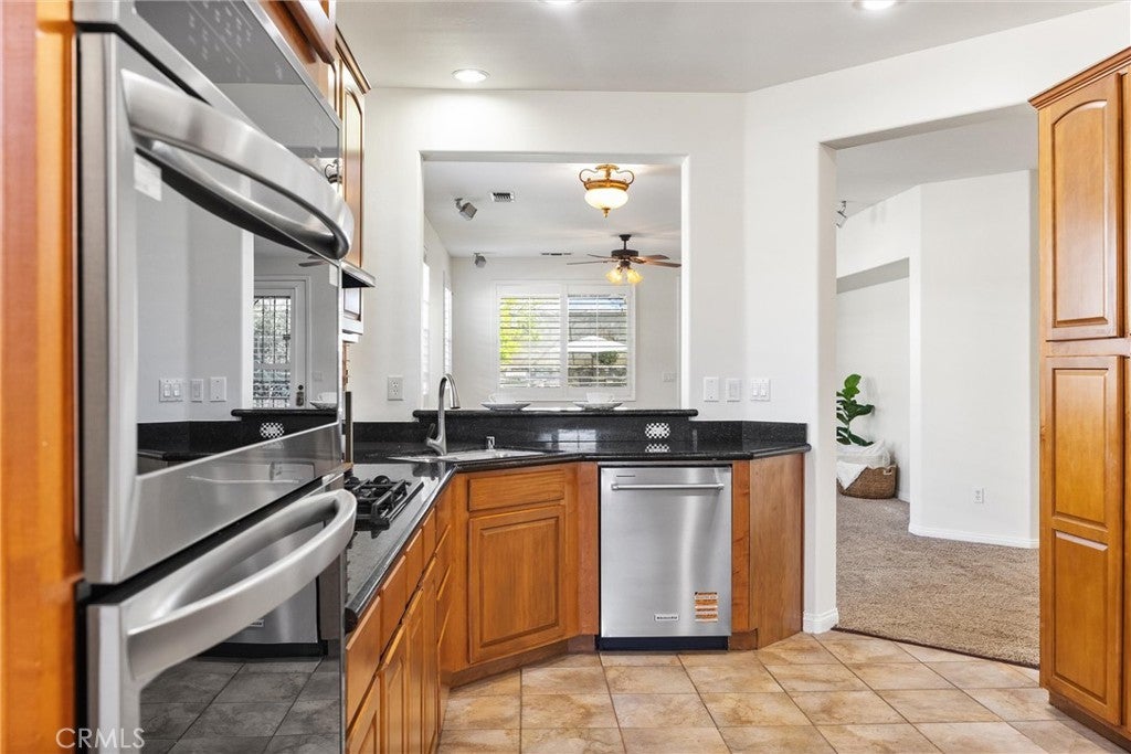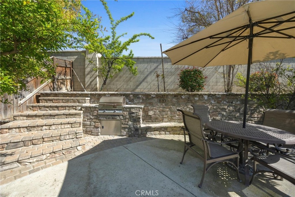 Located on the only cul-de-sac in the desirable gated Brighton Place community, this home offers one of the larger backyards in the neighborhood. Freshly painted throughout, the home feels bright, clean and move-in ready. The kitchen features granite countertops, new high-end oven and microwave (2026), newer dishwasher and bar-top seating ideal for everyday living and entertaining. The primary suite includes double sinks, a soaking tub and separate walk-in shower. The backyard is designed for entertaining with a custom masonry built-in BBQ, two patio areas, and an elevated terrace with mature fruit trees including pomegranate, lemon, apricot, peach, pear, grapes, plum and tangerine. The home has been consistently maintained and thoughtfully cared for. Brighton Place offers a resort-style community pool, park and community amenities near shopping and dining. Homes on the cul-de-sac in Brighton Place rarely come available.
