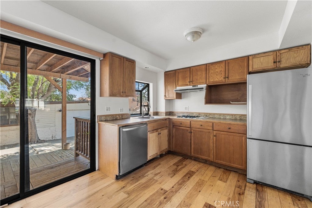 Incredible opportunity to own this unique 4-bedroom plus loft home with 4.5 bathrooms and 2,571 sq ft of beautiful custom living space in a high desirable pocket of Sunland. The versatile floor plan offers exceptional flexibility. The first floor features a private suite complete with its own living room, kitchen, bedroom, and full bathroom. This space can be closed off and includes a separate exterior entrance, making it ideal for extended family, guests, or rental potential. The first floor also includes another bedroom with its own ensuite bathroom. Upstairs you will find a spacious living room with a custom fireplace and new carpet, a beautiful kitchen, dining room, and two private decks perfect for relaxing or entertaining. Enjoy beautiful mountainous views from the living room and kitchen. The primary bedroom is also located on this level and includes a beautiful spa-like bathroom. An additional spacious secondary bedroom with its own ensuite bathroom completes the floor. Stairs from the living room lead to a large loft, ideal for a home office, exercise space, or family room. The exterior features a beautiful yard with lush trees, where tranquil peacocks roam the neighborhood. The property also offers a driveway leading to a two-car garage in the back, along with a convenient storage shed. The backyard includes citrus trees, privacy, and plenty of space for outdoor enjoyment. Hurry before its sold!