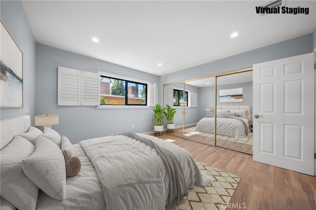 Welcome to this charming and peaceful townhome located in the heart of Valley Village! Situated in a well-maintained 6-unit complex, this bright and spacious residence offers an open floor plan and thoughtful updates throughout. Recent upgrades include new dual-pane windows, fresh interior paint, smooth ceilings, new flooring, new recessed lighting, new crown moldings, new stainless-steel appliances, new bathroom ventilation fans, and a newer roof (2024), making this home truly move-in ready. The inviting living room features a cozy fireplace and custom window shutters. The kitchen is light, offering granite countertops, a pantry, new stove and range hood, dishwasher, and a convenient in-unit laundry area. Upstairs you’ll find two generously sized bedrooms, including a spacious primary suite with two large closets and a private bathroom featuring a relaxing soaking tub. The second bedroom includes new flooring and a large closet and is conveniently located near the upstairs guest bathroom with a bathtub. The main level also features a convenient powder room for guests. convenient side-by-side parking spaces in the subterranean garage. Step outside to enjoy the beautifully maintained shared backyard with a covered patio, mature landscaping, and fruit trees—an ideal setting for relaxing afternoons or casual gatherings. Additional highlights include two assigned covered parking spaces with extra storage. The home is ideally located near NOHO West, Trader Joe’s, popular dining spots, coffee shops, and offers easy access to major freeways. Don’t miss this wonderful opportunity to own a beautifully updated home in one of Valley Village’s most desirable neighborhoods. Some photos have been virtually staged.