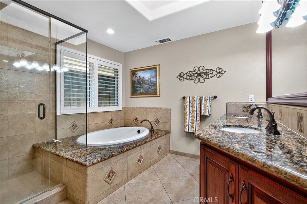 Located in a quiet cul-de-sac in the prestigious Fort Washington area, this beautifully updated home is just one block from Fort Washington Country Club. The HOA community offers 24/7 security patrol, maintained landscaping, and neighborhood standards for only $560 annually. The home features a tile roof, brick façade, durable exterior coating, and professional landscaping. Major upgrades include a full-house repipe, whole-house water filter and softener, dual Rinnai tankless water heaters, triple-pane windows (except under the covered patio), an insulated attic, and a wraparound covered patio ideal for entertaining. A monitored ADS security system is also included. Inside, each room offers thoughtful custom design. Highlights include a living room with beam ceilings, skylight, and designer lighting; a remodeled kitchen with granite counters, lighted cabinets, and KitchenAid appliances; and a dining area with unique ceiling detail. The primary suite features open beam ceilings and a remodeled bath with granite and skylight. Additional bedrooms offer custom lighting, ceilings, and architectural accents. This is a rare opportunity in one of Fresno’s most desirable neighborhoods.