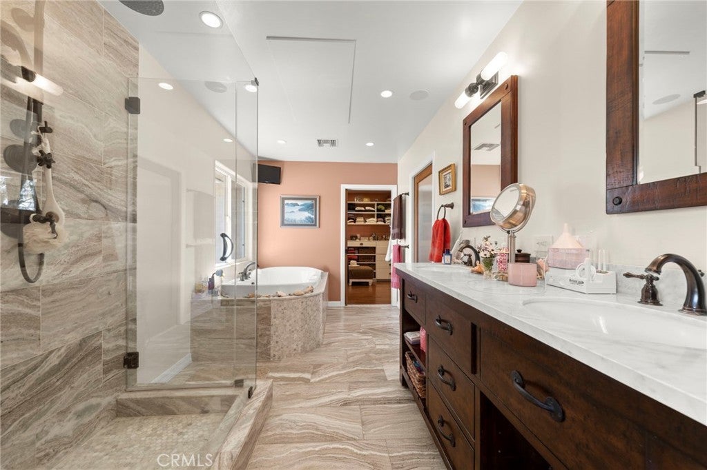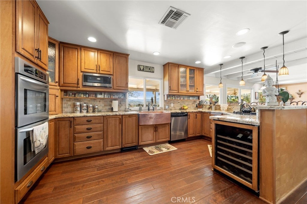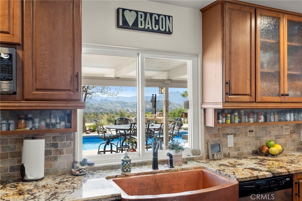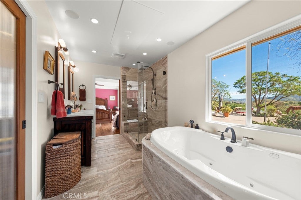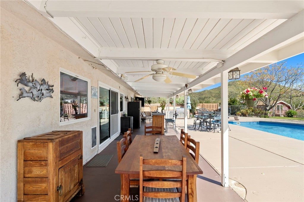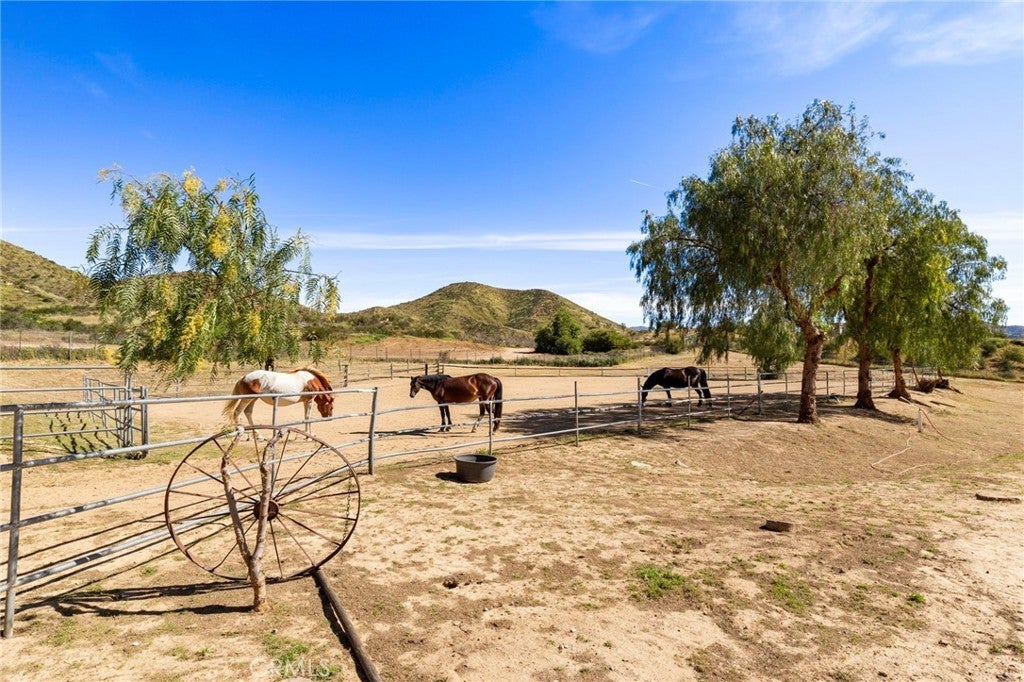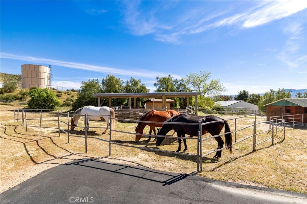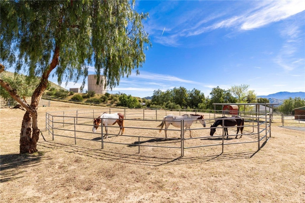 Experience the ultimate equestrian lifestyle on this exceptional 3-bedroom, 4-bath ranch estate located in the scenic community of Agua Dulce. Set on 3.7 fully fenced and gated acres, this property combines privacy, functionality, and breathtaking natural beauty. The main home features a large primary suite with a walk-in shower and a Aquatic Serenity Drift Bath, massive walk in closet, two additional bedrooms and three additional bathrooms, including one outside for pool guests with a walk in shower. Entertainers gourmet upgraded kitchen complete with a walk-in pantry, beverage fridge and modern appliances—perfect for family living and entertaining. Don't forget the hand hammered custom copper farm sink. Modern comforts include engineered wood flooring, Custom tile and stone work in primary bath, a lighting control system, network Wi-Fi coverage throughout the main house, garage/studio, and gate, a CCTV security system with six cameras, and a Sonos music system with built-in indoor and outdoor speakers for seamless audio throughout the property. Designed for horse enthusiasts, the ranch includes two (2) Castlebrook barns, each with three stalls, two tack rooms, large turnouts. Also included are a spacious riding arena, and a round pen, ideal for training and daily equestrian care. Ride your horse right off the property to many established trails nearby. Additional highlights include a large detached shop/garage with a 500 sq ft studio apartment above complete with mini split HVAC unit, perfect for guests, rental income, gym, meditation retreat or a private office. The property also features a paved driveway and a 14kW backup generator for uninterrupted operations. For relaxation and entertaining, enjoy the in ground pool and outdoor living spaces, an entertainer’s delight, all framed by stunning panoramic views of the Vasquez Rocks and beyond, creating a serene backdrop for ranch living. This stunning Agua Dulce equestrian ranch offers the perfect combination of horse facilities, luxury amenities, spa-like primary suite, entertainment-ready features, and scenic beauty, a rare opportunity to own a private country retreat designed for comfort, security, and lifestyle enjoyment. Close to all amenities. Zoned A-2. Only 15 minutes to Valencia. Come for a visit. Stay for a lifetime. Welcome Home!