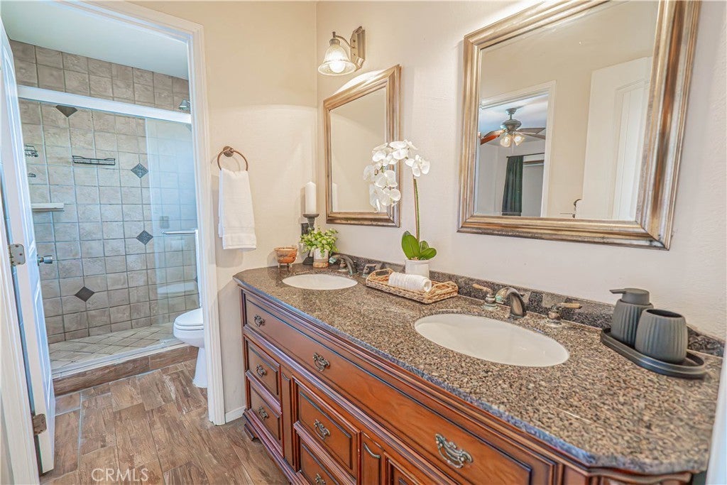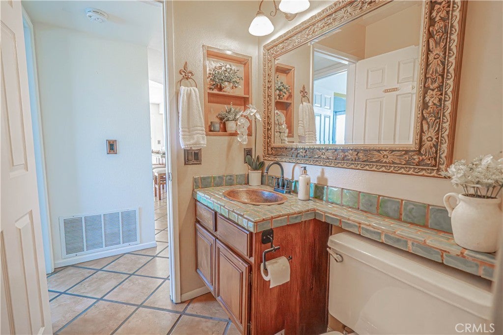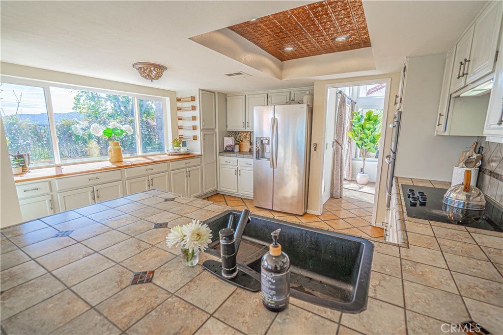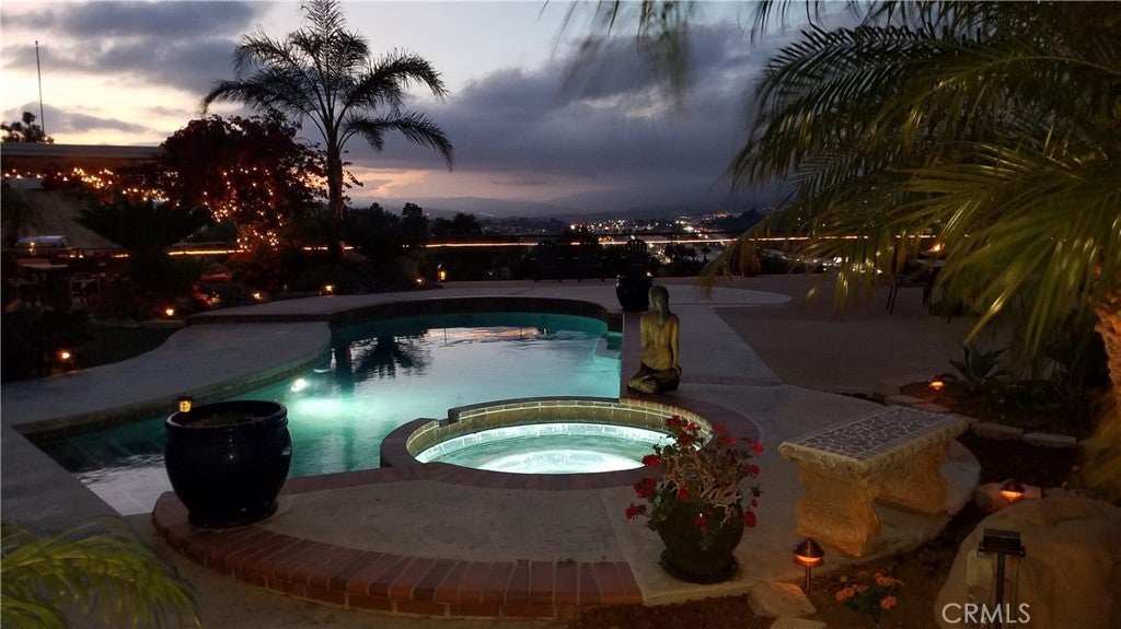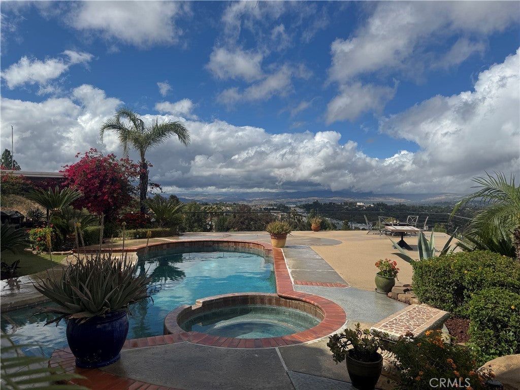 STUNNING PANORAMIC VIEWS OF THE ENTIRE SANTA CLARITA VALLEY FROM THIS BEAUTIFUL SPANISH REVIVAL HOME! The home has a large garage conversion living quarters. Which includes a walk-in closet, work station, living area, and an attached bathroom. The bathroom can also be accessed from the pool area. This is great for multi-generational family living, airbnb or peerspace rental income. Open and spacious floor plan with high ceilings. Large family size 4 bed/ 3 bath home, with a downstairs bedroom ensuite and full bath. This Spanish influence-style home has a custom wooden front door that leads into the entryway of the home. The living room has cathedral-style ceilings, custom lighting, beautiful tile floors, and lots of windows for natural light. The wrap-around staircase has a custom wrought iron railing. Upgraded kitchen with copper style tre ceiling, recessed lighting, custom tile countertops, backsplash, and stainless steel appliances. Kitchen open to family room, features a great breakfast bar area. There is an additional butcher block counter space and a pass-through window for BBQing. The family room has great views of the valley and lush landscaping. There is a beautiful fireplace as well as a ceiling fan. The main bedroom suite has stunning city views, high vaulted ceilings. The main bathroom has walk-in shower w/ custom tile, soaking-tub, tile vanity/w copper sinks, and a huge closet. One bedroom with full bath downstairs which would also make a fantastic office. This secluded home is located on a flag lot and offers lots of extra parking for possible R.V or a boat. Included is a 12 x 24 storage shed. The beautiful landscape features, two beautiful fountains in front and back yard, mature palms, flowering succulents, jasmine vines, gorgeous bougainvillea, and an array of colorful flowers. Very low maintenance and drought tolerant as well. Large usable approx. 11,0000+ sq ft. lot has numerous sitting areas around the stunning pool and jacuzzi. Large outdoor cabana covered in bougainvillea has outdoor lighting for evening entertaining. Cabana also features ceiling fans, T.V./stereo system, and an outdoor kitchen. Large pool and jacuzzi are surrounded by an expansive deck and seating areas. There is also a separate outdoor entrance for the additional living space and bathroom. The home has copper piping, and new energy efficient HVAC system. No HOA , NO Mello Roos.