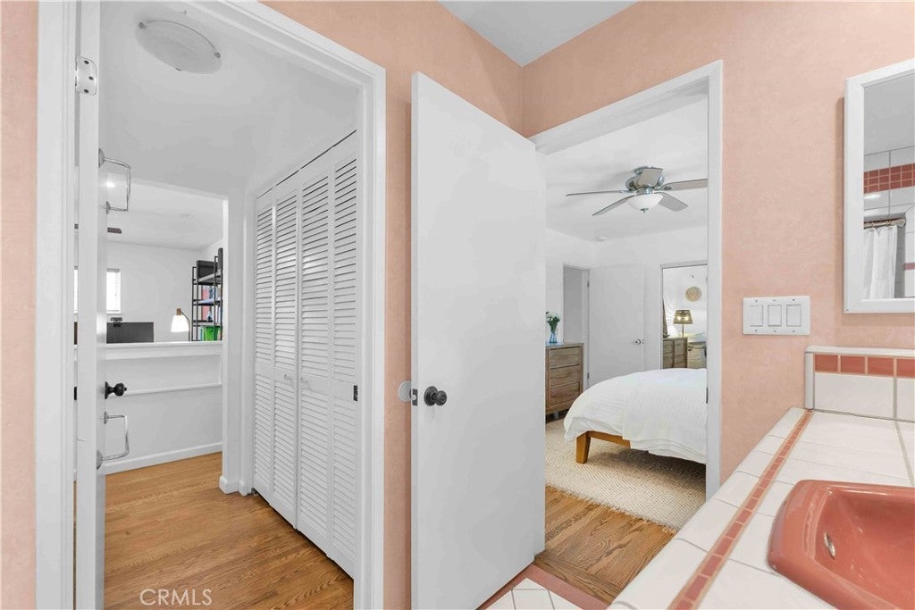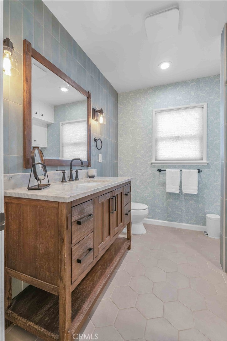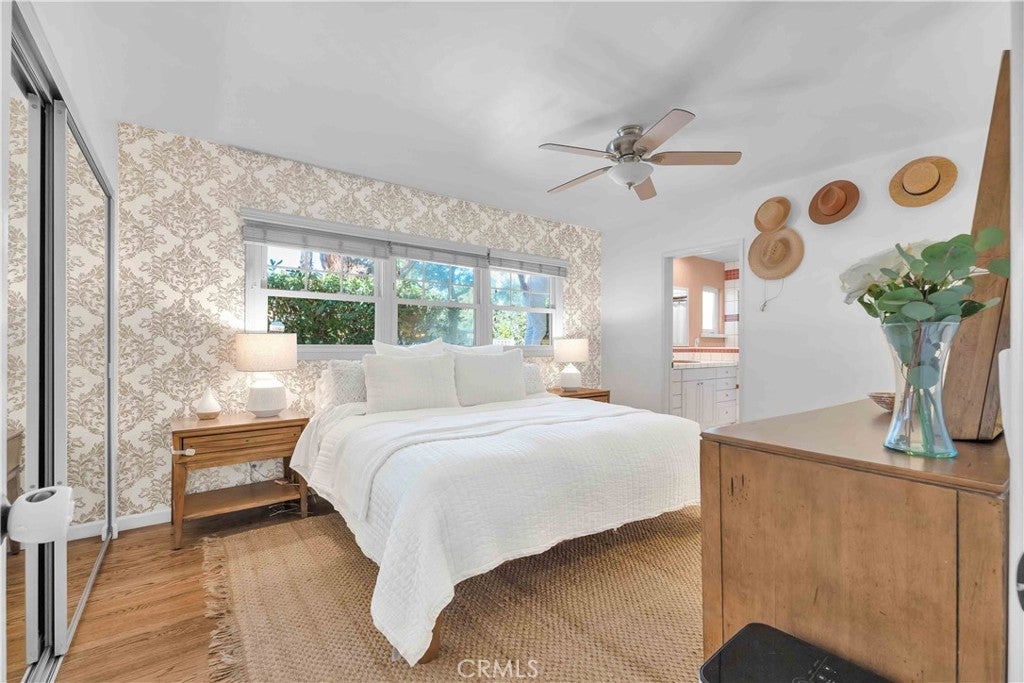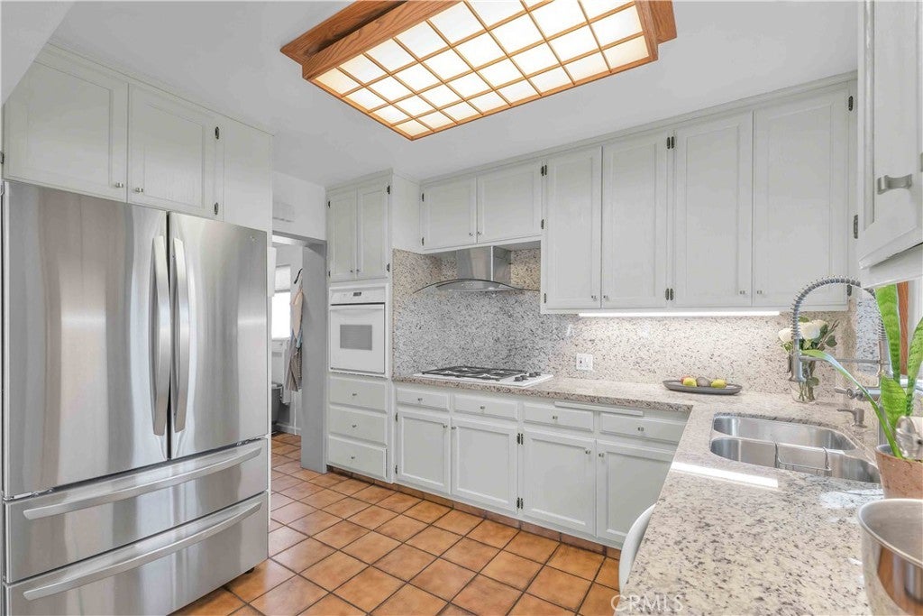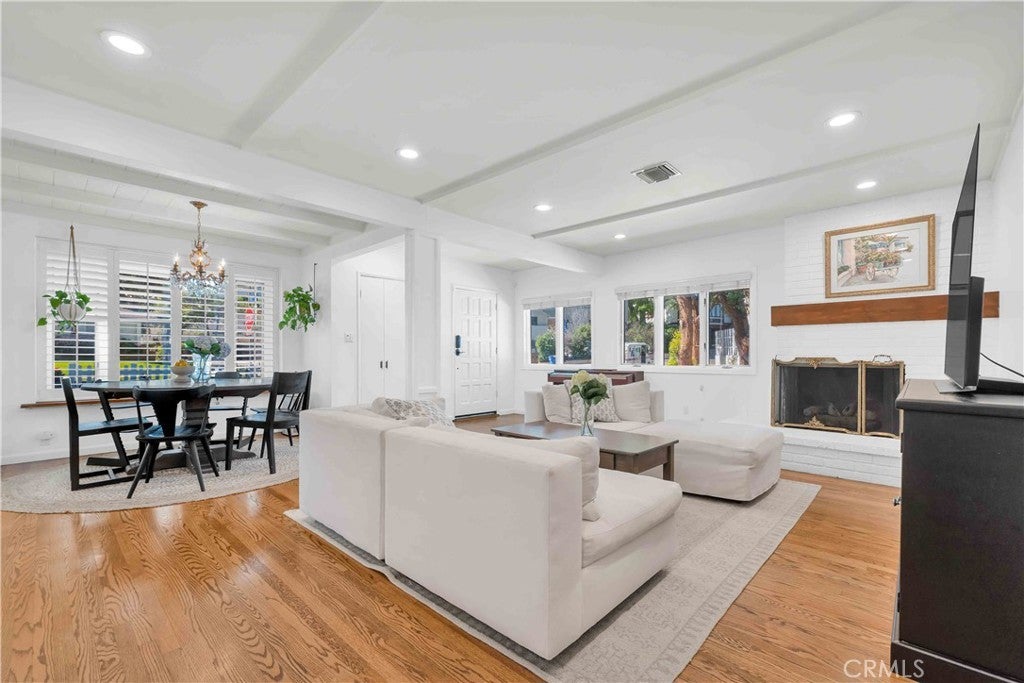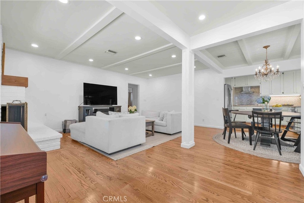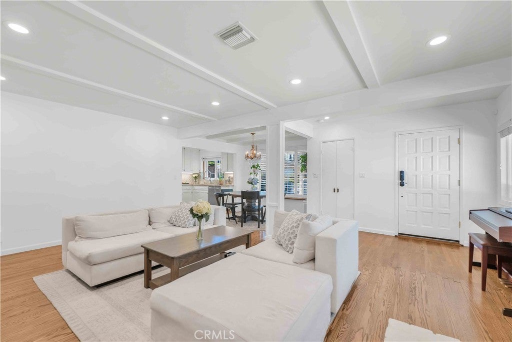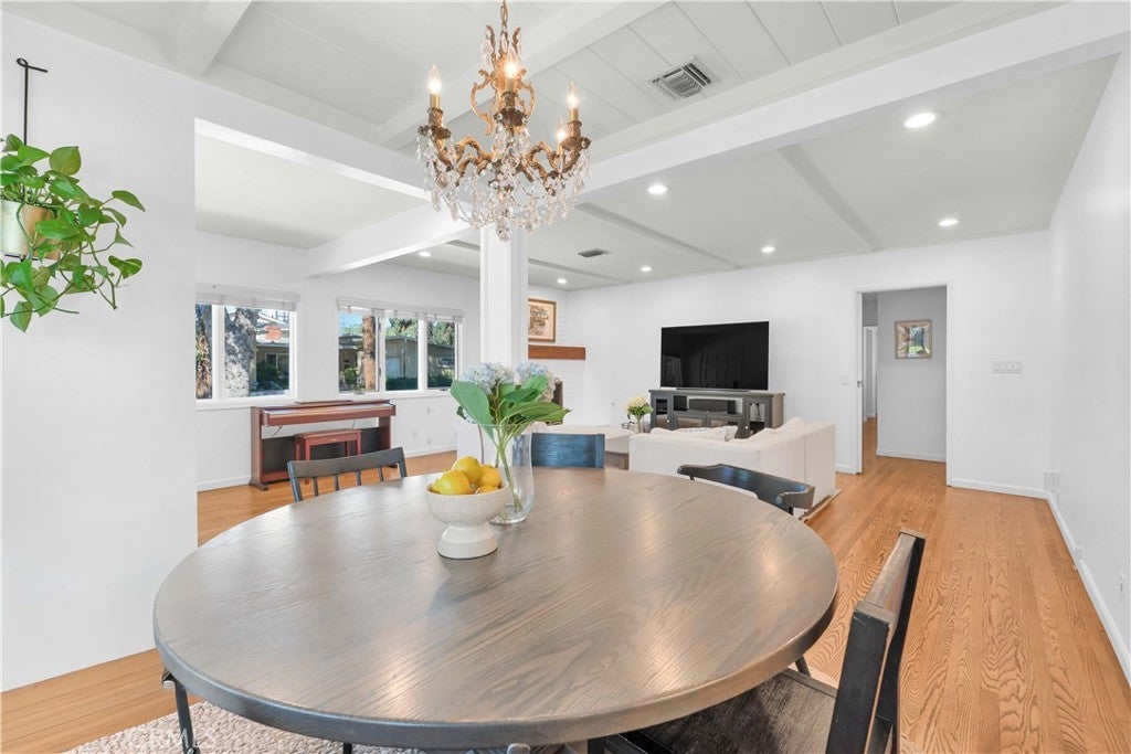 South of Ventura Boulevard on a desirable corner lot, this Woodland Hills home offers a rare combination of location, privacy, and a flexible floor plan. The southern-facing orientation fills the home with natural light that single-frontage properties rarely achieve, and a dedicated family room functions well as a home office, guest area, or creative space, adapting comfortably to your needs. Inside, oak hardwood floors run throughout the main living areas with an open floor plan that facilitates both cozy evenings and casual entertaining. The kitchen features granite countertops and ample cabinetry that make cooking and hosting effortless, conveniently flowing into a dedicated laundry space with built-in storage. The spacious primary suite is anchored by a beautifully preserved mid-century modern bath where original tile and porcelain have been maintained for tasteful vintage character. The second bathroom and a third powder room have been stylishly updated, and thoughtful storage runs throughout the home with cedar-lined closets featuring built-in organization, adding charm and comfort for family and guests. Step through striking French doors into a spacious covered patio that creates a natural extension of the living space. Private, shaded, and ready for entertaining, the high-fenced backyard features mature fruit trees, including lime, mandarin, pomelo, fig, and avocado, that make the backyard as productive as it is beautiful. The 360-square-foot concrete pad offers additional space for a storage shed, pergola, or other potential uses. A vast, open-ceiling 2-car garage completes this versatile home, currently used as a dedicated home gym. The home is equipped for modern living with an integrated solar panel system, Tesla Powerwall battery backup, and dedicated 240V fast EV charging, ensuring energy independence during grid blackouts. Additional highlights include a reverse osmosis water filtration system, dual water heaters, and drip irrigation and drought-tolerant landscaping throughout the property. All of this sits within walking distance of restaurants, grocery stores, and boutiques along Ventura Boulevard, with the calm of a quiet residential street waiting for you at home.