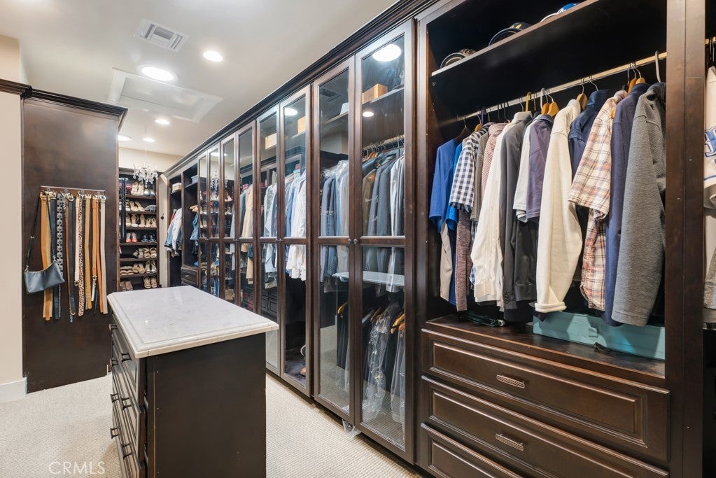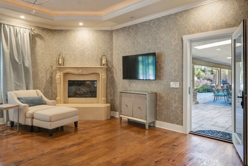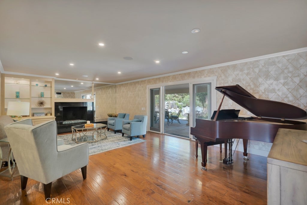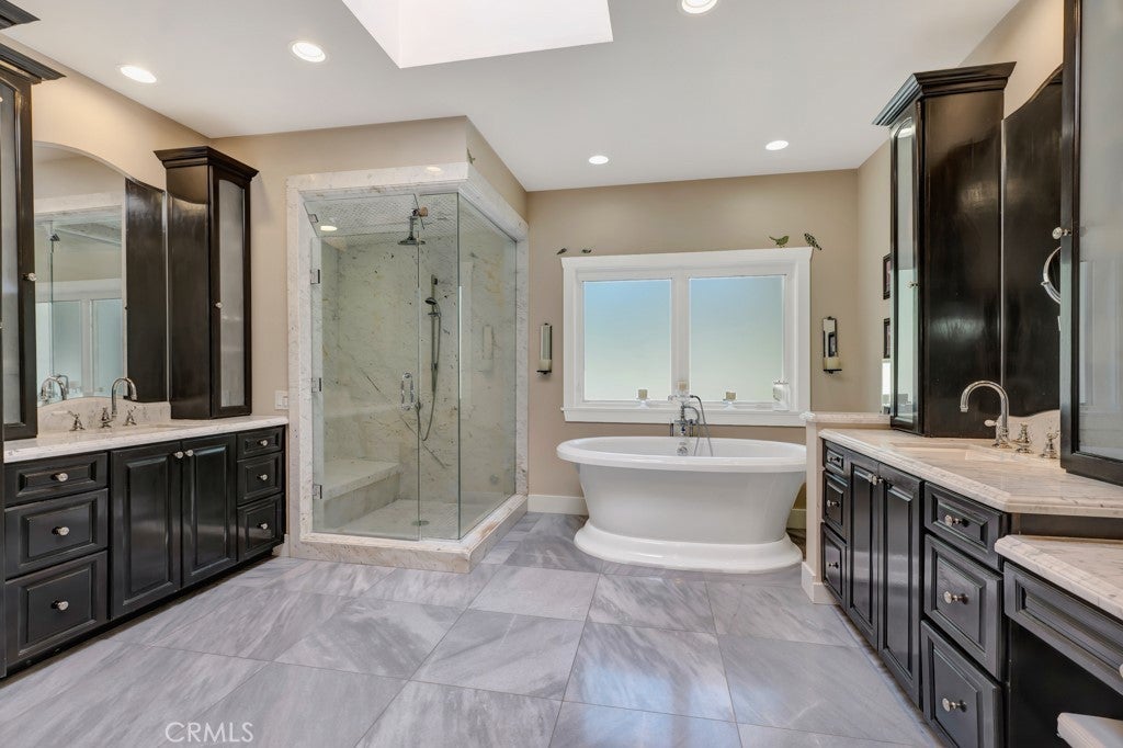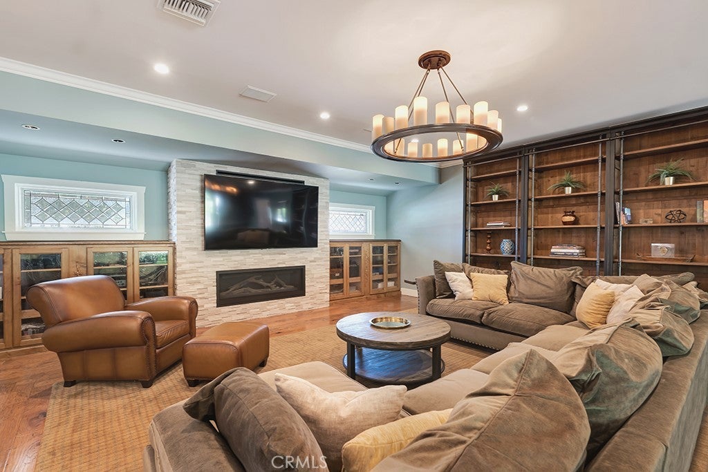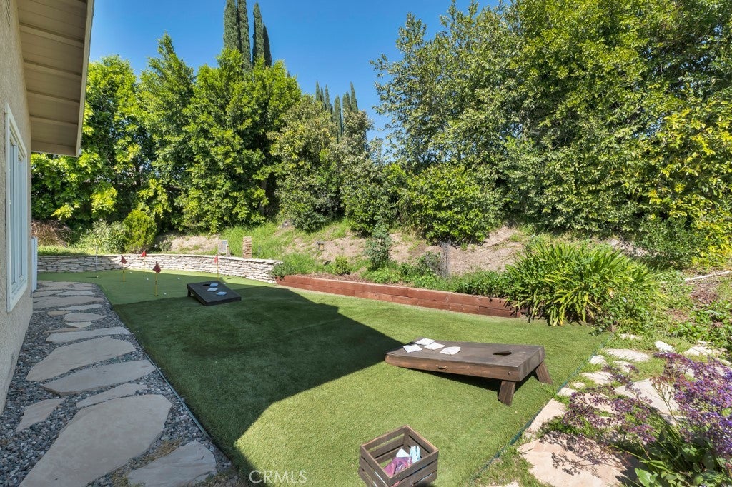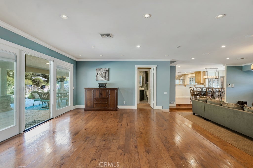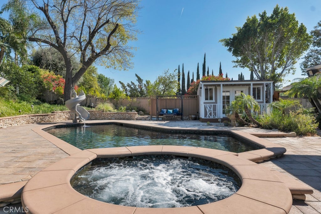 Welcome to one of the most spectacular single-story, ranch style custom estates in Knollwood! The moment you arrive, the striking curb appeal sets the tone—beautiful rock hardscaping leads to a private, gated courtyard with serene fountain and tranquil seating areas that greet you. Step through custom wood double doors w/beveled glass and discover nearly 4,300 sq. ft. of luxurious living space. Upon entry you immediately notice the views of the resort-like backyard through the oversized sliding glass doors of the spacious and bright living room that has custom built-ins and fireplace. At the heart of the home is a gourmet chef’s kitchen, designed to impress w/Argentinean marble floors, oversized center island, DCS 6-burner stove, double ovens, warming drawer, dual sinks, Sub-Zero refrigerator, wine fridge, fireplace & exceptional storage. The kitchen flows seamlessly into the dining room and onward to a step-down, expansive family room w/custom built-ins and cozy fireplace. Surrounding the family room is a bonus upper open area, ideal for bar or pool table- the perfect entertaining spot w/oversized glass sliders that frame serene views of the entertainer’s backyard—creating a seamless indoor-outdoor flow. Thoughtful floor plan features two private wings, creating an ideal layout for the five bedrooms and four baths. The primary retreat is a sanctuary of luxury, boasting a fireplace, custom up lighting, built-in wardrobes and fully finished walk-in closet. The spa-like primary bath features Carrera marble, heated floors, dual vanities, whirlpool soaking tub, oversized steam shower, and skylight that bathes the space in natural light. Two of the additional bedrooms are spacious en-suites, perfect for guests or family. A rare and impressive feature is the extra-large laundry room, designed to accommodate two washers and two dryers, with abundant cabinetry, a utility sink & direct access to yard. The resort-style backyard is an entertainer’s dream: an extended covered patio w/fireplace, Pebble Tec salt water pool w/slide, stylish spa-inspired outdoor shower, koi pond, putting green, low-maintenance turf, detached pool room & large gated/enclosed carport area. Additional highlights include mud room, finished three-car garage w/epoxy floors and built-in cabinets, solar, 3 A/C zones, CAT/cable wiring throughout. Homes like this are a rare find—offering custom design, privacy and luxury all in one. This extraordinary estate is truly one of a kind and won’t last!