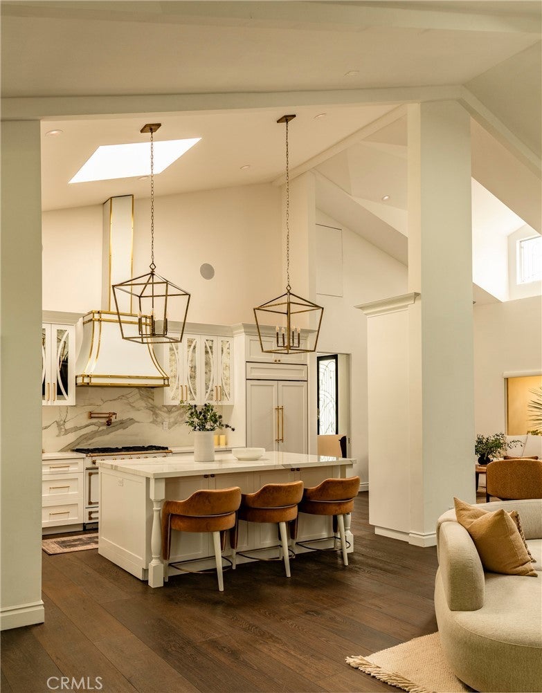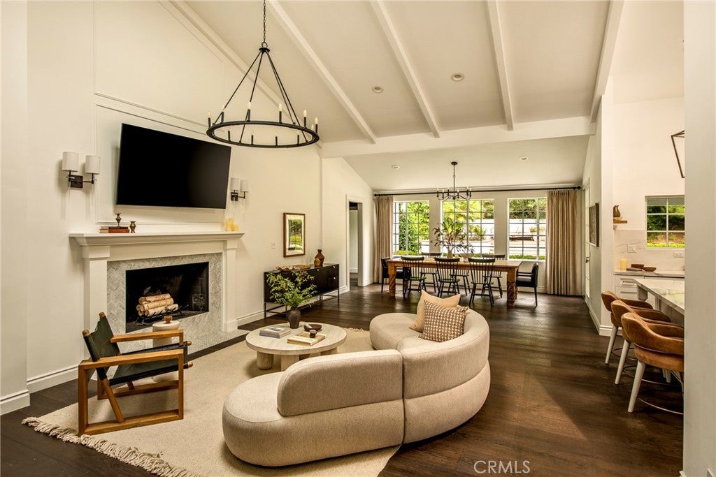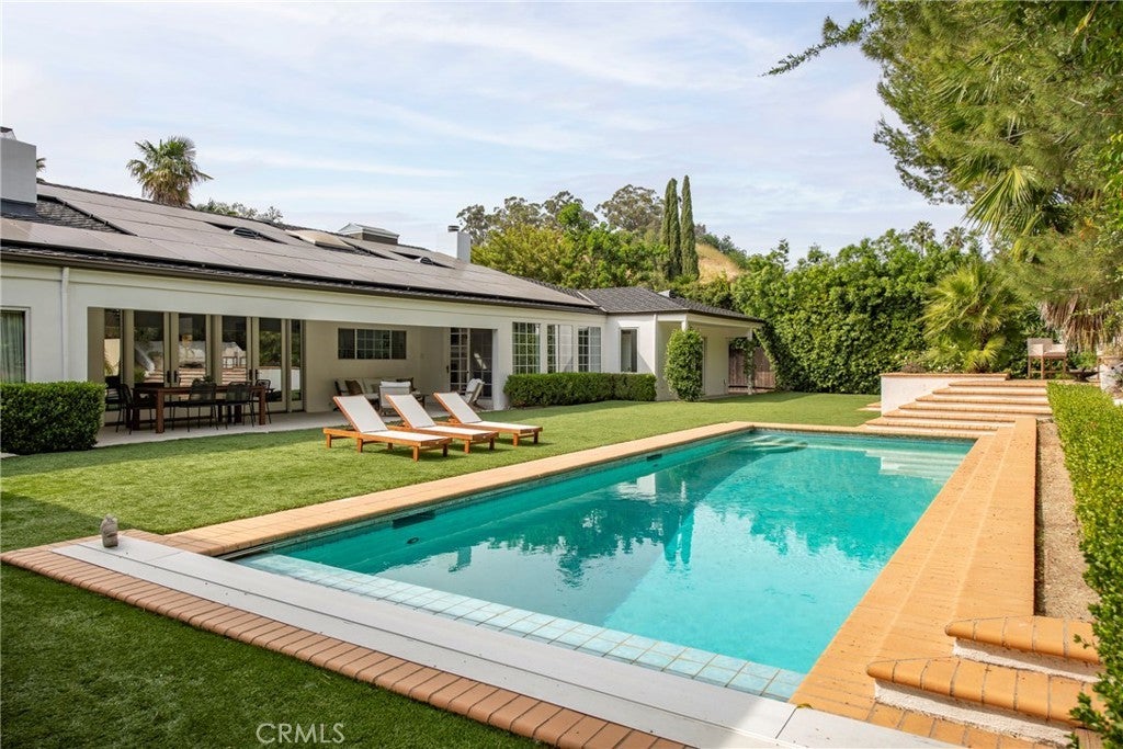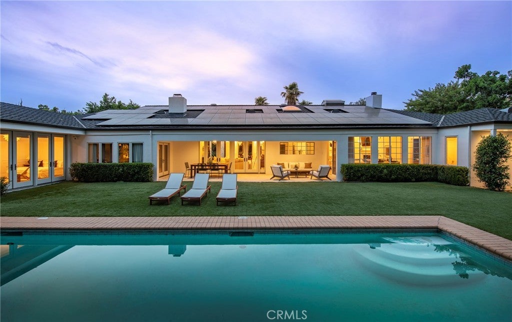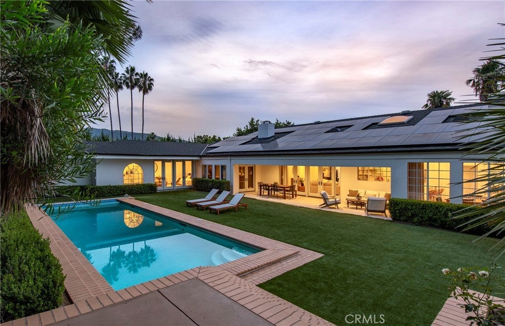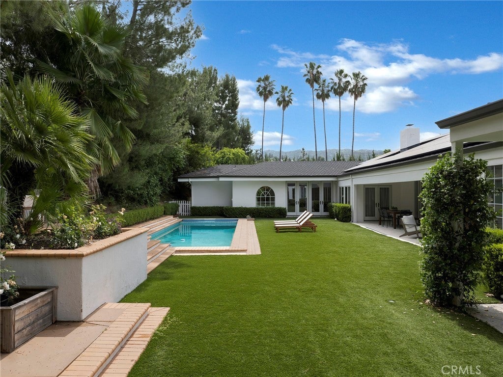 This luxuriously renovated single-story estate is set on a private lot within the coveted enclave of Lake Encino. Designed for effortless California living, the open floor plan and soaring ceilings flow seamlessly into expansive outdoor entertaining spaces, creating the ultimate indoor-outdoor lifestyle. At the heart of the home, the chef’s kitchen is both elegant and functional, featuring a La Cornue range, premium built-in refrigeration, and picturesque views of the oasis-like backyard. A statement fireplace anchors the main living area, while the dining space and open family room create a warm yet refined setting for everyday living and entertaining.Perfect for hosting, the home features a hidden speakeasy-style bar an ideal showcase for curated wines and top-shelf spirits.The primary suite serves as a private retreat, highlighted by serene views of the sparkling pool and lush grounds. The spa-inspired bath offers generous closet space, high-end finishes, and a seamless blend of comfort and luxury. Each secondary bedroom is thoughtfully designed, well-proportioned, and appointed with its own en-suite bath.This home has an impressive list of designer finishes, elevated floor plan and complemented by a 27kW solar system, enhancing both efficiency and sustainability. Located south of the Boulevard and just moments from Encino’s premier dining, shopping, and cultural destinations, this exceptional property offers the perfect balance of privacy, scale, and lifestyle a truly timeless offering in one of Los Angeles’ most sought-after neighborhoods