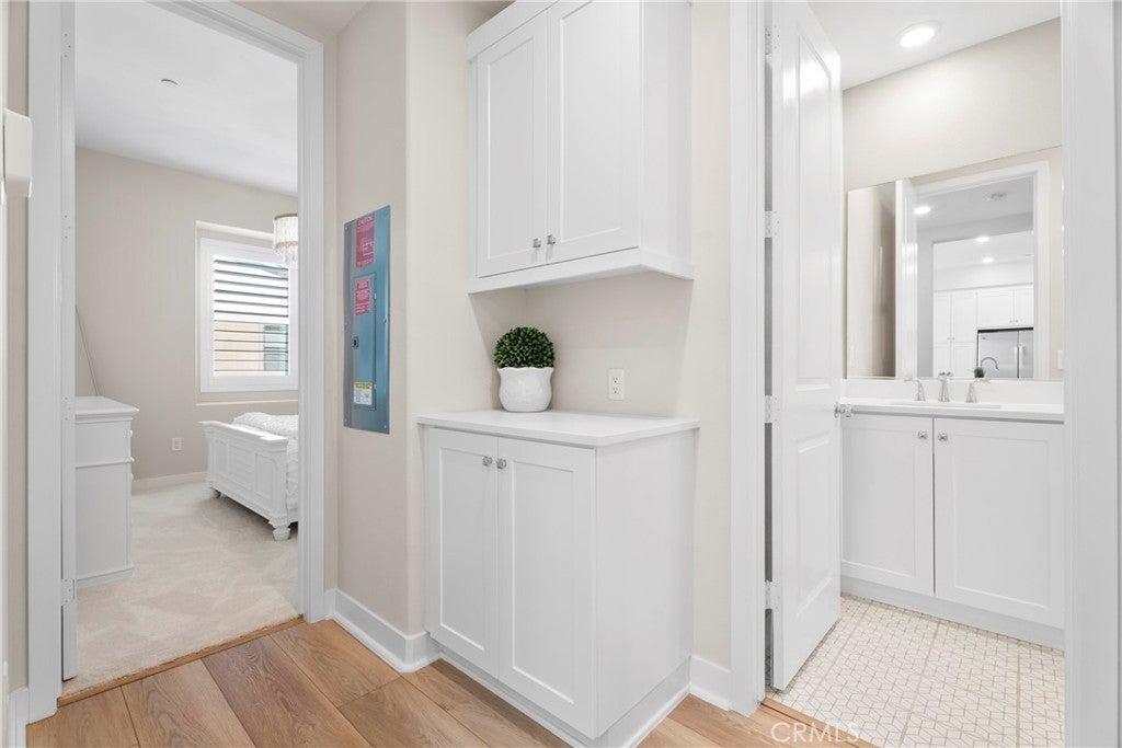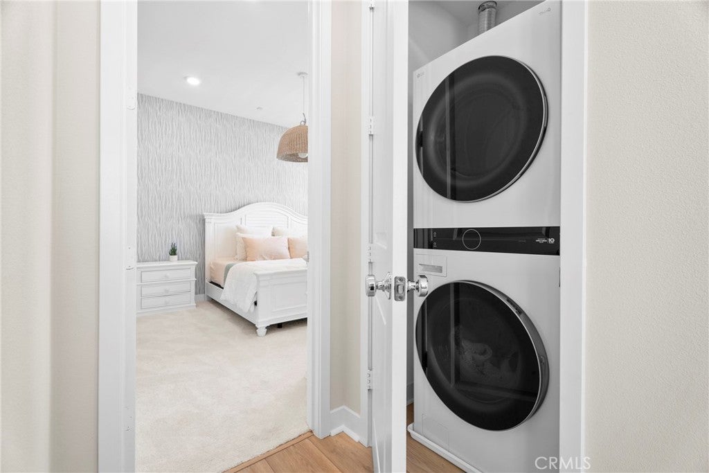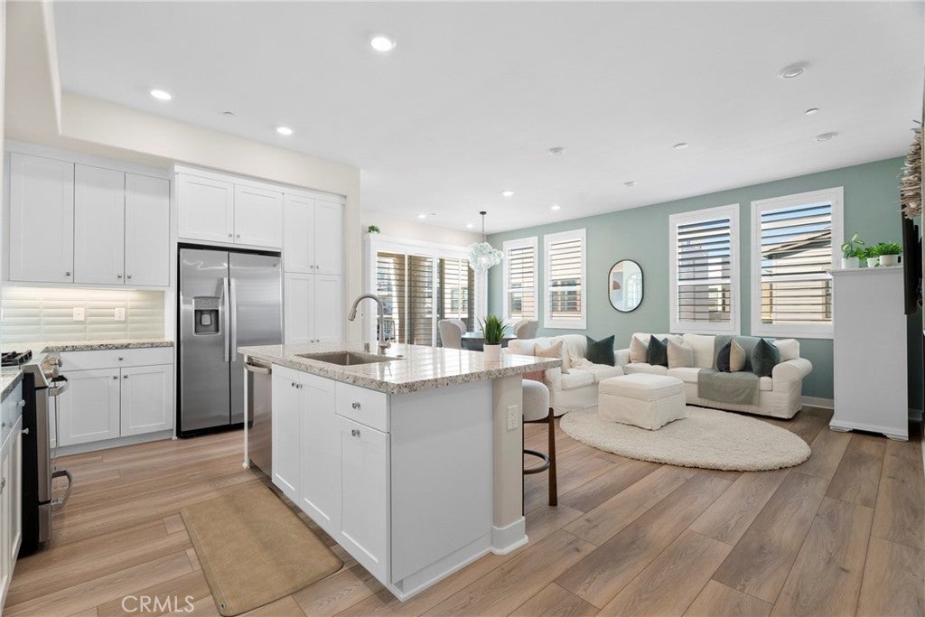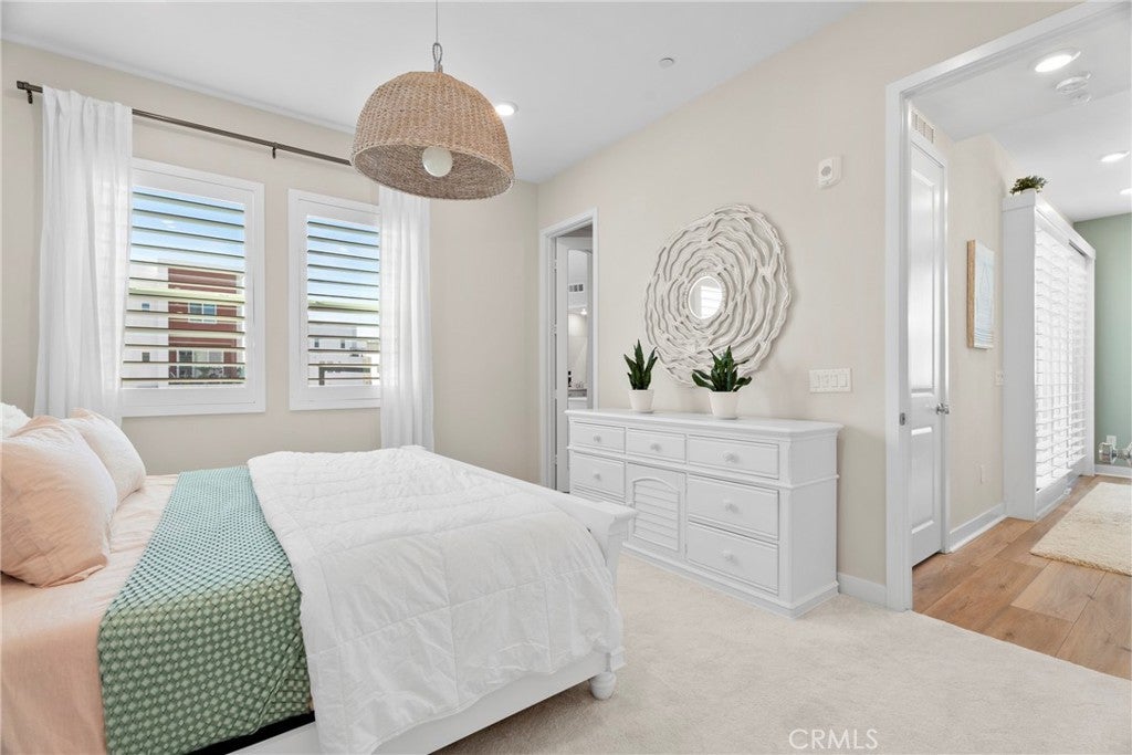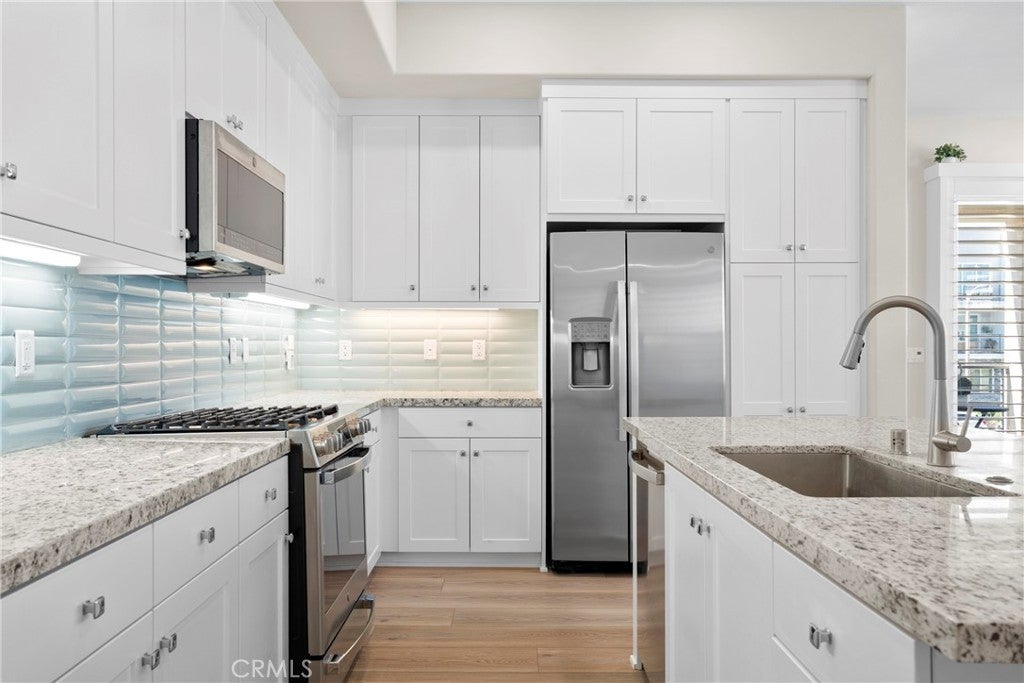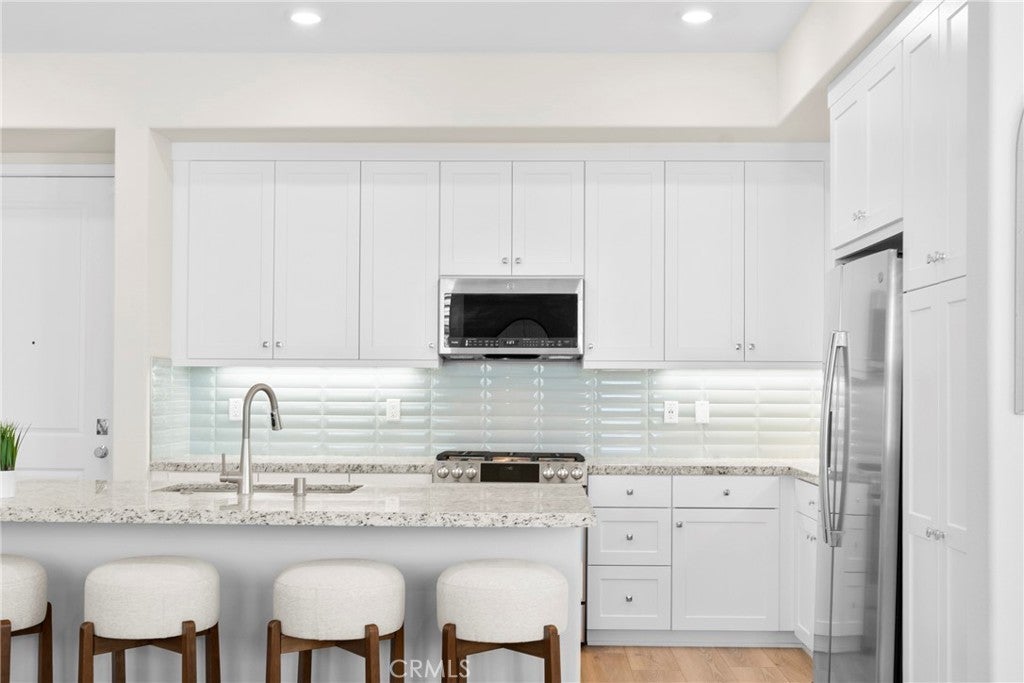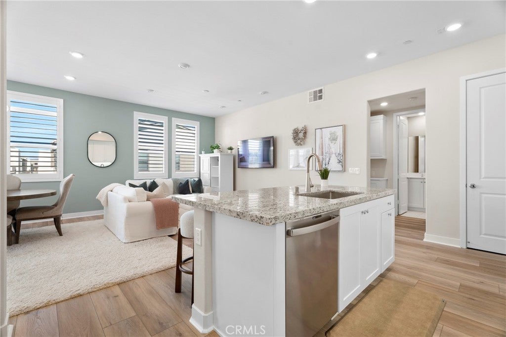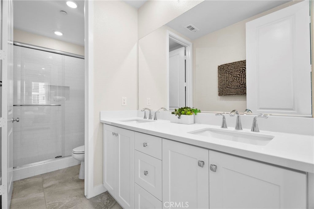 Rarely available and move-in ready, this former model corner residence in Valencia’s sought-after Five Point community offers EV Charging and Solar. Ideally positioned in a private end location, this light-filled home features an open-concept layout that seamlessly connects the main living area to a set-back balcony giving you a more private and quieter feeling. Thoughtfully upgraded with designer finishes, the interior showcases custom paint with accent detailing, stylish lighting, plantation shutters with split-tilt functionality, plush new carpeting with premium padding, LVP flooring, and sleek cabinetry with soft-close features. The spacious layout lives larger than many three-bedroom homes, offering oversized closets and abundant storage. As a former model, the home includes smart-home technology, a private tandem garage with EV charger, custom garage shelving, whole-home water filtration system, and additional nearby private storage. Located within Valencia by Five Points’ eco-conscious community designed for net-zero greenhouse gas emissions, residents enjoy EV-friendly infrastructure, community gardens, and expansive green spaces, weekly farmers markets, resort-style pools with cabanas, gas barbecues, children’s play areas, multiple parks, scenic walking and golf cart trails, and breathtaking mountain views throughout the community—all with more favorable HOA dues than many newer communities. Just minutes from the 5 Freeway, Highway 126, Six Flags Magic Mountain, and all that Valencia has to offer. This home is a must see!!!