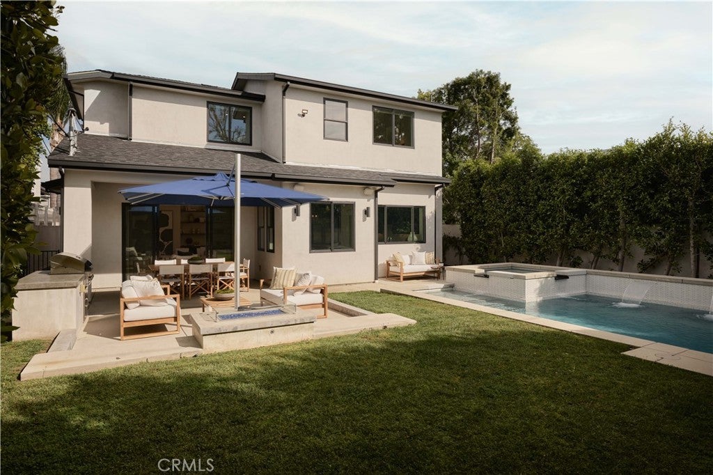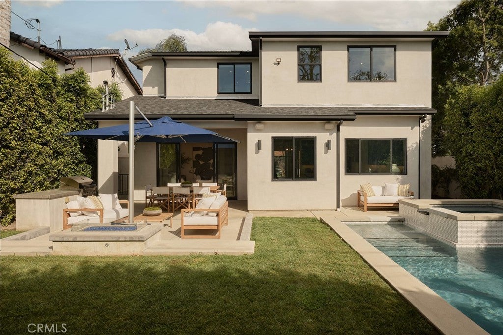 Situated on a quiet tree-lined street in the coveted Footbridge Square neighborhood of Studio City, lies this custom-built home that redefines modern luxury living. The open-concept floor plan seamlessly blends style and function, featuring a gourmet chef’s kitchen outfitted with top-of-the-line appliances, an oversized island, butler’s pantry with walk-in storage and sun-drenched breakfast nook, which flows effortlessly into the spacious family room. Designed for elevated entertaining, the formal living and dining room is the perfect setting for intimate dinners or large-scale celebrations. There are five generously sized ensuite bedrooms, including one on the main level and a luxurious primary suite that offers dual walk-in closets and a sumptuous bathroom, complete with a soaking tub, stream shower and double vanity. Enveloped by mature privacy hedges, the backyard retreat invites year-round relaxation and entertaining with a heated pool and spa, built-in BBQ and firepit, and a covered patio with a cantilever umbrella. This home comes fully equipped with a Control4 smart home system that manages lighting, audio and cameras. Additional highlights include high ceilings throughout, a dedicated laundry room, state-of-the-art security system, wine storage and a two-car garage with EV charging. Located in the heart of Studio City within the top-rated Carpenter School District, this exceptional property is just moments away from Ventura Boulevard’s trendy restaurants and boutique shops, the Studio City Farmers Market and so much more.