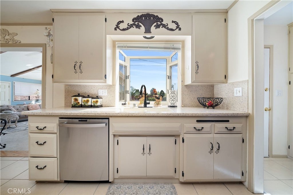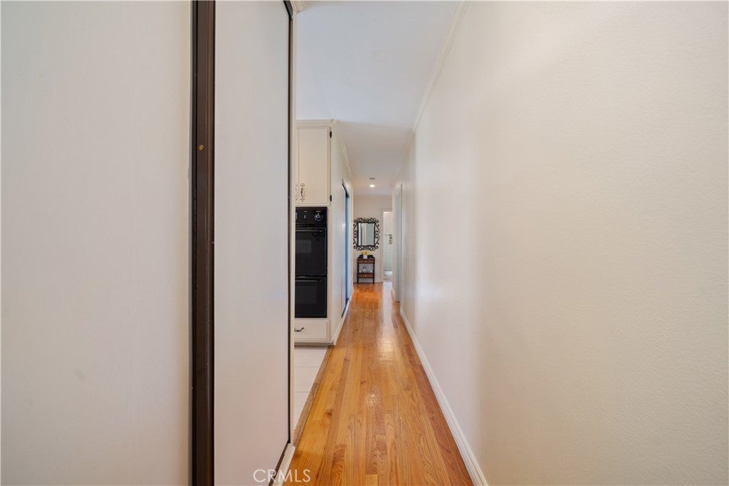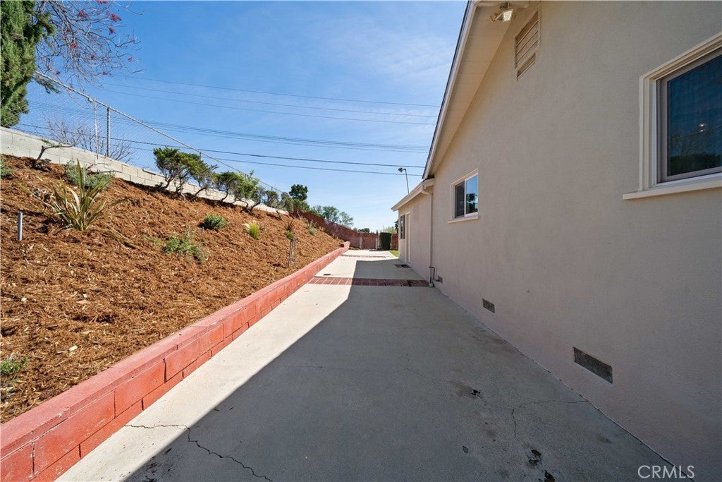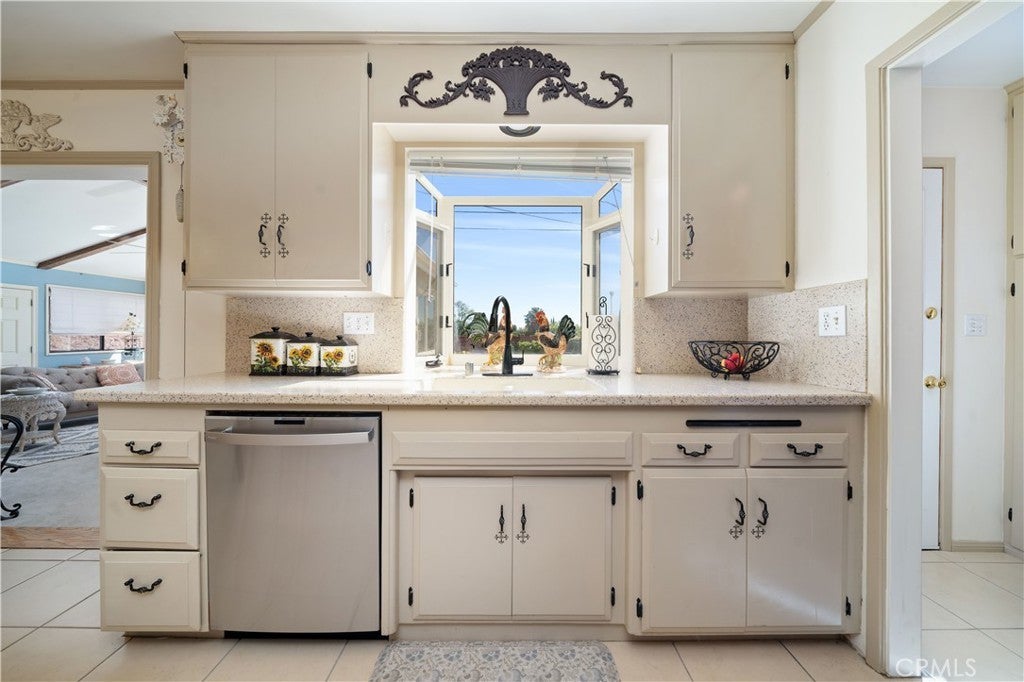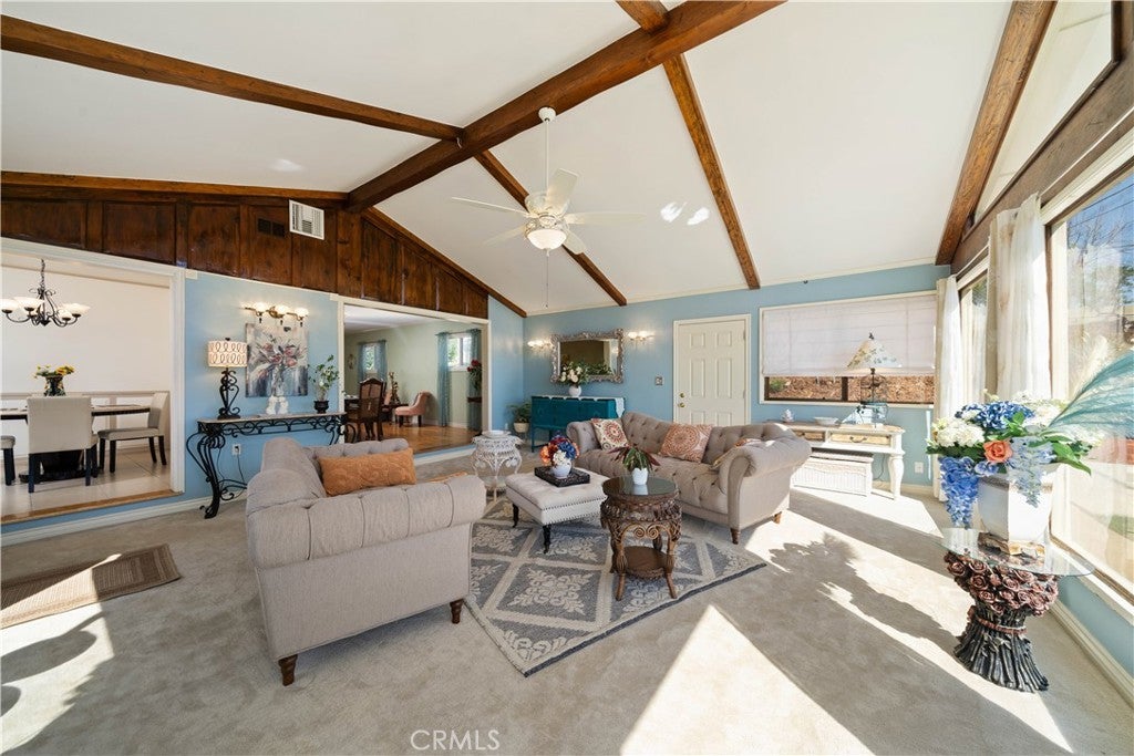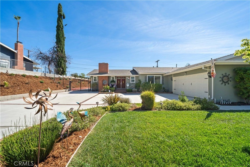 Refined urban living without the traffic, noise, and congestion and still have space for your RV. This beautifully maintained single-story 1960s Mid-Century home is nestled on a tree-lined street with mountain views and showcases numerous thoughtful upgrades completed over the years. A double-door entry with etched glass welcomes you into a formal foyer that opens to a spacious living room with gleaming hardwood floors. The living room features a stunning stone wood-burning fireplace with wood mantel, plantation shutters, crown and base moldings, and a formal dining area. The captivating family room is highlighted by dramatic beamed ceilings, expansive picture windows, and seamless indoor-outdoor flow. Fiberglass doors lead to a private backyard, perfect for entertaining, al fresco dining, or relaxing evenings with family and friends. The open kitchen offers a generous breakfast area, custom wainscoting, crown molding, and ceramic tile floors. Designed for the home chef, it includes a stainless gas cooktop with high-BTU burner, double oven, and GE Profile dishwasher. A charming garden window overlooks the backyard and mountain views. Seamless composite countertops, backsplash, and double sink provide durability and a clean, modern aesthetic. Adjacent to the kitchen is an oversized laundry room with abundant storage, pantry space, utility closet, and direct backyard access. Additional features include smooth ceilings, newer copper plumbing, RV access and parking, partial dual-pane windows, newer roof (2024), newer sewer line (house to street), updated AC, landscaping, automatic sprinklers, attic storage, upgraded insulation, and a gable cooling fan. Hardwood floors enhance most rooms, and bedrooms offer mirrored closet doors and ceiling fans. The remodeled hall bath features a stylish vanity, clawfoot tub with freestanding faucet, rain shower, sconce lighting, and ceramic tile floors. The primary suite includes a private bath with vintage-style corner vanity, updated shower enclosure, and newer flooring. Outside, enjoy a wide side yard with RV access ideal for cars, boats, or recreational vehicles plus a brick ribbon driveway, double iron gate, newer garage door, 50-gallon water heater, open tiled patio, and newly sodded lawn. Close to hiking and biking trails, Orcutt Ranch, highly regarded schools, shopping, and dining. Convenient access to the 101 and 118 freeways in a neighborhood known for long-term residents and a strong sense of community.