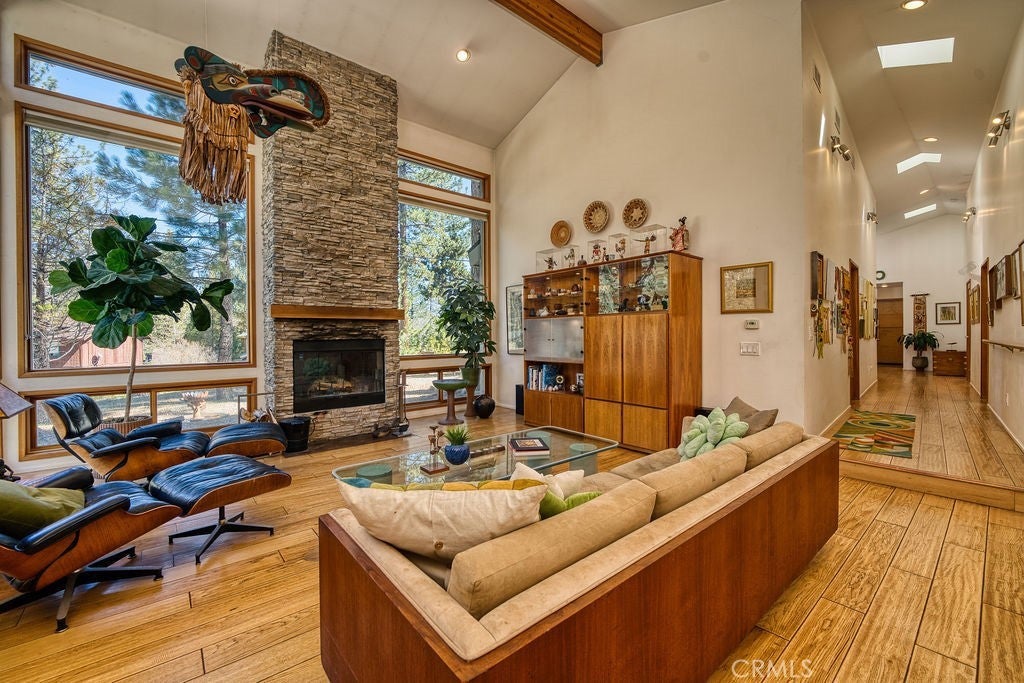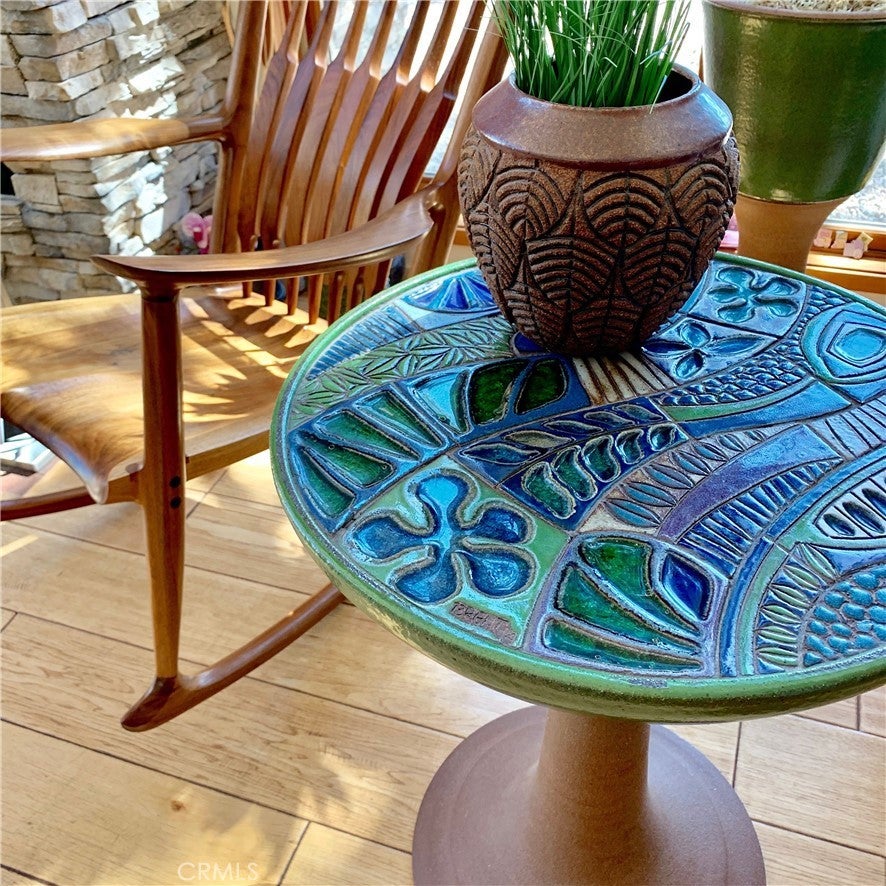 Offered for the very first time, this extraordinary one-story residence in the Los Padres National Forest is the personal home of acclaimed ceramic artist Brent Bennett — designed by his hand, built to his vision, and embedded throughout with his irreplaceable work. Set on a rare flat lot at the front of a private cul-de-sac, the three-bedroom, two and a half bathroom home is as much a living artwork as it is a dwelling: where architecture, fine craft, and the wild beauty of one of California's great national forests meet in seamless, singular harmony. Bennett designed this luxurious, modern forest home to defy convention — walls converge and diverge at deliberate degrees, creating interior spaces that feel organic, dynamic, and perpetually alive. Rooms breathe, light moves through them in unexpected ways, and floor-to-ceiling windows in the Great Room along with skylights in the bathrooms and kitchen flood the home with natural light. A museum-quality track and recessed lighting system maintains gallery-level illumination day or night, honoring the ceramic works within — because no feature is more significant, or more unrepeatable, than the ceramic works Bennett embedded into its very fabric. The hand-made foyer floor tile, one-of-a-kind glazed vanity sinks, and fully tiled hand-designed relief ceramic shower enclosure are not installations that can be removed and rehung — they are the home, and they convey with the property. The kitchen features a complete Viking Professional suite including an island range, full-size refrigerator, and dishwasher, balancing professional-grade function with warmth and character, with countertops sharing granite from the same slab as the Primary Bathroom. The dining room opens to the exterior terrace through French doors, connecting interior to forest. Every piece of furniture is vintage, designer, or mid-century modern — selected personally by Bennett with the eye of a lifelong collector — and available for acquisition at an additional price. Additional features include hydronic radiant floor heating, a whole-house automatic GENERAC generator, tankless water heater, oversized two-car garage, and superior 2011 construction — all on the market for the very first time. About 35 minutes from Hard Rock Casino, just over an hour to Burbank Airport, 90 minutes from downtown LA, and under 2 hours from Ventura County Beaches, this is a rare opportunity to acquire an architectural beauty.