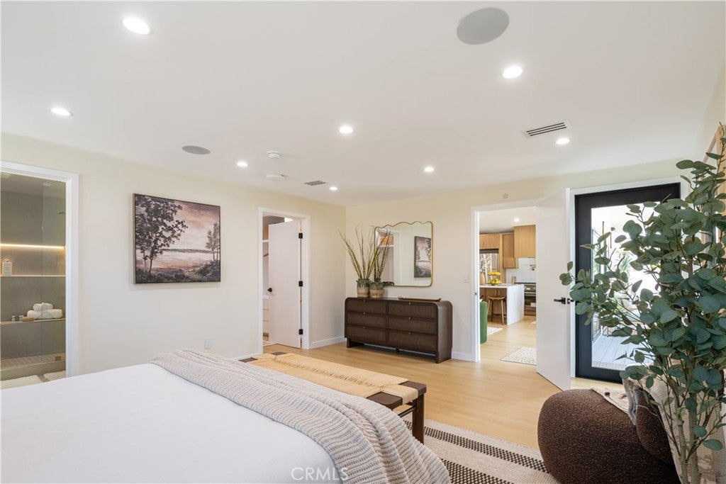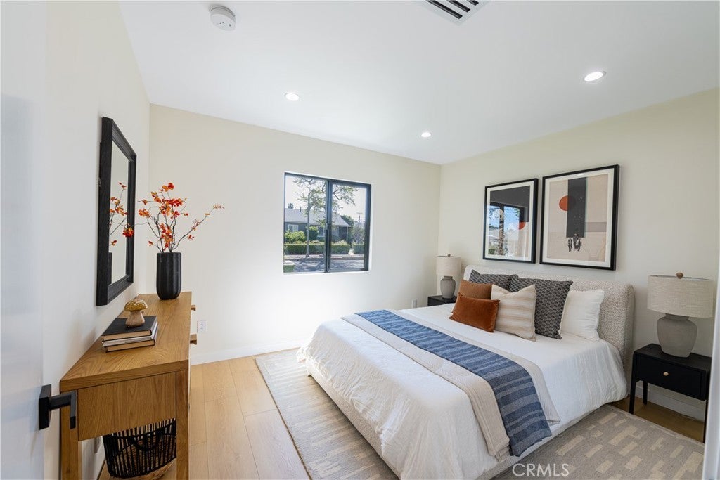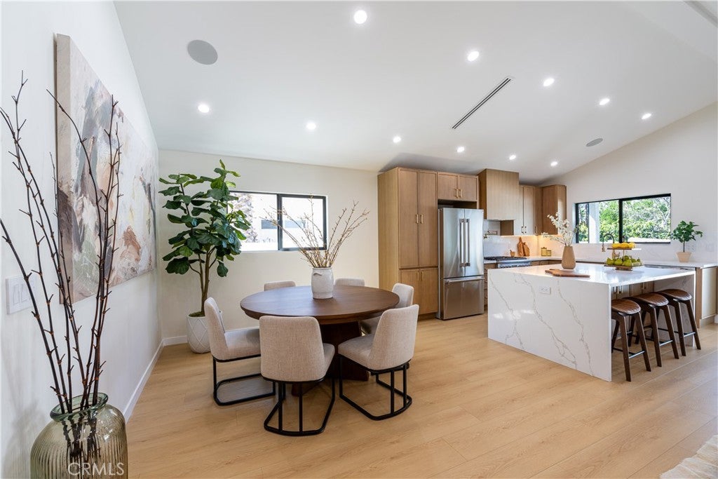 Located in the highly desirable Encino Park neighborhood, this fully reimagined residence has been thoughtfully rebuilt down to the studs and expanded by nearly 1,000 additional square feet, offering a true new construction–like experience. Now spanning approximately 2,000 square feet, the home features 4 bedrooms plus a dedicated office (optional 5th bedroom) and 3.5 bathrooms, providing flexibility for modern living. The interior is defined by elevated ceilings and a bright open-concept floor plan, creating a seamless flow between the living, dining, and kitchen areas. The kitchen is equipped with Thermador appliances, quartz countertops, and custom cabinetry, designed for both everyday functionality and entertaining. The primary suite offers a private retreat with a custom walk-in closet and a spa-style bathroom complete with a soaking tub and walk-in shower. Major system upgrades include new plumbing, electrical, HVAC, and a new roof, delivering the comfort and efficiency expected in a fully rebuilt home. Additional features include a built-in Sonos sound system in the main living areas, primary suite, and backyard, outdoor security cameras, and wireless internet boosters for enhanced connectivity throughout. The backyard is designed for indoor-outdoor living, featuring a covered Trex deck, built-in BBQ, and natural grass, creating a private and functional outdoor setting. Ficus trees enhance privacy in the front yard, while a finished two-car garage adds convenience. Situated in one of Encino’s most sought-after neighborhoods, this move-in ready home offers a rare combination of modern upgrades, expanded living space, and prime location.