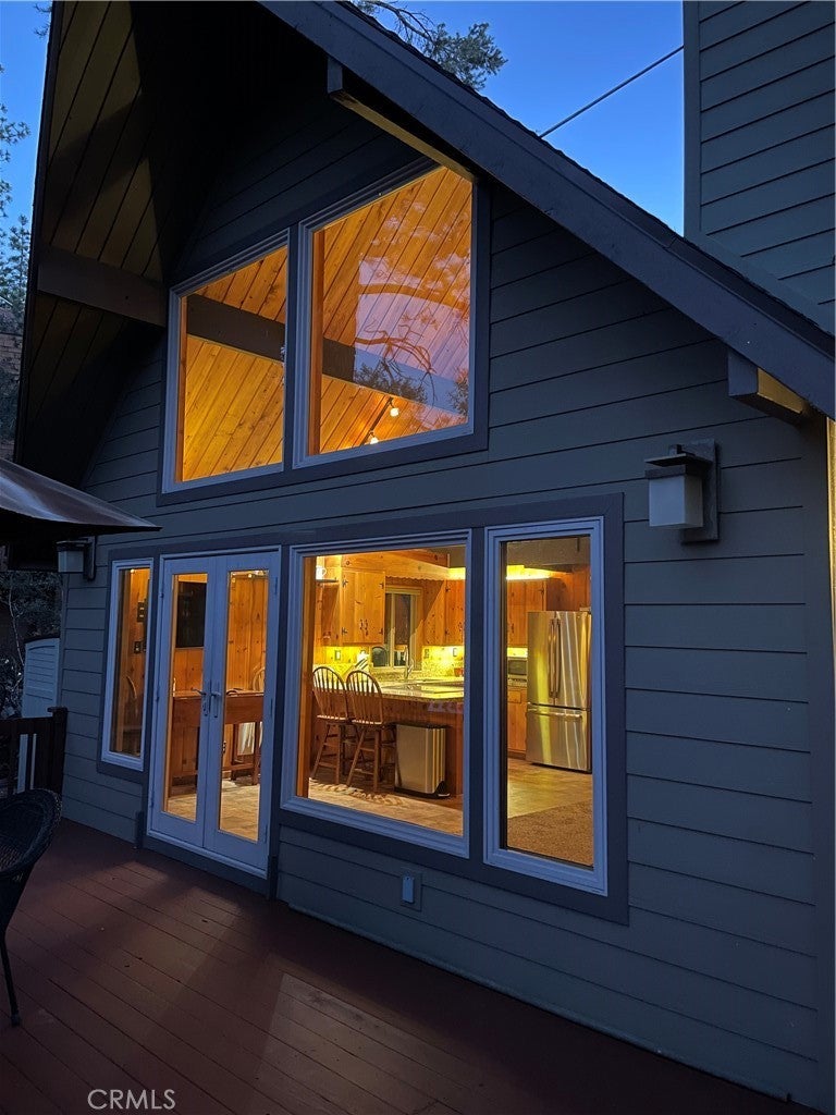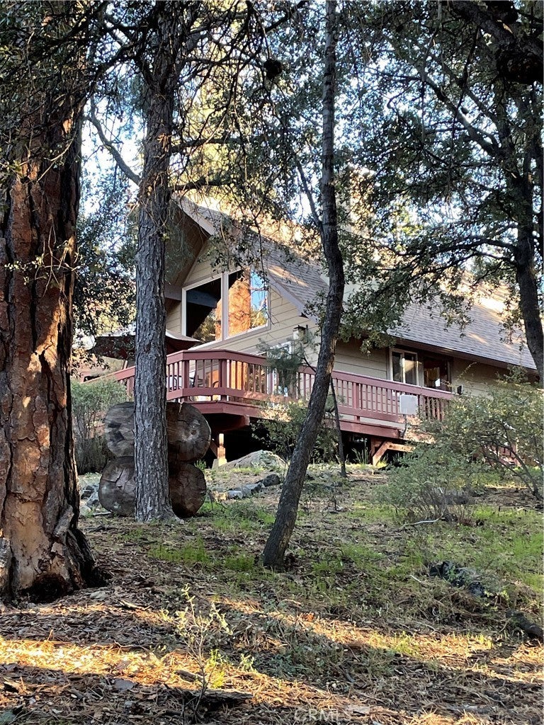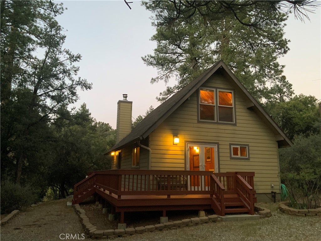 Amazing mountain home at the end of a quiet cul-de-sac with extra lot and running creek. This well-maintained home sits back on the lot with lots of off-street parking. The wrap around deck has just been treated with a solid stain and extends the homes outdoor living. Walk in and take in the floor to ceiling windows with automatic window blinds, two ceiling fans, one in the living room and the other in the loft. There is a wood burning stove for those chilly days and nights. Down the hall are two bedrooms and the renovated bath. Upstairs you will find a large loft with plenty of sleeping space. Home boasts newer roof, newer dual pane windows throughout, new front door and laundry area, a fully updated kitchen with granite counter tops and stainless-steel appliances. The additional oversized lot is studded with Oak trees and Jeffery Pines. Meandering pathways will guide you to a small bridge that leads across the creek and into a meadow. Come see your future Mountain Paradise here in Pine Mountain Club.