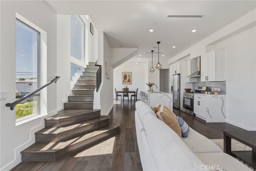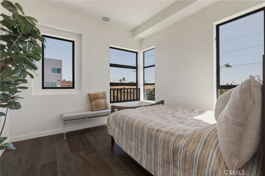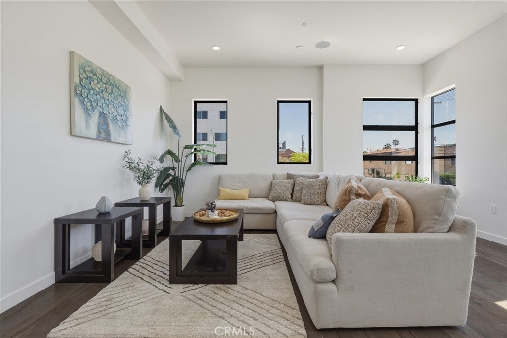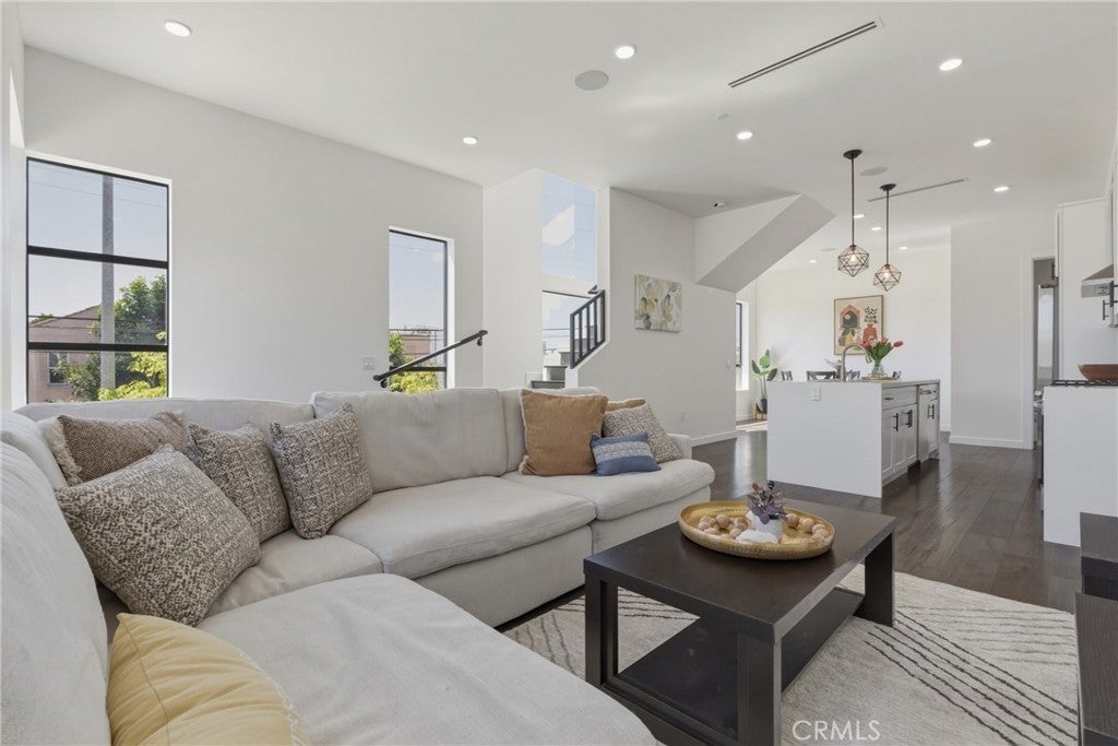 Stunning corner residence with a private rooftop deck offering panoramic city and mountain views stretching to Downtown LA. This light-filled home features an open-concept floor plan with large architectural windows, dark flooring, and a modern kitchen with white quartz countertops, stainless steel appliances, and bar seating perfect for entertaining. The home offers 2 bedrooms, a dedicated office, 2 full bathrooms, and 2 powder rooms, along with spacious walk-in closets and well-appointed finishes throughout. Enjoy modern smart home features including built-in speakers, security cameras, smart thermostats, Ring doorbell, and a smart-enabled garage. Private two-car garage included. Ideally located just minutes from Sunset Bronson Studios, Netflix, Paramount, and Gower Studios. A rare opportunity to own a stylish home with exceptional outdoor space and incredible views.