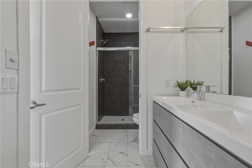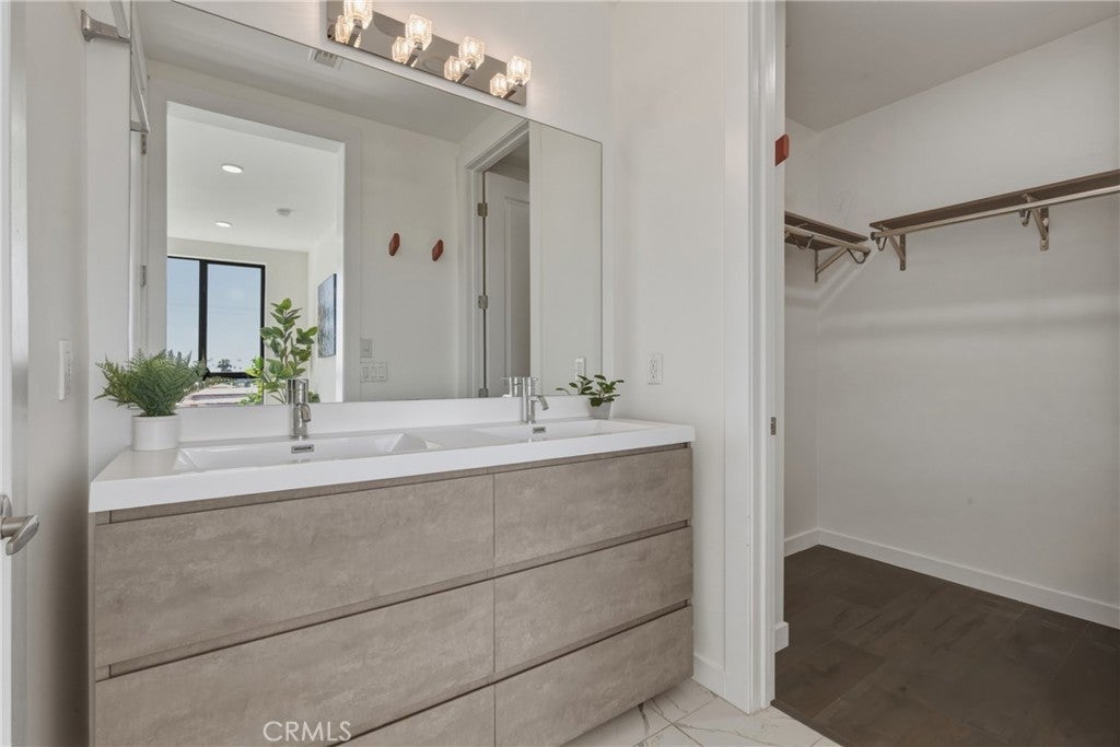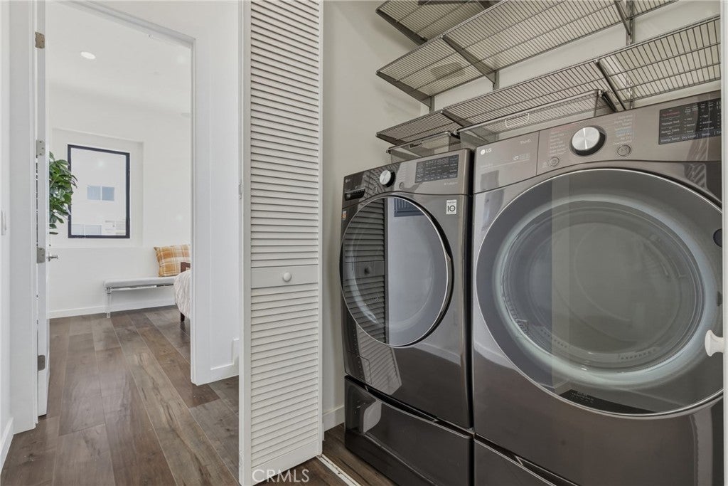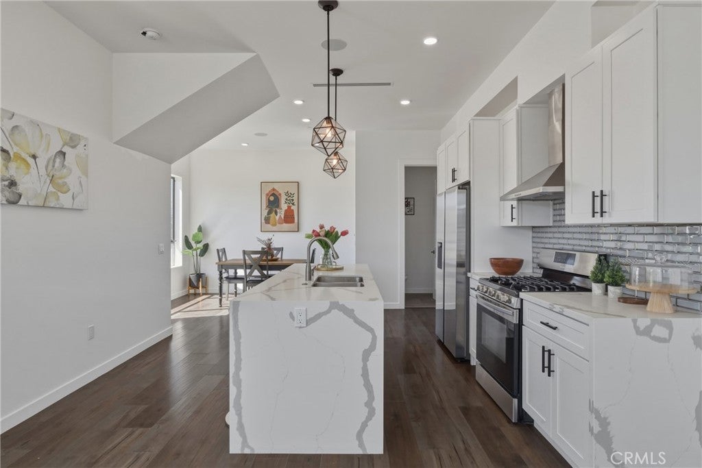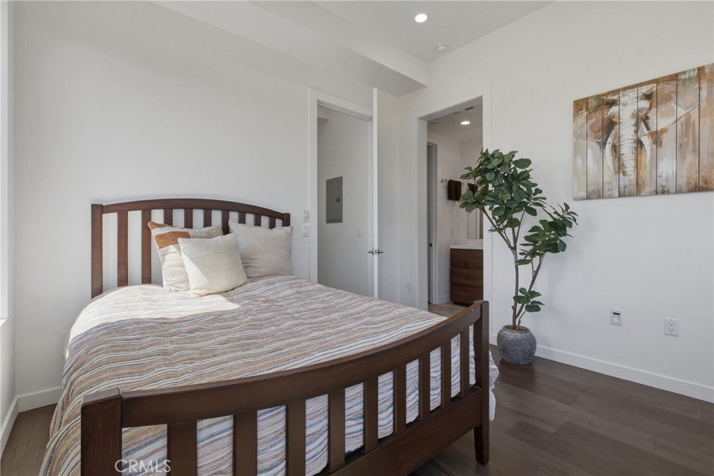 Stunning corner residence with a private rooftop deck offering panoramic city and mountain views stretching to Downtown LA. This light-filled home features an open-concept floor plan with large architectural windows, dark flooring, and a modern kitchen with white quartz countertops, stainless steel appliances, and bar seating perfect for entertaining. The home offers 2 bedrooms, a dedicated office, 2 full bathrooms, and 2 powder rooms, along with spacious walk-in closets and well-appointed finishes throughout. Enjoy modern smart home features including built-in speakers, security cameras, smart thermostats, Ring doorbell, and a smart-enabled garage. Private two-car garage included. Ideally located just minutes from Sunset Bronson Studios, Netflix, Paramount, and Gower Studios. A rare opportunity to own a stylish home with exceptional outdoor space and incredible views.