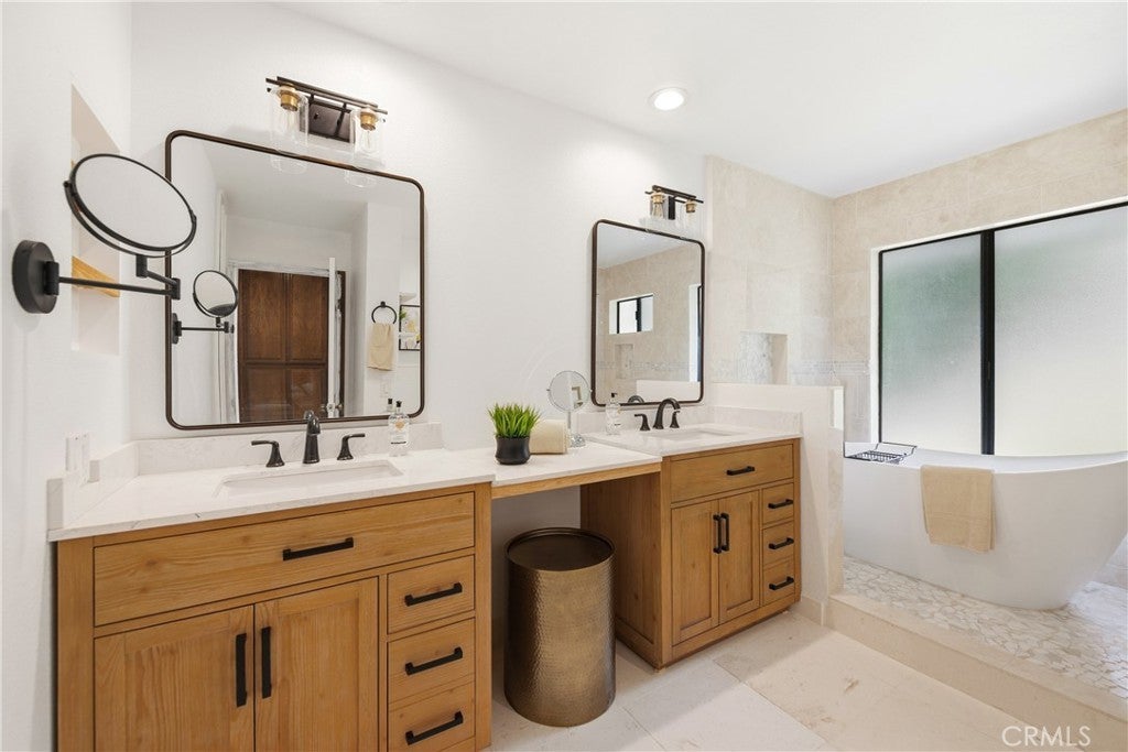 Nestled on a spacious lot in the heart of Lynn Ranch, 2044 Calle Yucca is a custom four-bedroom, four-bath residence that strikes a perfect balance between traditional warmth and modern efficiency. Upon entry, the home's character is immediately apparent through rich custom woodwork that flows throughout the main level. The formal living room, centered by a classic fireplace, is positioned to frame the surrounding hillside views, while the family room and dining area connect seamlessly to a kitchen equipped with stainless steel appliances and a large pantry. French doors lead from the heart of the home to a private, grassy backyard, creating an effortless transition for indoor-outdoor living. The upper level is thoughtfully arranged for privacy, housing all four bedrooms and three recently updated bathrooms. Two of these bedrooms serve as private suites with their own en-suite baths, including the primary retreat. Three of the bedrooms offer walk-in closets. A dedicated bonus room enclosed with French doors provides an ideal space for a quiet home office. Most of the second level takes advantage of sweeping mountain vistas and beautiful sunrise light. The home’s most distinctive feature is a large, walk-out rooftop patio accessible from both the backyard and the upstairs. This large terrace serves as an elevated sanctuary for morning coffee or evening entertaining against a backdrop of stunning natural views. Beyond its aesthetic appeal, the property is fully equipped for the future with a full solar array, Tesla Powerwall backup batteries, and an electric vehicle charger. Nearby to highly rated schools, hiking, and all of your modern conveniences, this home is perfectly positioned to enjoy the privacy and open-space access that define the Lynn Ranch lifestyle. Images may have been digitally edited or altered.