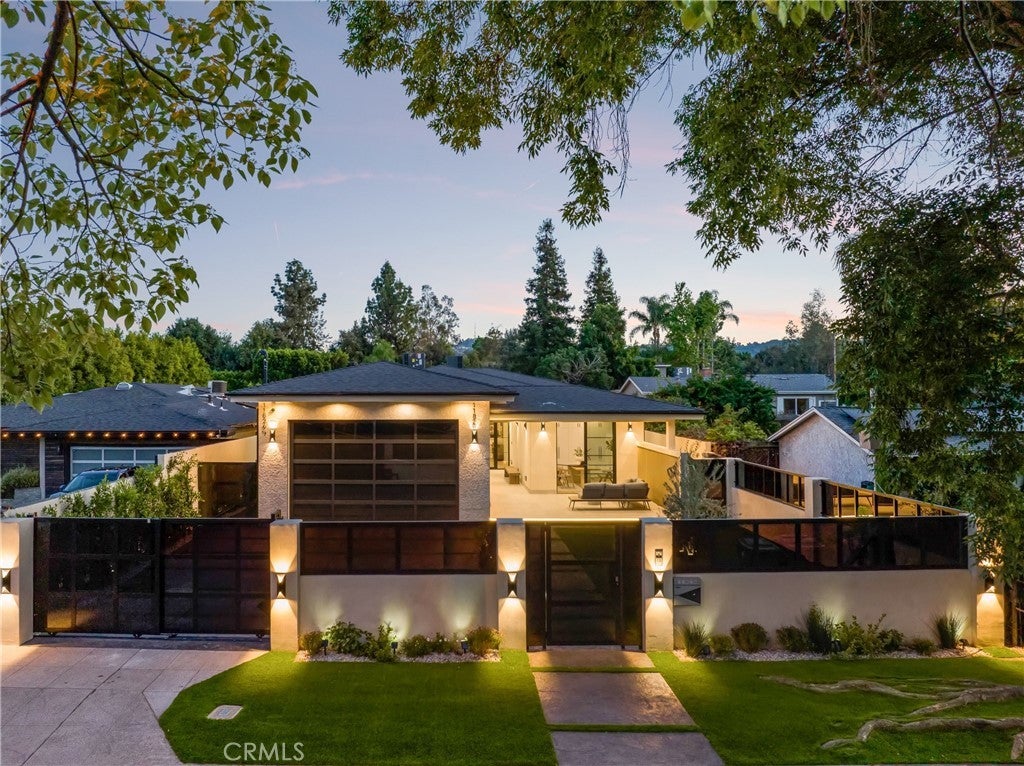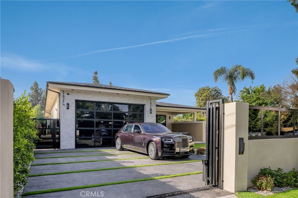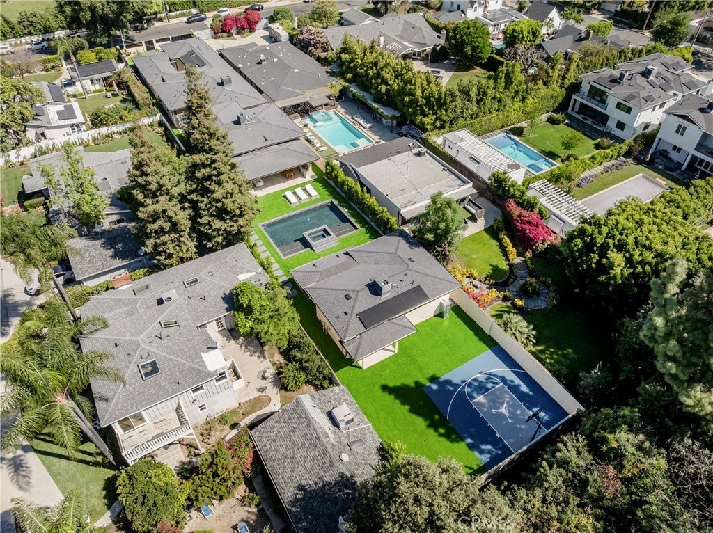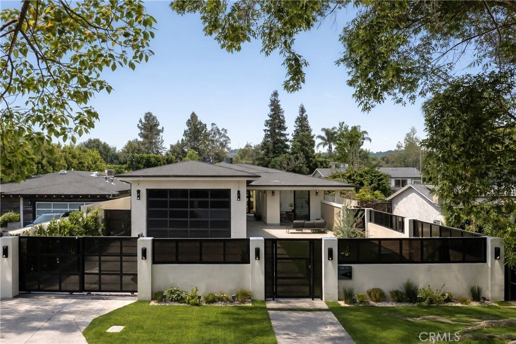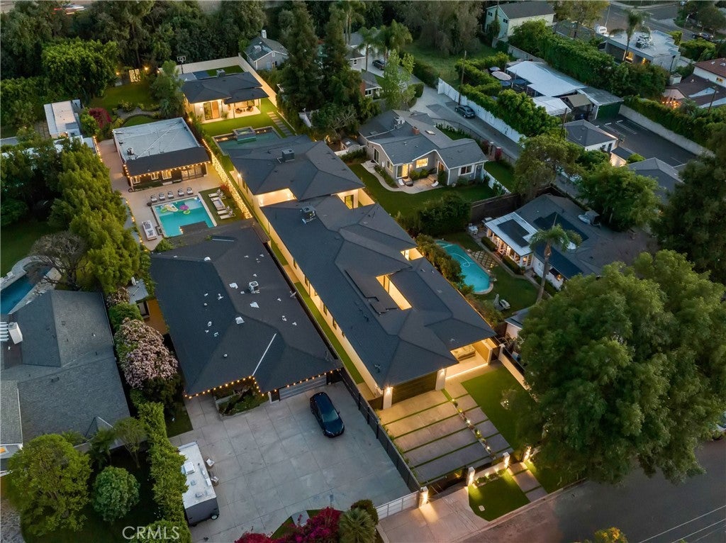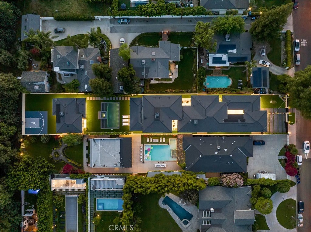 A newly built architectural residence in prime Valley Village, just moments from Studio City, set on an expansive lot and defined by seamless indoor-outdoor living. With a house built 5,525 and an additional 1,348 covered patio area for endless entertainment sitting on approx. 17,000 SF lot! Rare oppurtunity. Soaring ceilings of 14'! Clean lines, and a warm modern palette shape the home’s open layout, where expansive walls of glass connect the main living spaces directly to the backyard—creating a natural extension of the interior. The residence offers 6 bedrooms and 5.5 bathrooms, including a primary suite with a spa-like bath, dual sinks, a soaking tub, and expansive walk-in closets. Each bedroom is thoughtfully positioned with its own connection to the outdoors, many opening to private patios through full-height glass doors—offering a level of privacy and indoor-outdoor continuity rarely found. Additional features include full smart home integration with security cameras, intercom, and Ring system, PAID-OFF Solar system main house and ADU, Roman clay plaster finishes by Portola on the walls and ceilings, a spacious laundry and mudroom, reading nook, walk-in pantry, and layered design details including custom wall treatments and architectural elements throughout. The backyard is designed for both everyday living and elevated entertaining, featuring a pool with dual baja shelves, a raised spa with a three-way waterfall, and Jandy equipment. A covered patio with its own fireplace and built-in BBQ area is framed by bookmatched porcelain slab walls, creating a striking outdoor setting. A fully detached 2-bedroom ADU offers flexibility for guests, a private office, or gym. The grounds also include a sports court with surrounding open space, allowing for multiple uses. With approximately 5,525 square feet of living space, this property brings together scale, design, and thoughtful finishes—just moments from major studios, dining, and convenient Westside access.
