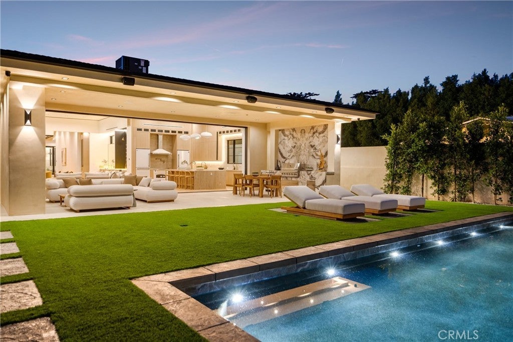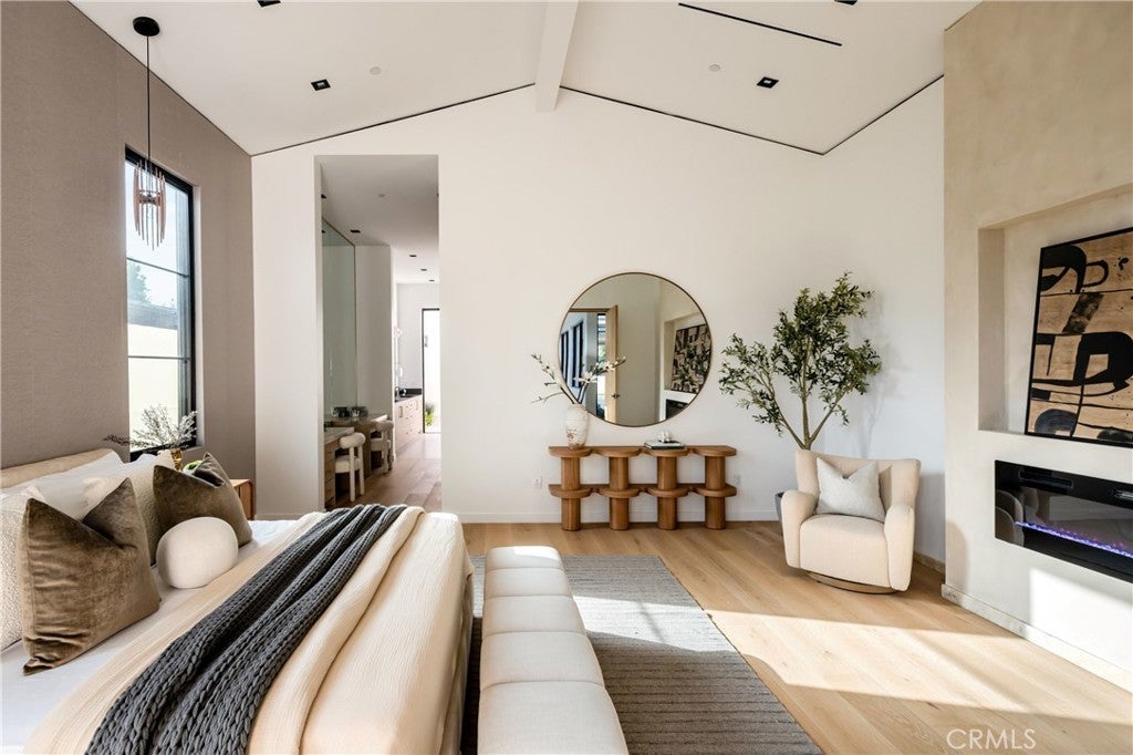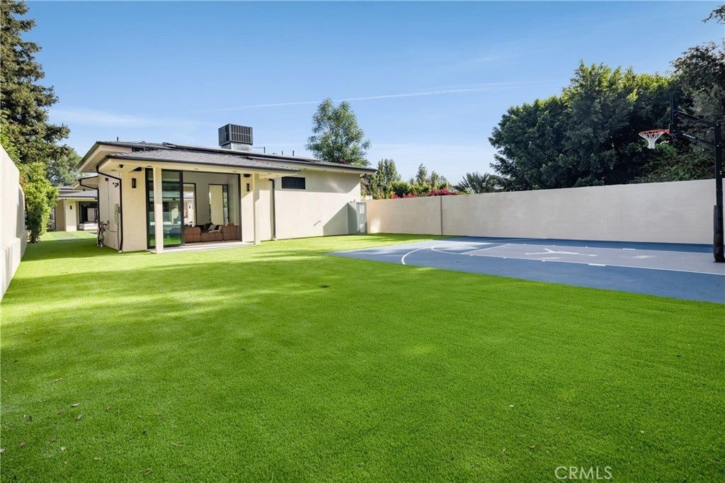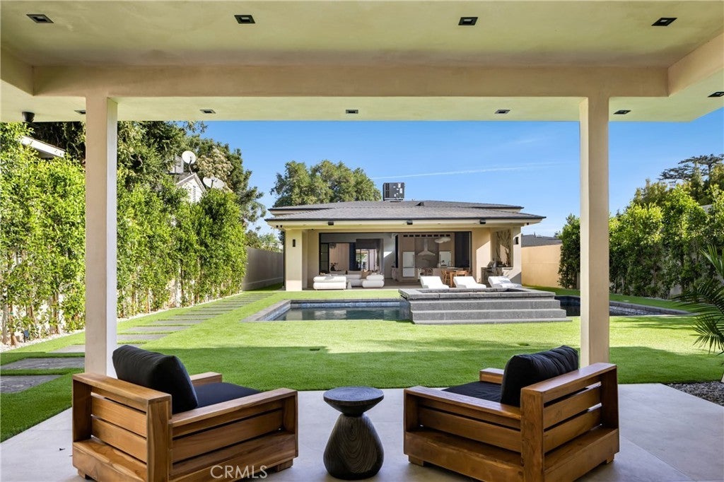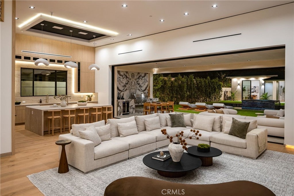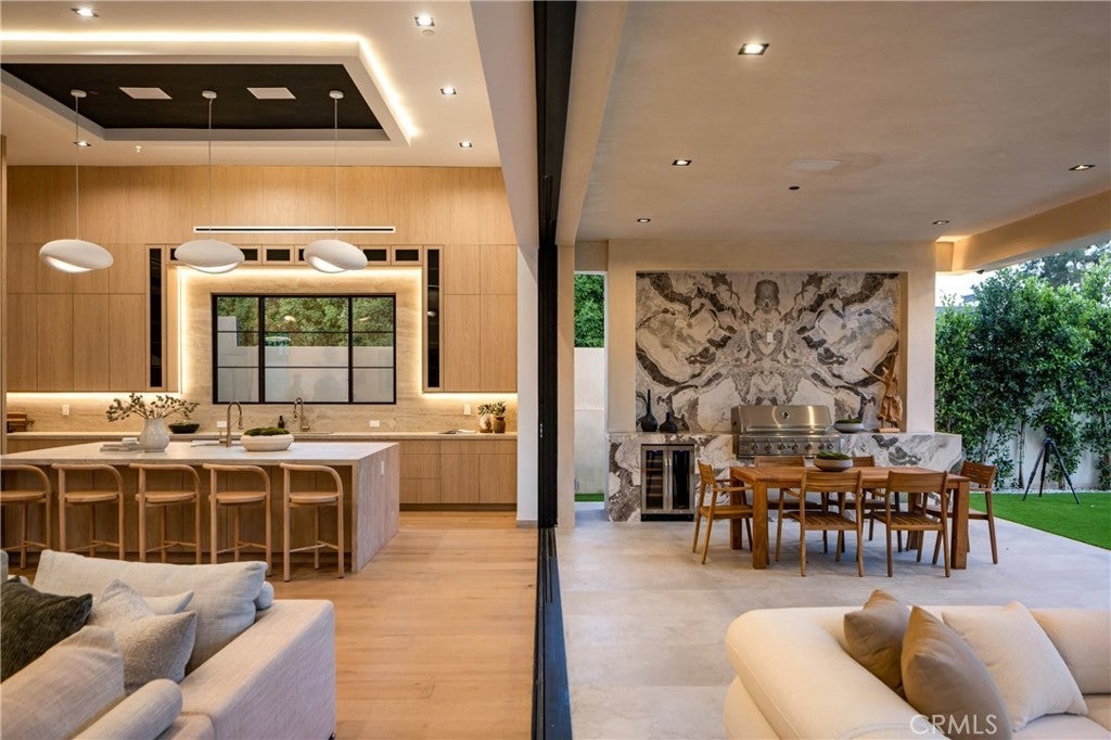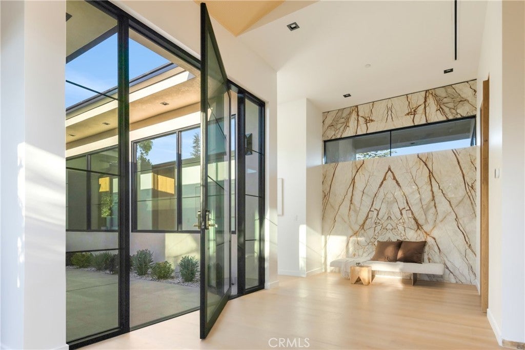 A newly built architectural residence in prime Valley Village, just moments from Studio City, set on an expansive lot and defined by seamless indoor-outdoor living. With a house built 5,525 and an additional 1,348 covered patio area for endless entertainment sitting on approx. 17,000 SF lot! Rare oppurtunity. Soaring ceilings of 14'! Clean lines, and a warm modern palette shape the home’s open layout, where expansive walls of glass connect the main living spaces directly to the backyard—creating a natural extension of the interior. The residence offers 6 bedrooms and 5.5 bathrooms, including a primary suite with a spa-like bath, dual sinks, a soaking tub, and expansive walk-in closets. Each bedroom is thoughtfully positioned with its own connection to the outdoors, many opening to private patios through full-height glass doors—offering a level of privacy and indoor-outdoor continuity rarely found. Additional features include full smart home integration with security cameras, intercom, and Ring system, PAID-OFF Solar system main house and ADU, Roman clay plaster finishes by Portola on the walls and ceilings, a spacious laundry and mudroom, reading nook, walk-in pantry, and layered design details including custom wall treatments and architectural elements throughout. The backyard is designed for both everyday living and elevated entertaining, featuring a pool with dual baja shelves, a raised spa with a three-way waterfall, and Jandy equipment. A covered patio with its own fireplace and built-in BBQ area is framed by bookmatched porcelain slab walls, creating a striking outdoor setting. A fully detached 2-bedroom ADU offers flexibility for guests, a private office, or gym. The grounds also include a sports court with surrounding open space, allowing for multiple uses. With approximately 5,525 square feet of living space, this property brings together scale, design, and thoughtful finishes—just moments from major studios, dining, and convenient Westside access.