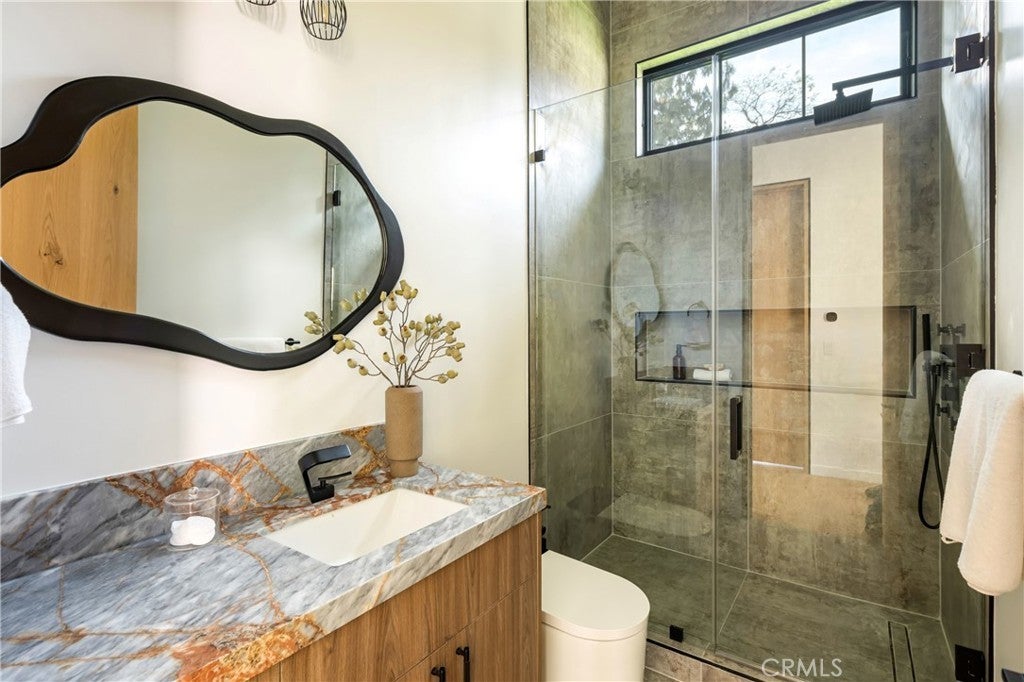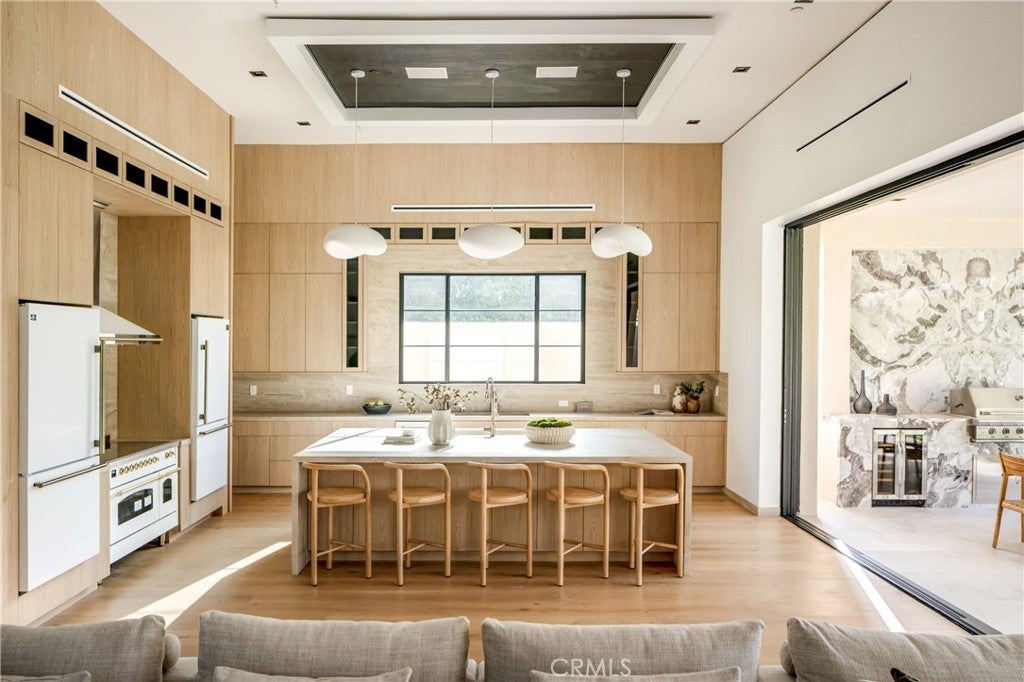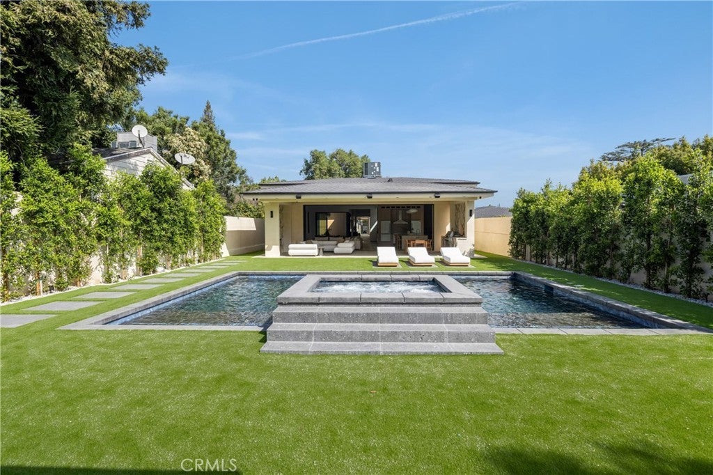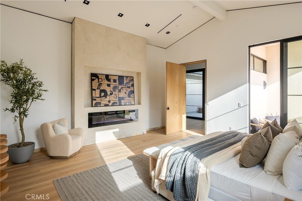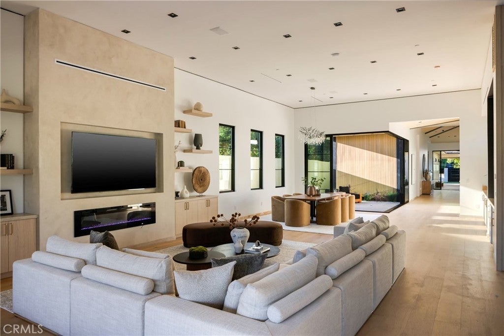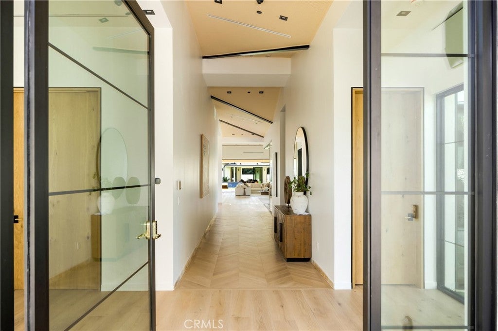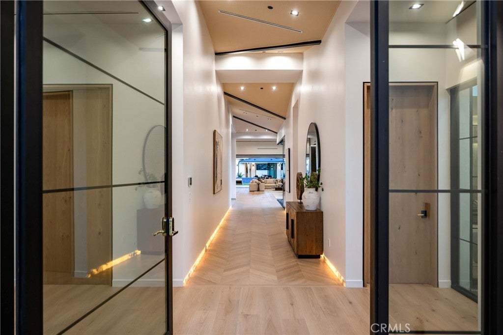 A newly built architectural residence in prime Valley Village, just moments from Studio City, set on an expansive lot and defined by seamless indoor-outdoor living. With a house built 5,525 and an additional 1,348 covered patio area for endless entertainment sitting on approx. 17,000 SF lot! Rare oppurtunity. Soaring ceilings of 14'! Clean lines, and a warm modern palette shape the home’s open layout, where expansive walls of glass connect the main living spaces directly to the backyard—creating a natural extension of the interior. The residence offers 6 bedrooms and 5.5 bathrooms, including a primary suite with a spa-like bath, dual sinks, a soaking tub, and expansive walk-in closets. Each bedroom is thoughtfully positioned with its own connection to the outdoors, many opening to private patios through full-height glass doors—offering a level of privacy and indoor-outdoor continuity rarely found. Additional features include full smart home integration with security cameras, intercom, and Ring system, PAID-OFF Solar system main house and ADU, Roman clay plaster finishes by Portola on the walls and ceilings, a spacious laundry and mudroom, reading nook, walk-in pantry, and layered design details including custom wall treatments and architectural elements throughout. The backyard is designed for both everyday living and elevated entertaining, featuring a pool with dual baja shelves, a raised spa with a three-way waterfall, and Jandy equipment. A covered patio with its own fireplace and built-in BBQ area is framed by bookmatched porcelain slab walls, creating a striking outdoor setting. A fully detached 2-bedroom ADU offers flexibility for guests, a private office, or gym. The grounds also include a sports court with surrounding open space, allowing for multiple uses. With approximately 5,525 square feet of living space, this property brings together scale, design, and thoughtful finishes—just moments from major studios, dining, and convenient Westside access.