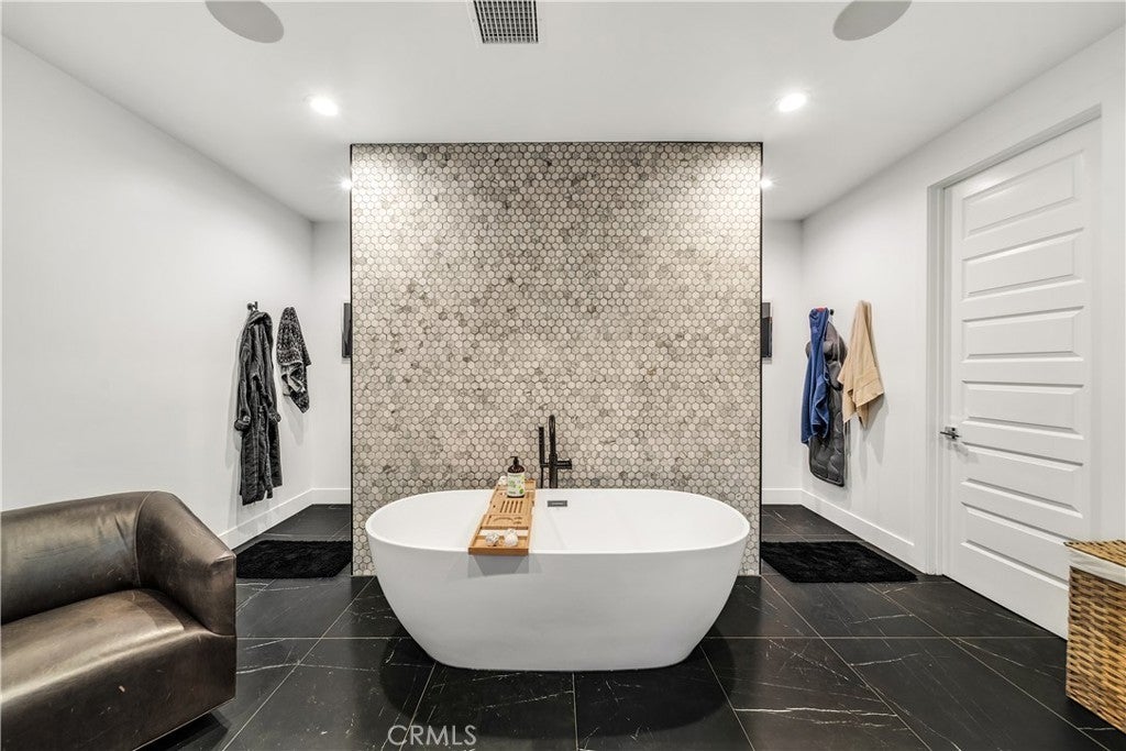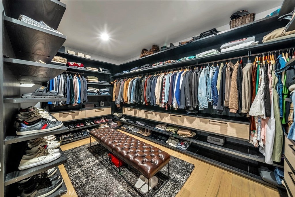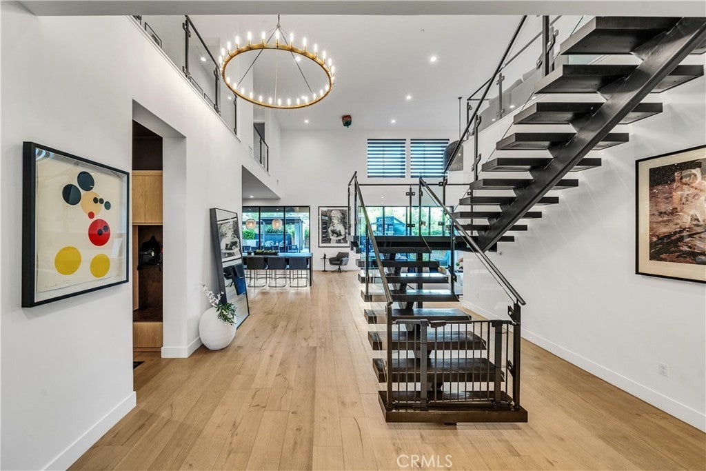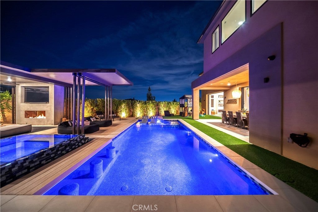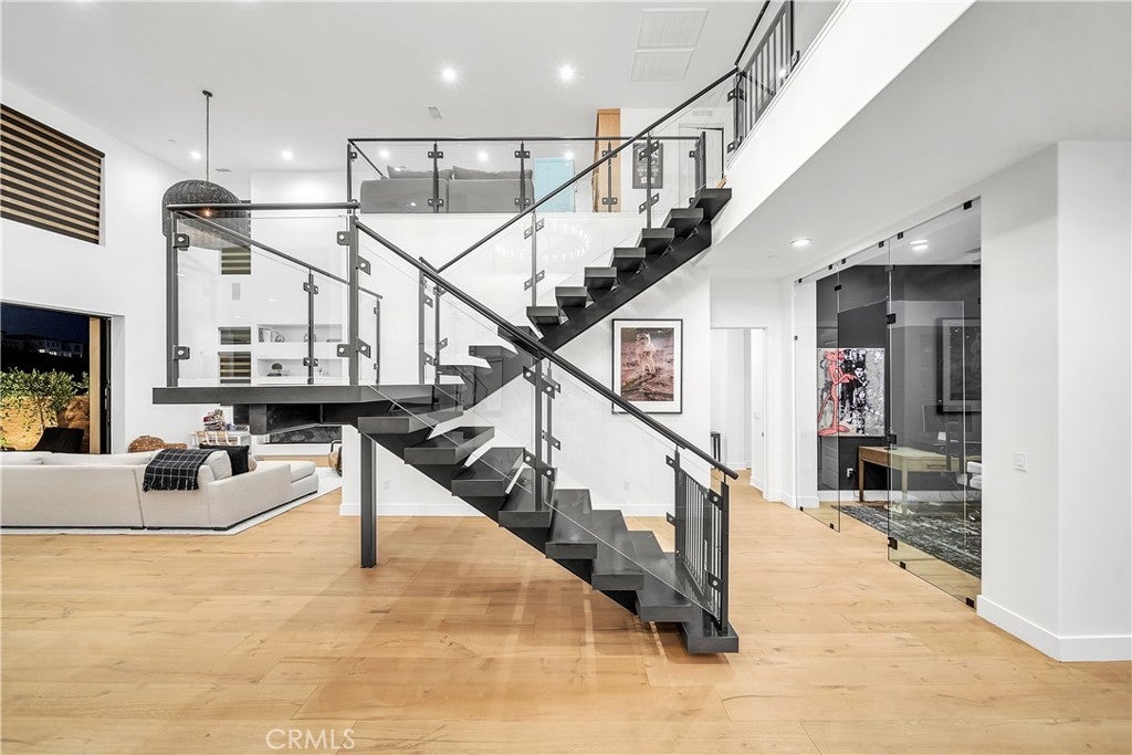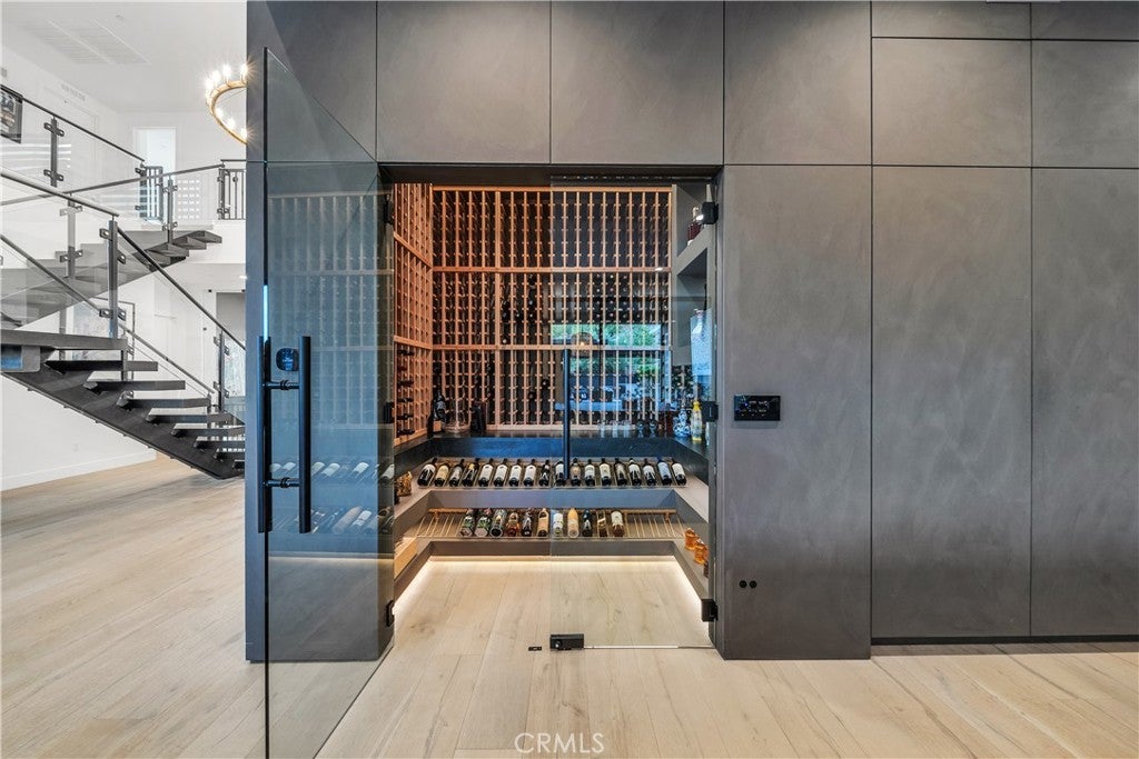 Extensively upgraded on a rare premium lot, luxury that outshines the competition- DO THE COMPARISON. This luxurious residence sits on nearly 19,000 square feet, one of the largest lots available. Showcasing meticulously landscaped grounds with a grand driveway and a charming walkway lined with expensive age-old olive trees. Located behind the gates in the prestigious Westcliffe community, a guard gated enclave in the upscale Los Angeles suburb of Porter Ranch. This Vega floor plan- Cascades Collection is 4,932 square feet of living space, and it's no surprise that this layout is a favorite among many. As you enter, you’ll be captivated by the dramatic floating piano-black staircase, expansive 11-inch white oak flooring, and soaring ceilings that create an inviting atmosphere. This home offers five spacious bedrooms and five bathrooms, including a generous en-suite bedroom on the first floor with a retreat area. An elegant executive-style office, complete with double glass doors, provides an ideal executive workspace. The heart of the home is the state-of-the-art Elmar Cucine kitchen, known for its exquisite Italian craftsmanship. Featuring clay-finished and matte lacquer cabinets, a striking 20-foot custom porcelain island, and high-end Thermador appliances. Flush sliding pocket doors and floor-to-ceiling windows enhance the open-concept layout, allowing natural light to flood the space. Enter the living area to find breathtaking 72 inch open shelving fireplace with custom floor-to-ceiling wall treatment. Ascend to the second floor to discover the expansive master suite, complete with dual vanities, a walk-in shower, and a luxurious freestanding soaking tub set against Italian oak finished vanity with white quartz countertops. Four additional bedrooms and three bathrooms with a loft area featuring custom built-ins serving as movie room. Step outside to your private backyard oasis, featuring a pebble Fina pool and spa, two fire pits, an oversized recessed patio lounge, a BBQ center, tranquil waterfall feature and outdoor pool shower. Smart home with an integrated sound system, sonos speakers for seamless backyard entertaining, and OWNED SOLAR PANELS. This incredible home offers the ultimate blend of luxury and comfort in a sought-after community.