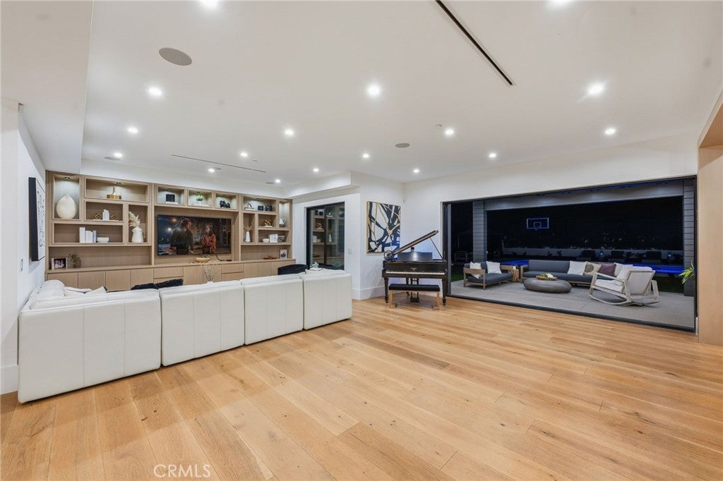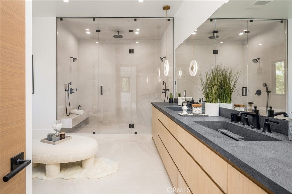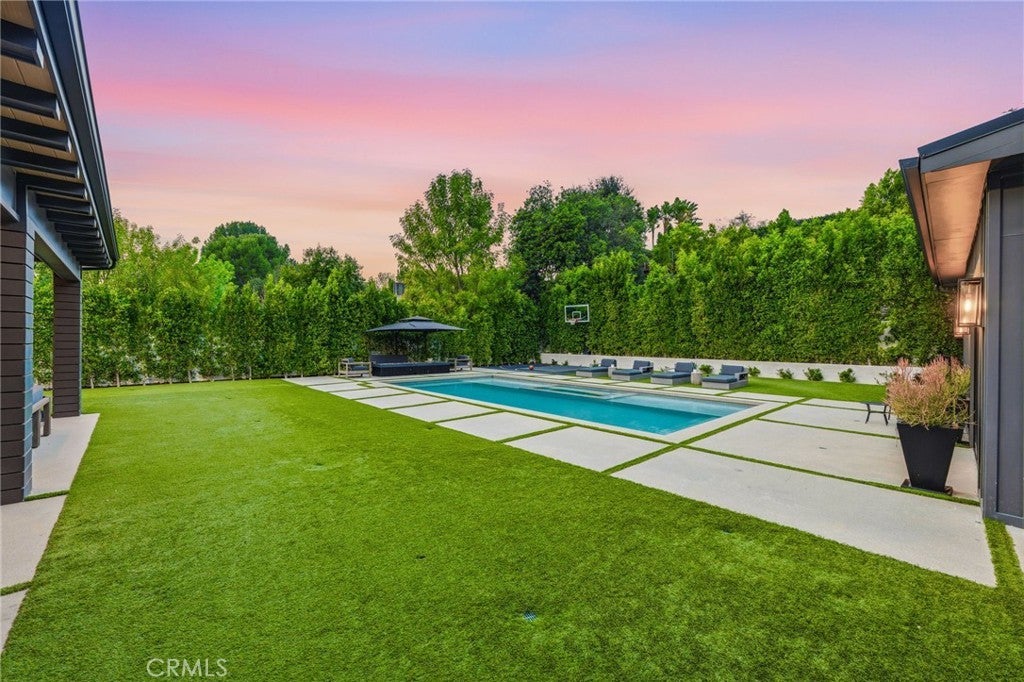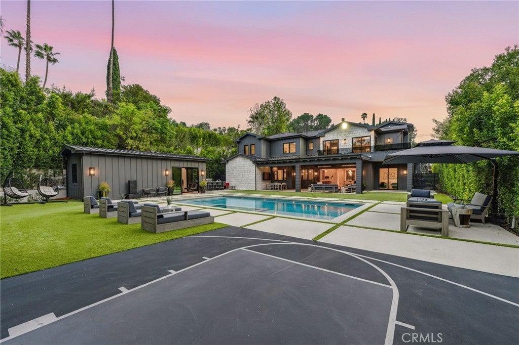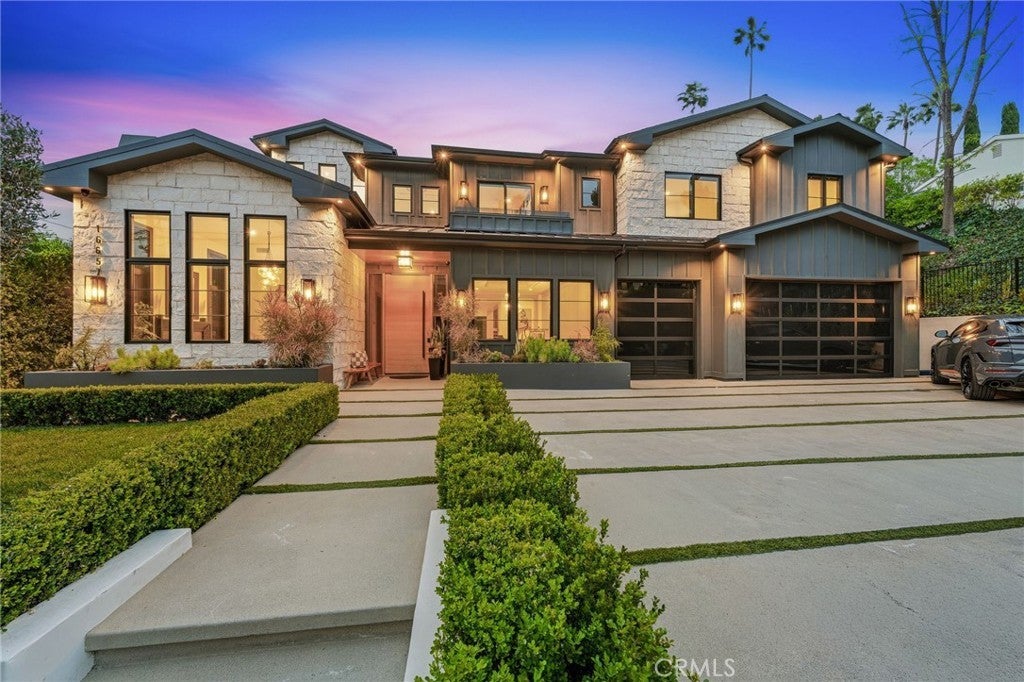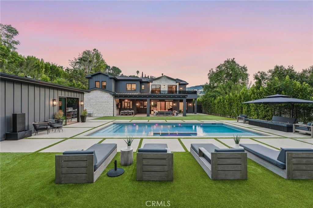 Exquisite Newer Construction Modern Farmhouse perfectly set behind gates and situated on a serene street in the hills of Encino. This estate displays tremendous craftsmanship and attention to detail throughout, All 16K lot isFLAT and usable. Gourmet Chef's kitchen with a double island, custom oak cabinetry, double oven wolf, sub zero, two dishwasher and breakfast seating area overlooking the yard. Main level also features a grand dining room with custom accent walls and living room adjacent to large glass pocket doors leading to the backyard. State of the art theater room with bar and en-suite guest also located on the main level. As you walk upstairs you will be greeted with a study showcasing built in cabinetry, additional living room and four en suite bedrooms each uniquely designed. Impressive Primary suite with double walk-in closets, fireplace and wrap-around balcony overlooking amazing views. Expansive oasis-like backyard features a covered patio with space heaters, pool/spa, fire pit seating, BBQ center, tons of grassy space and a one-bedroom guest house with a full bath that can be perfect for GYM or studio. Additional amenities include Control 4 Smart system, security system with cameras, surround sound throughout and much more. Located within the highly desired Lanai school district and conveniently just minutes away from shops, restaurants and easy Westside access. This masterpiece is the true epitome of luxury at its finest! Property can come furnished