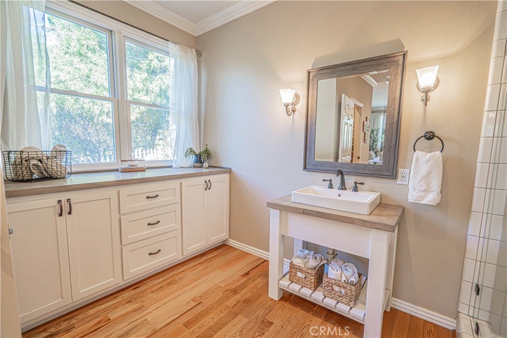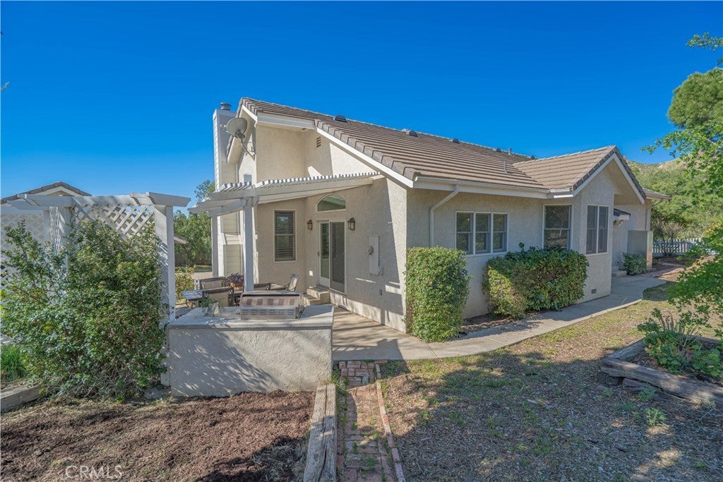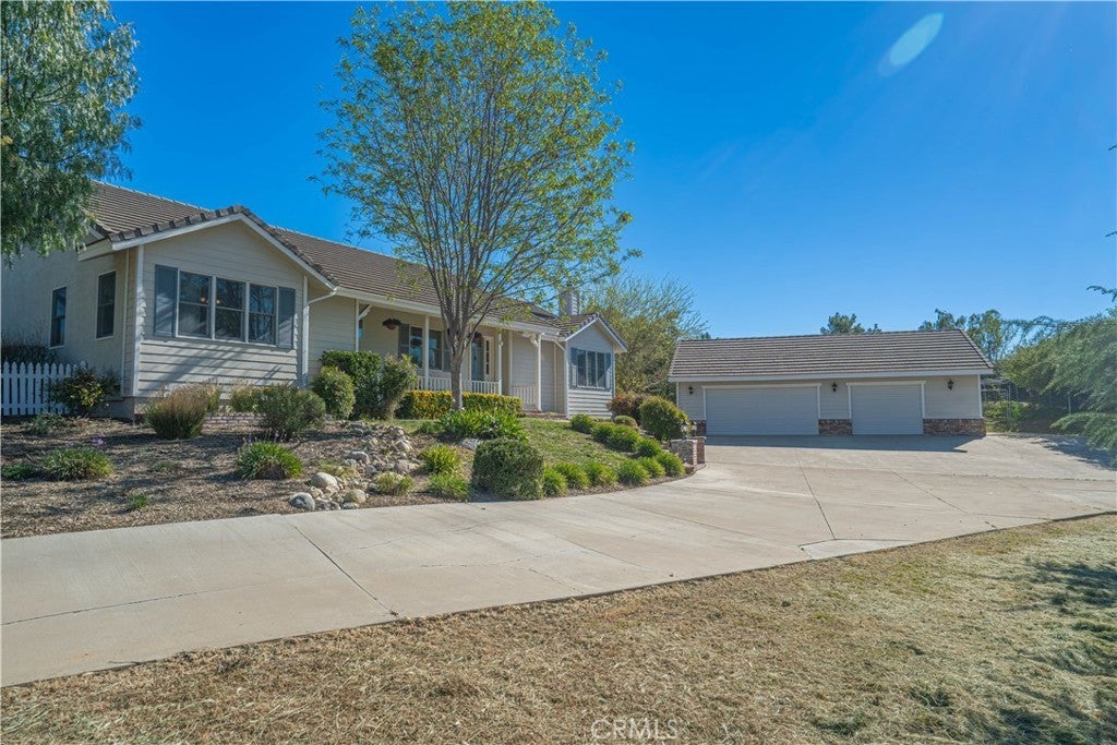 Ideally located in the heart of town in Agua Dulce, this custom-built single-story home set on 1.23 flat usable acres offers the perfect blend of small-town convenience, privacy, and relaxed country living. Built in 2002 and offering just under 2000 sq ft of warm, inviting living space with paved road access and natural gas service, this turnkey property provides just enough land to enjoy space and freedom without overwhelming maintenance. The light and bright interior is centered around a gourmet kitchen featuring granite countertops, stainless farmhouse sink, cabinet-faced built-in Sub-Zero refrigerator/freezer, butcher block island, walk-in pantry and abundant cabinetry. Just off the kitchen is a covered patio ideal for entertaining with a built-in BBQ and brick pizza oven. Vaulted ceilings enhance the kitchen, dining and living areas, complemented by beautiful hardwood flooring, wood-cased Anderson dual-pane windows and classic shutters on most windows. A cozy wood-burning fireplace anchors the main living space. The spacious primary suite offers crown molding, a large bathroom and two generous closets, while two additional bedrooms provide flexibility for guests, family or home office use. Outdoors, enjoy a charming front porch with Saddleback Mountain views, mature fruit trees, a productive garden with automatic sprinklers, RV parking space and an existing chicken coop structure. The front property area allows room for future barn, corrals or additional improvements. Water supply is supported by two wells plus a 4,000-gallon storage tank. A long paved driveway leads to the home and the detached three-car garage/workshop with 240-volt power, insulated shop bay, air compressor and industrial air filtration system, along with a separate storage shed. Enjoy true in-town convenience with nearby restaurants, local market, coffee shop and hardware store just minutes away, plus easy access to Vasquez Rocks and surrounding riding and hiking trails — just 10 miles from Santa Clarita.