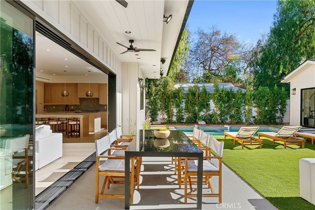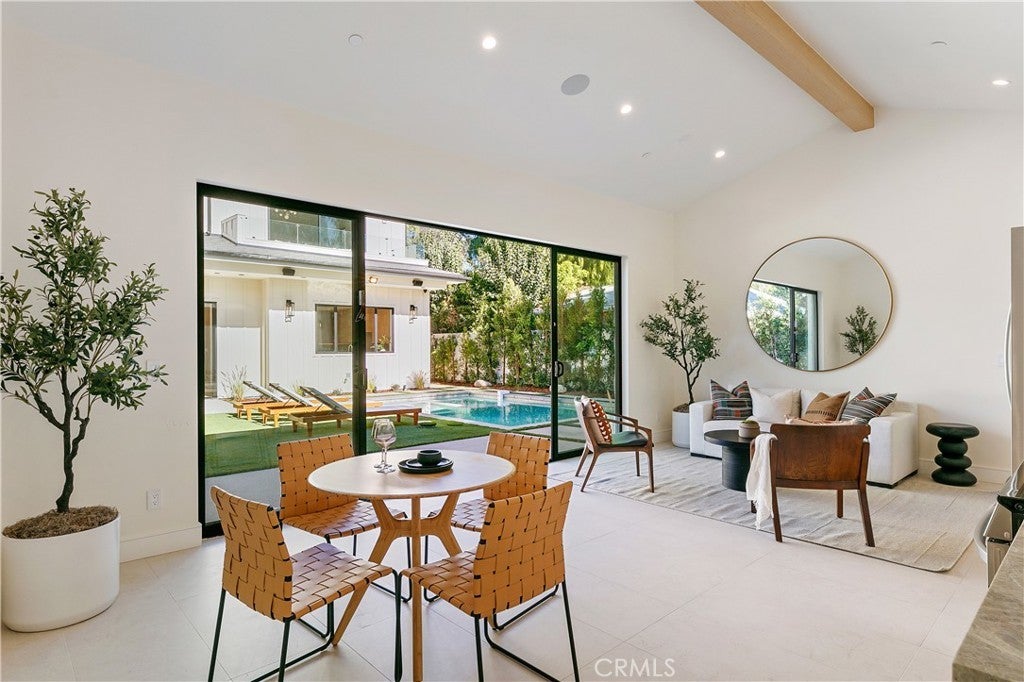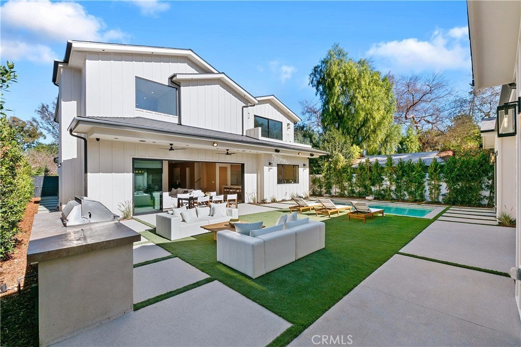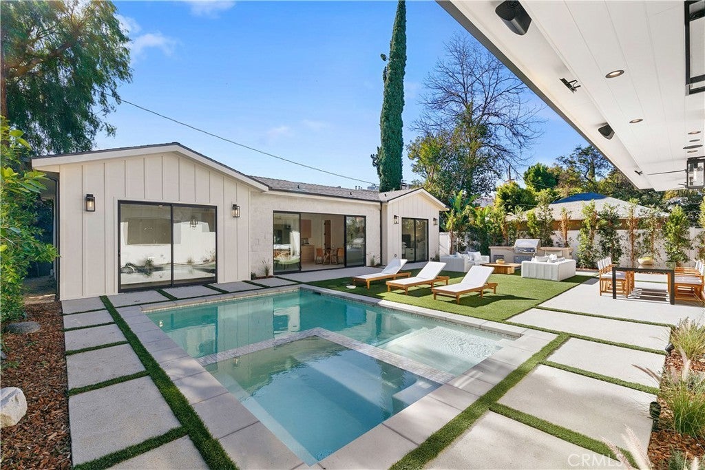 Introducing an exceptional new construction estate situated in the heart of Sherman Oaks. This property features a detached two-bed, one-bath ADU, complete with its own living room and full kitchen, perfect for guests, extended family or as additional living space. Designed for modern living, the primary residence showcases a spacious open-concept living and dining area that opens effortlessly into the gourmet chef’s kitchen, which is outfitted with top-of-the-line appliances, double islands and a walk-in pantry. An oversized sliding glass door seamlessly extends your living space into the serene backyard retreat, where a sparkling pool/spa and built-in BBQ create the perfect setting for outdoor entertaining. Completing the main level is an ensuite bedroom, chic powder bathroom with a one-of-a-kind natural stone sink and a mudroom with direct access to the two-car garage. Upstairs, four generously sized ensuite bedrooms are complemented by a dedicated laundry room. The primary suite offers a peaceful retreat highlighted by a private balcony, dual walk-in closets and a spa-inspired bathroom with a soaking tub, oversized rainfall shower and double vanity. Additional features include a state-of-the-art security system with cameras, high ceilings and built-in speakers throughout. This property is ideally located within the award-winning Dixie Canyon School District and sits just moments away from Ventura Boulevard, Westfield Fashion Square, top private schools and so much more.