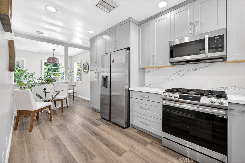 Welcome to this beautifully updated home located on a quiet, well established street in one of Woodland Hills’ most desirable and centrally located neighborhoods, just moments from Ventura Boulevard. Thoughtfully improved over the years, this property offers a spacious layout, modern upgrades, and a large backyard perfect for everyday living and entertaining. In 2019, the primary suite was expanded to create a true retreat, featuring a generous walk in closet and a stunning oversized bathroom with a dual sink vanity and a spacious shower with a soaking tub inside. A dedicated laundry area with built in shelving was also added near the secondary bedrooms, adding both convenience and functionality. The kitchen was fully remodeled in 2023 with modern cabinetry, new appliances, and a clean, updated design that opens beautifully to the living areas. Around the same time, the garage was connected to the house with an interior access door and upgraded with fresh paint and durable epoxy flooring, creating a versatile space for storage, hobbies, or a home gym. Recently, the interior of the home was refreshed with new white paint throughout, giving the space a bright, clean, move in ready feel. The backyard offers plenty of room to enjoy outdoor living, with space for games, entertaining, pets, or future additions. The yard has been the setting for years of memories, with room to play sports, host gatherings, or simply relax and enjoy the outdoors. Located within a highly rated school district and just minutes from the best of Ventura Boulevard, this home is close to popular restaurants, coffee shops, and everyday conveniences including Starbucks, Smart and Final, The Habit, Jersey Mike’s, Juicy Ladies, local salons, and neighborhood markets. Enjoy easy access to Westfield Topanga, The Village, Calabasas, and the 101 freeway, making this location ideal for both daily living and commuting.