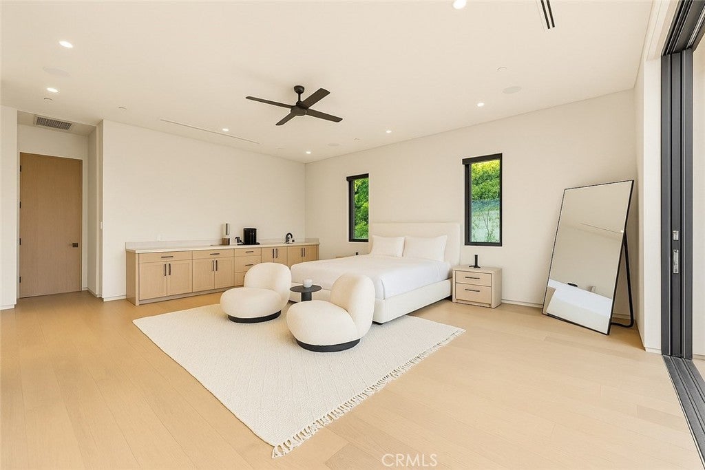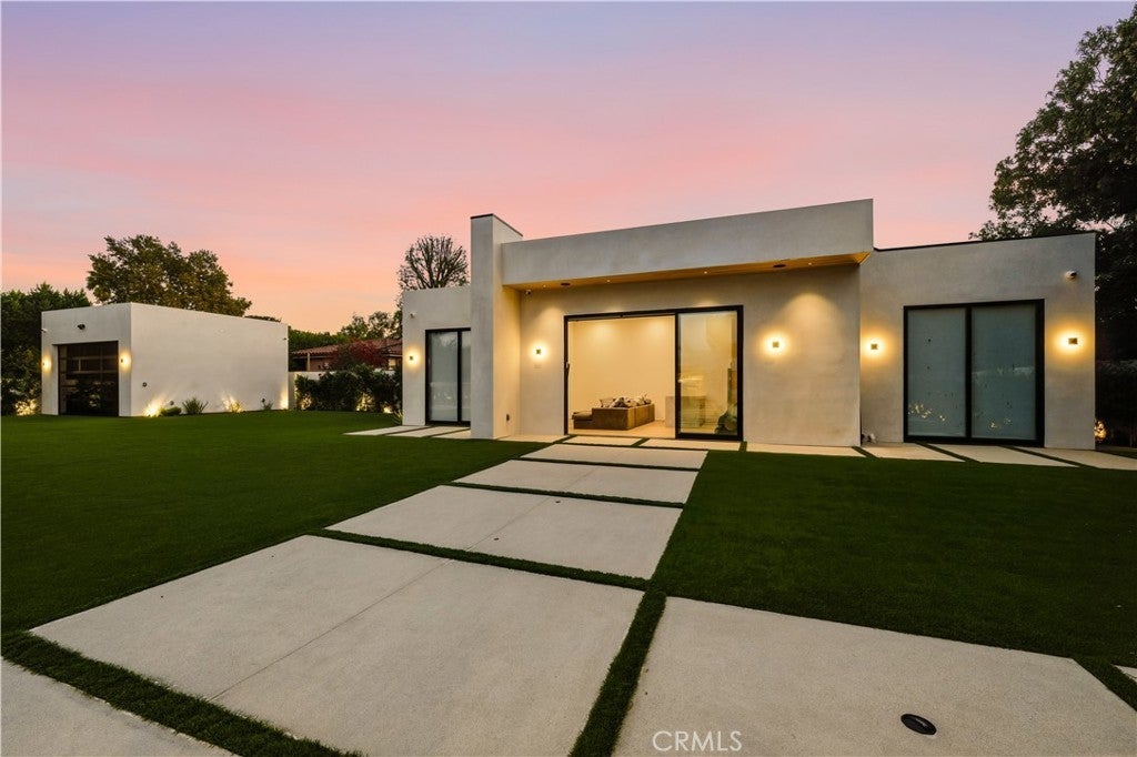 Welcome to this rare architectural masterpiece, perfectly situated in the coveted Walnut Acres neighborhood. From the moment you arrive, the sleek design and pristine landscaping make an unforgettable first impression. Every detail of this fully automated smart home showcases modern innovation and refined luxury. Step inside to discover an interior as breathtaking as the exterior. Plaster walls, designer finishes, and Taj Mahal stone accents blend sophistication with functionality. The home features fully automatic pocket doors that open at the touch of a button, seamlessly connecting indoor and outdoor spaces, along with automated shades throughout for effortless control of light and privacy. The open-concept layout flows into a gourmet kitchen that’s a dream for culinary enthusiasts and entertainers. Taj Mahal stone countertops and state-of-the-art appliances set the stage, complemented by a secondary “dirty kitchen” for additional prep space. A custom Taj Mahal dining table serves as an elegant centerpiece for memorable gatherings. The private master suite is a true oasis, offering a spa-inspired bathroom with an indoor jacuzzi and electronic shower. A mini kitchen adds exceptional convenience and privacy. Additional features include a thoughtfully designed home office and a dedicated playroom, easily adaptable as a recreational space. These versatile rooms enhance the home's functionality and ensure every need is met. Entertainment reaches new heights with a private movie theater and a stunning outdoor environment. The cabana—with a full outdoor kitchen and BBQ—is ideal for hosting or relaxing. Car enthusiasts will appreciate the 13.6-ft RV garage with hookups, the attached two-car garage, and an additional two-car garage in the backyard. An electric automatic pocket door offers seamless access to the outdoor spaces. The property also includes a separate ADU, providing flexible living for guests, extended family, or rental opportunities. Every aspect of this home has been designed to create a sanctuary that is as functional as it is beautiful. Experience unparalleled modern luxury in the heart of Walnut Acres—this home truly has it all. Sqft includes garages.