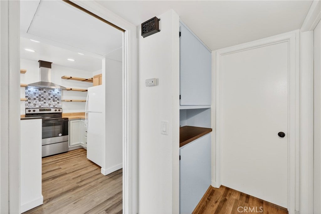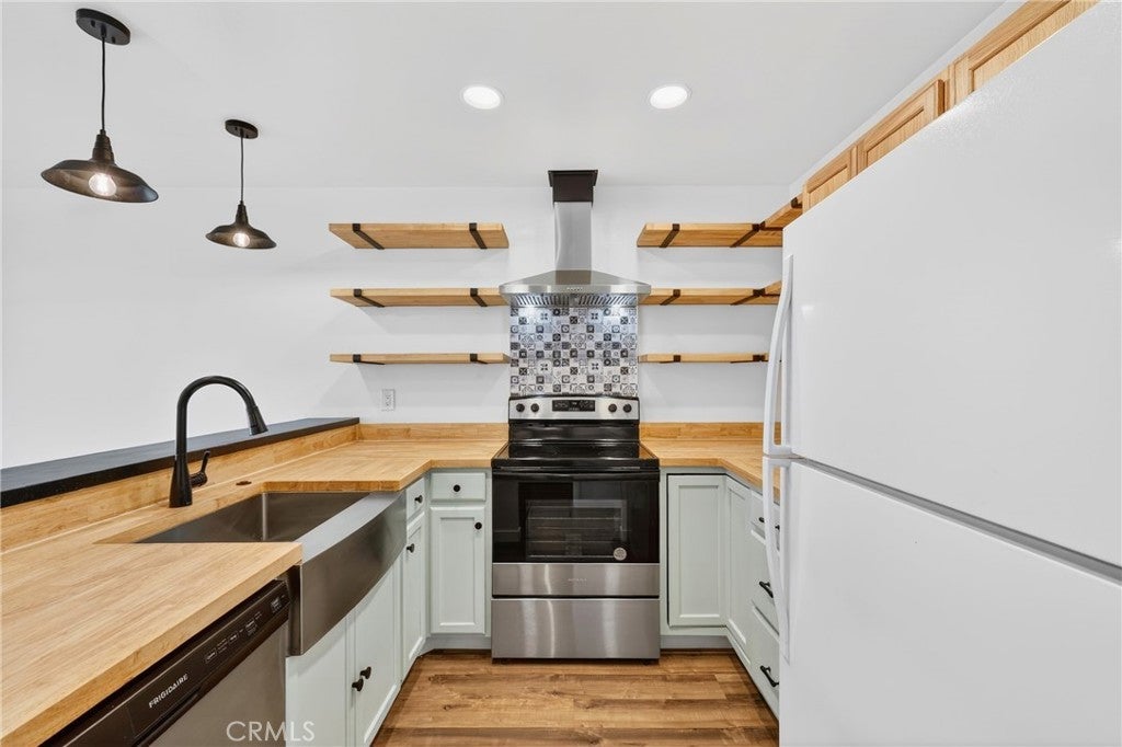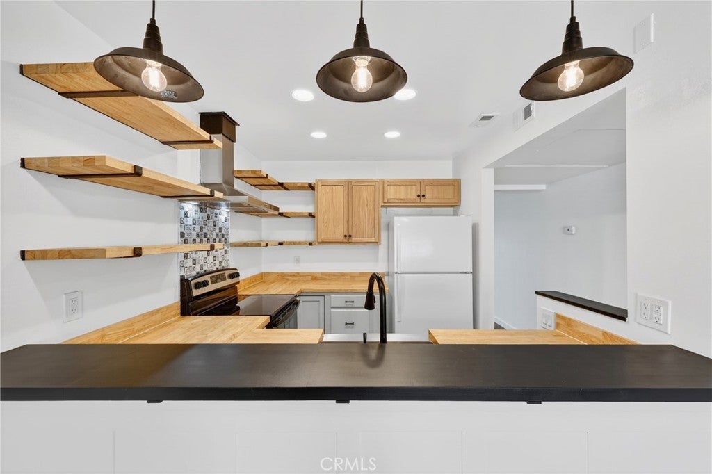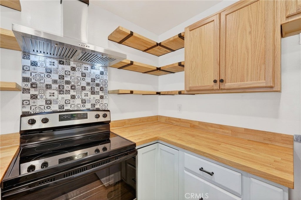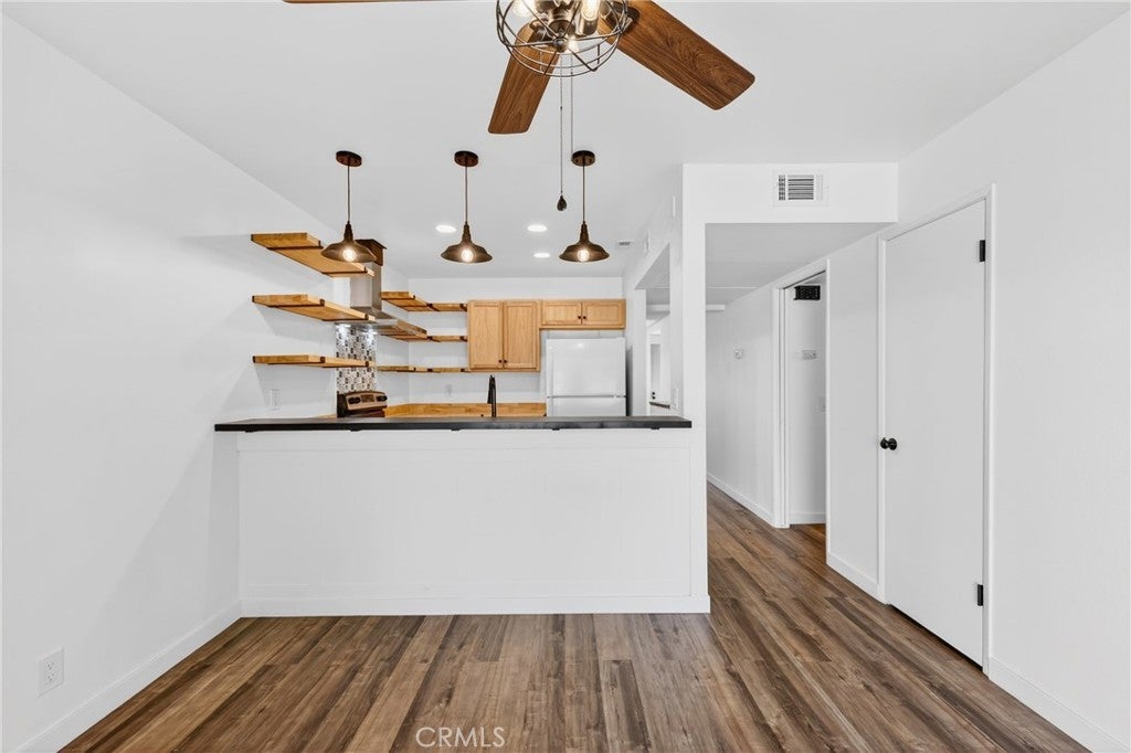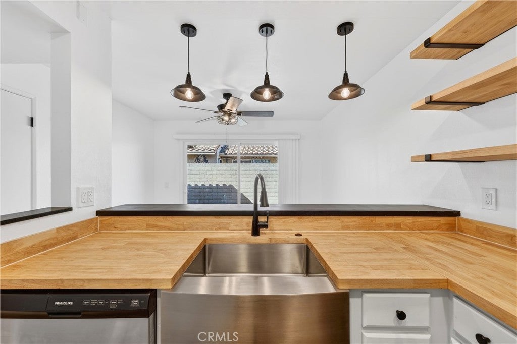 Welcome to this beautifully updated, turnkey condo located in the desirable city of Upland. This charming 2-bedroom, 2-bathroom home offers 1,023 sq ft of thoughtfully designed living space, perfect for comfortable everyday living. The kitchen features stylish open shelving, stunning butcher block countertops, a stainless steel farmhouse sink, and stainless steel appliances including a stove and dishwasher—perfect for both cooking and entertaining. Laminate flooring flows seamlessly throughout the home, complemented by large ceiling fans that enhance comfort in every room. Both bathrooms have been tastefully renovated with modern finishes. The spacious primary bedroom includes a private en-suite bathroom, providing a peaceful retreat. Step outside to your own cozy private yard—ideal for family gatherings, outdoor dining, or simply relaxing with a good book. Additional highlights include a 2-car garage conveniently located near the unit. The community offers on-site laundry facilities with paid washers and dryers, as well as a private pool for residents to enjoy. This move-in-ready home combines style, comfort, and convenience—don’t miss this wonderful opportunity!