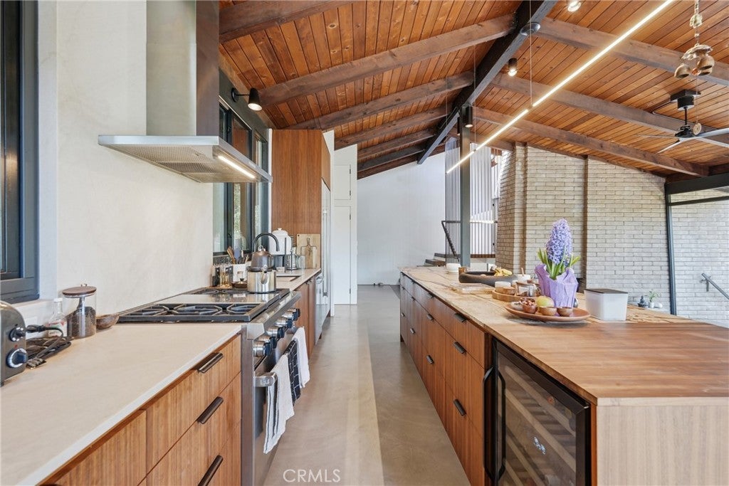Beamed Ceilings, Ceiling Fan(s), High Ceilings, Galley Kitchen