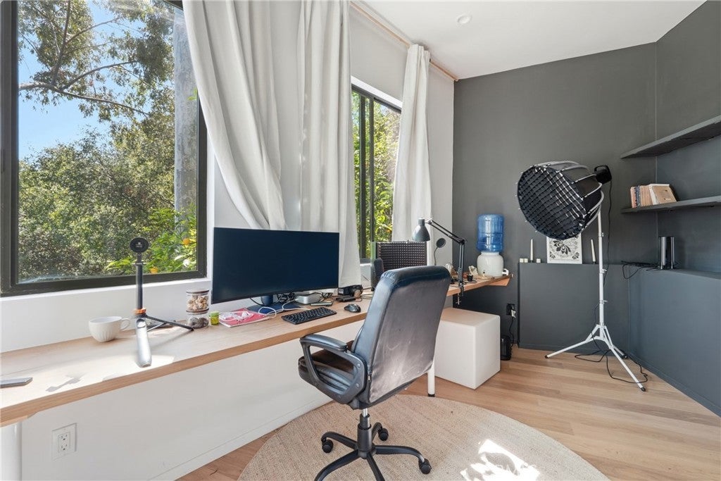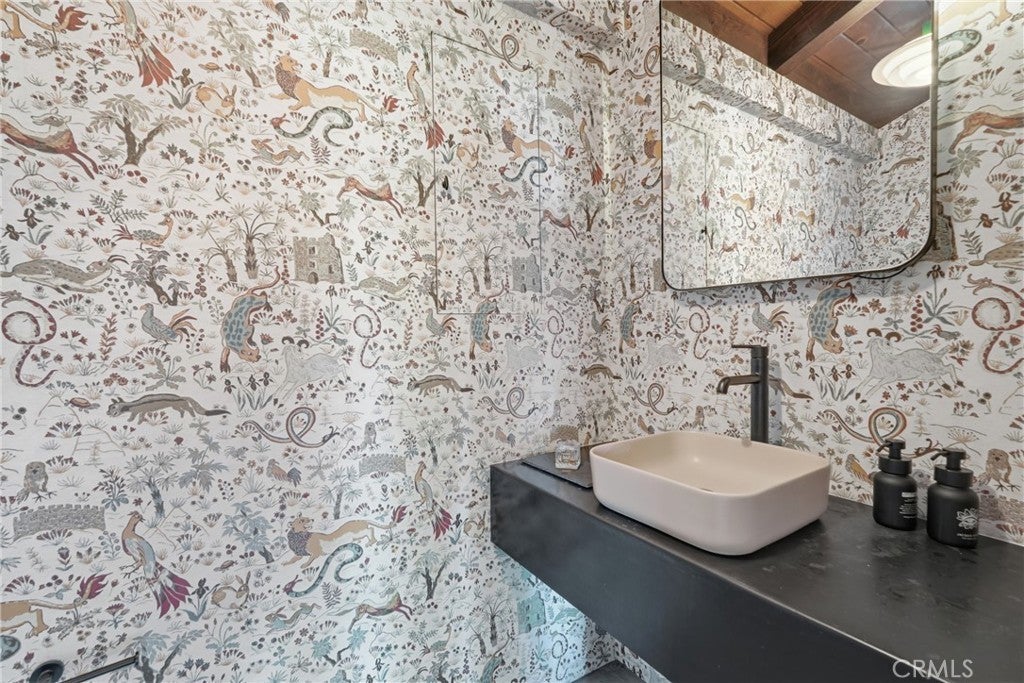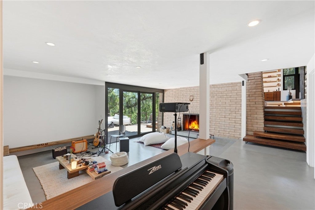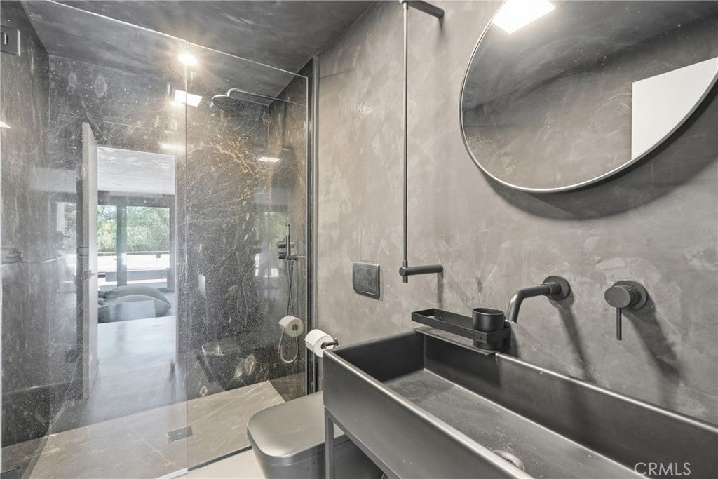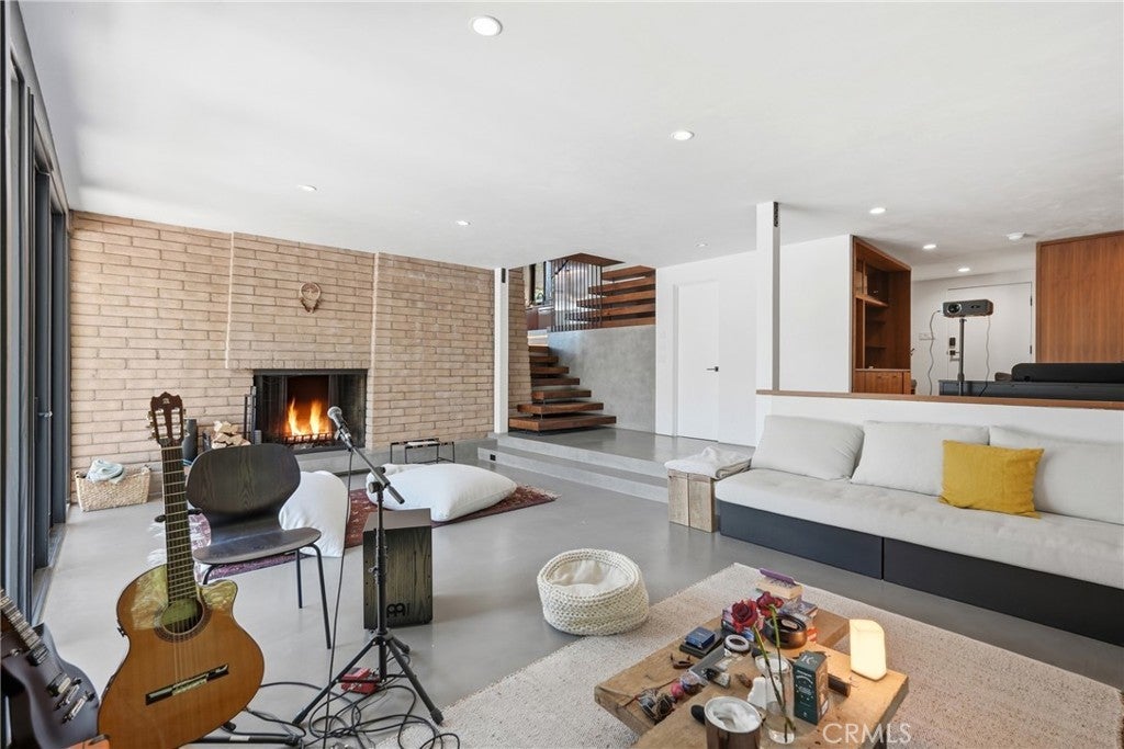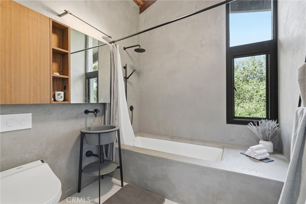 Private 3-acre Topanga retreat with panoramic canyon and mountain views, resort-style amenities, and seamless indoor-outdoor living. Tucked away in the highly sought-after Upper Fernwood neighborhood of Topanga, this mid-century residence offers a rare blend of privacy, architecture, and lifestyle. Set on nearly 3 acres and surrounded by lush natural landscape, the home showcases expansive walls of glass that frame breathtaking canyon and mountain views while filling the interiors with natural light. The home features an open-concept living and entertaining space with clean modern lines, warm wood finishes, and a relaxed yet elevated design. A stunning great room with vaulted wood-beamed ceilings and a statement fireplace serves as the heart of the home, while a dedicated dining area captures serene views through floor-to-ceiling glass doors that open to the surrounding decks. The chef’s kitchen is equipped with Wolf and Sub-Zero appliances, custom cabinetry, and stone countertops, seamlessly connecting to the main living areas. The primary suite offers a tranquil retreat with a fireplace and abundant natural light, complemented by a spa-inspired bathroom featuring a freestanding soaking tub, walk-in shower, and peaceful nature views. Additional bathrooms feature modern finishes, including a sleek secondary bath with stone surfaces and custom fixtures, along with a designer powder room. Additional bedrooms are bright and inviting, many with direct outdoor access, while a separate office provides an ideal work-from-home setting. Designed for a true wellness lifestyle, the outdoor spaces are exceptional. Expansive wood decks offer multiple seating and dining areas with sweeping views, a built-in outdoor kitchen with BBQ, lounge areas with fire feature, hot tub, cold plunge, and a private barrel sauna. A private trail and bridge lead to a yoga and viewing deck overlooking the surrounding mountains. The grounds feature mature landscaping including fruit trees, enhancing the natural and private setting. Additional features include radiant heated floors throughout, a Tesla EV charger, a spacious driveway, covered parking, and a private turf courtyard. Set in a peaceful, nature-rich setting near Topanga’s most desirable hiking trails, the property offers privacy while still being within convenient reach of Los Angeles. The property is presented as a fully furnished residence, with the option for unfurnished occupancy.