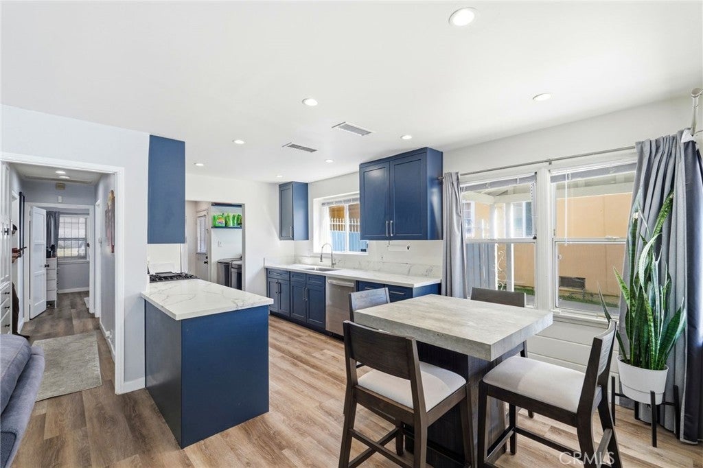 Two homes on one lot: live in one, rent the other, and save $$! This turn-key property is the ultimate mortgage-helper, delivered fully vacant just steps from the park and minutes to the 405. The updated main home (2BD/1BA) features a bright, expansive living room with a fireplace, a sleek quartz kitchen, and a designer-tiled bath. The private rear unit (1BD/1BA) offers stunning sunset views and its own updated kitchen and bath—perfect for a high-end rental or guest suite. A standout feature is the 2-car garage, which comes with approved plans and permits for an ADU conversion. You have the flexibility to keep the garage for your own parking and storage, or hit the ground running to convert it into a third studio for additional living space or income. With modern finishes throughout and all the heavy lifting already done, this is a rare opportunity to own a versatile home that helps pay for itself.