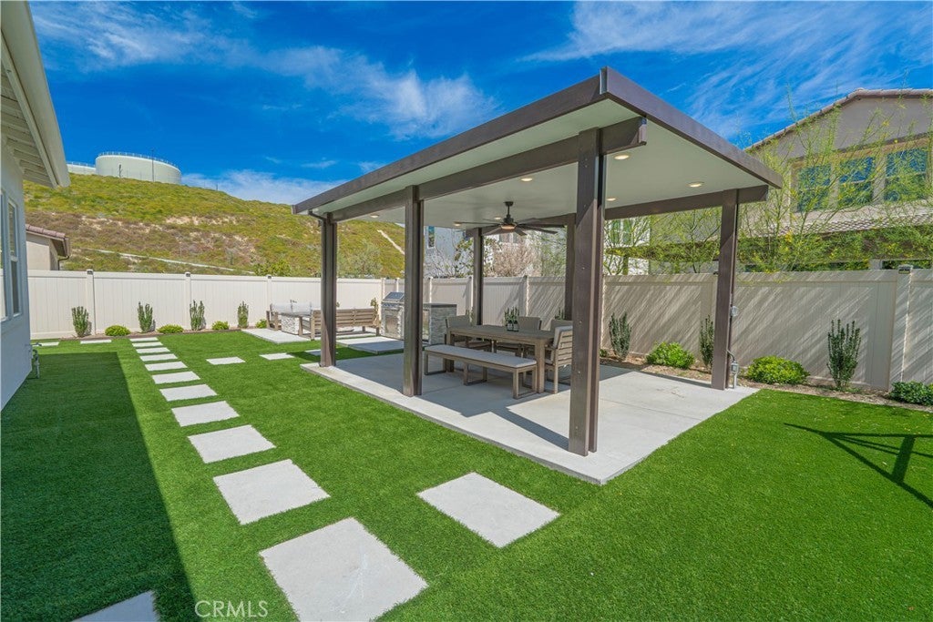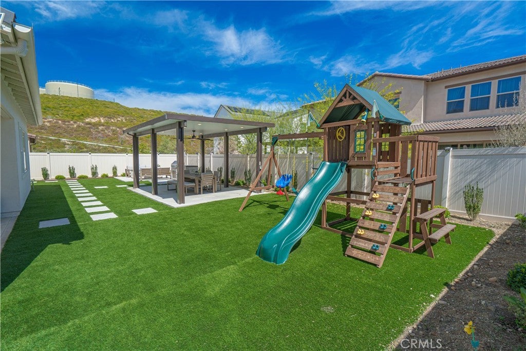 Welcome to one of the most desirable homes in Tesoro Highlands—featuring a highly sought-after dual primary suite layout with one full suite upstairs and another downstairs, offering ultimate flexibility for multigenerational living, guests, or private workspace. This nearly new 5-bedroom, 5-bath home offers over 4,100 square feet of thoughtfully designed living space, including a main-level bedroom suite that lives like a second primary—perfect for comfort and convenience without compromise. Step inside to soaring ceilings and a true open-concept layout, where the kitchen, dining, and living spaces flow seamlessly together. The heart of the home opens to a covered California Room, creating the ultimate indoor-outdoor lifestyle ideal for entertaining, relaxing, or enjoying Southern California evenings year-round. Upstairs, a spacious bonus room provides flexibility for a media room, playroom, or second living area. The primary suite is a true retreat, featuring a spa-inspired bathroom and generous walk-in closet, while additional bedrooms are well-appointed—including a Jack-and-Jill layout designed for both function and privacy. Situated in the highly sought-after Tesoro Highlands community, residents enjoy resort-style amenities including pools, parks, trails, and pickleball courts—bringing a true lifestyle experience right to your doorstep. This is more than just a home—it’s the next level of Valencia living.