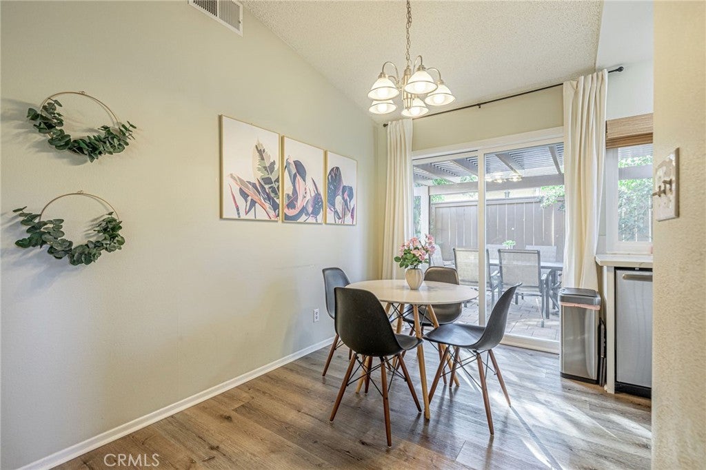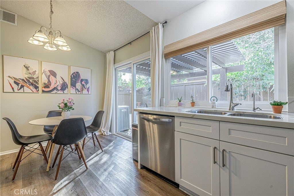 Tucked away on a quiet cul-de-sac and adjacent to Valencia’s scenic paseo system, this home provides both privacy and convenience. This upgraded single-story courtyard home is located in the sought-after Sunrise neighborhood and offers comfortable, turnkey living. The 2-bedroom, 2-bath floor plan features a remodeled kitchen with stainless steel appliances, updated bathrooms, dual-pane windows, a new sliding door, a newer HVAC system, and a tankless water heater. Wide-plank, wood-style flooring and a neutral color palette create a clean, cohesive look throughout. Enjoy indoor-outdoor living with a gated front courtyard and a peaceful backyard, both designed for low maintenance and everyday enjoyment. The backyard offers a covered patio with pavers, shade trees, and raised planter beds—perfect for relaxing evenings or casual entertaining. Tucked away on a quiet cul-de-sac and adjacent to Valencia’s scenic paseo system, this home provides both privacy and convenience. Additional features include a two-car garage with epoxy flooring and built-in storage. The community is known for award-winning schools, tree-lined streets, nearby parks, and close proximity to shopping, dining, and entertainment. Exceptional value in the heart of Valencia. Low HOA and noNO Mello-Roos. This is a rare opportunity to own a thoughtfully updated home in the heart of Valencia!