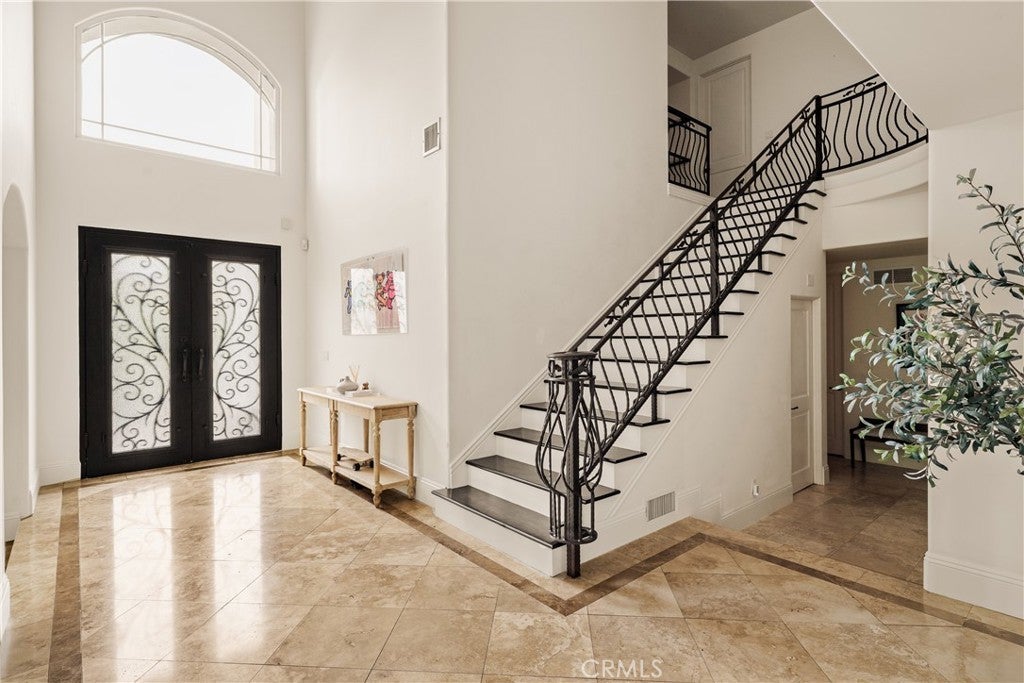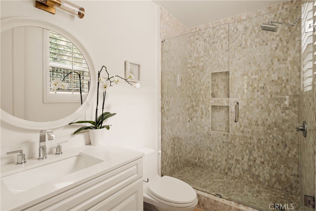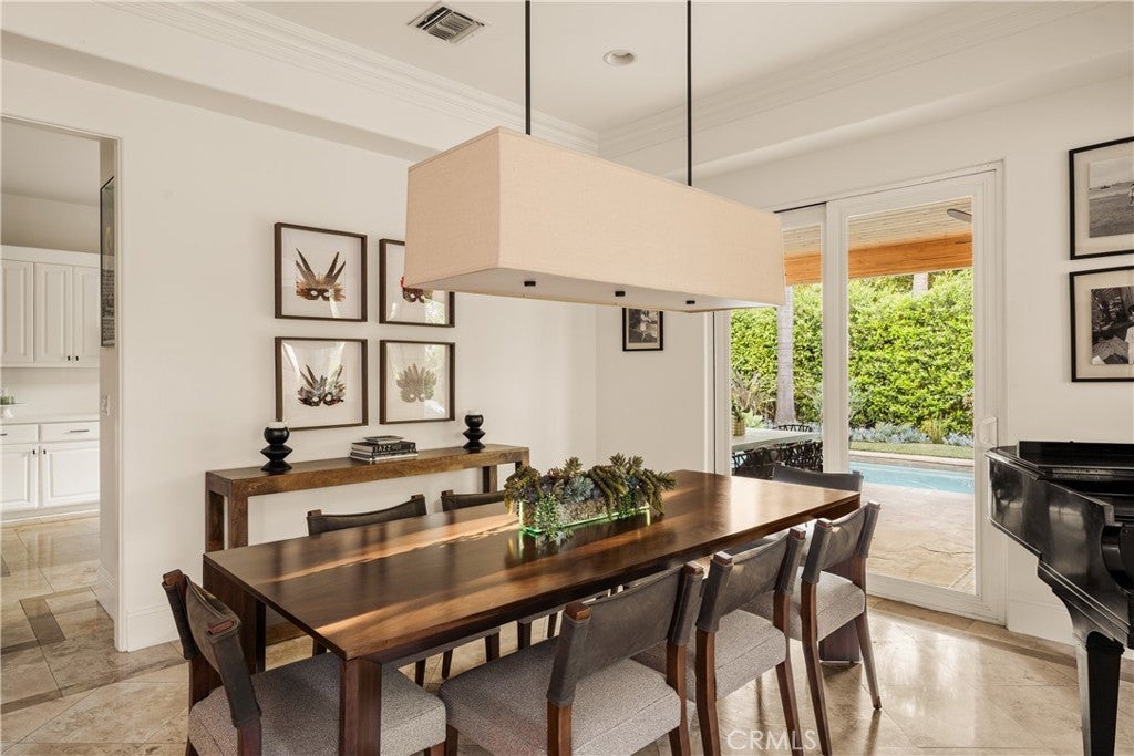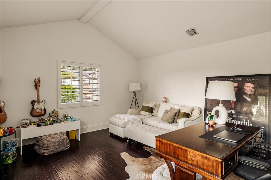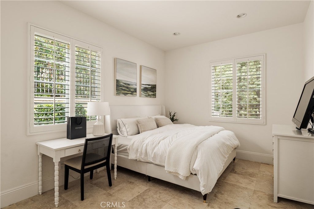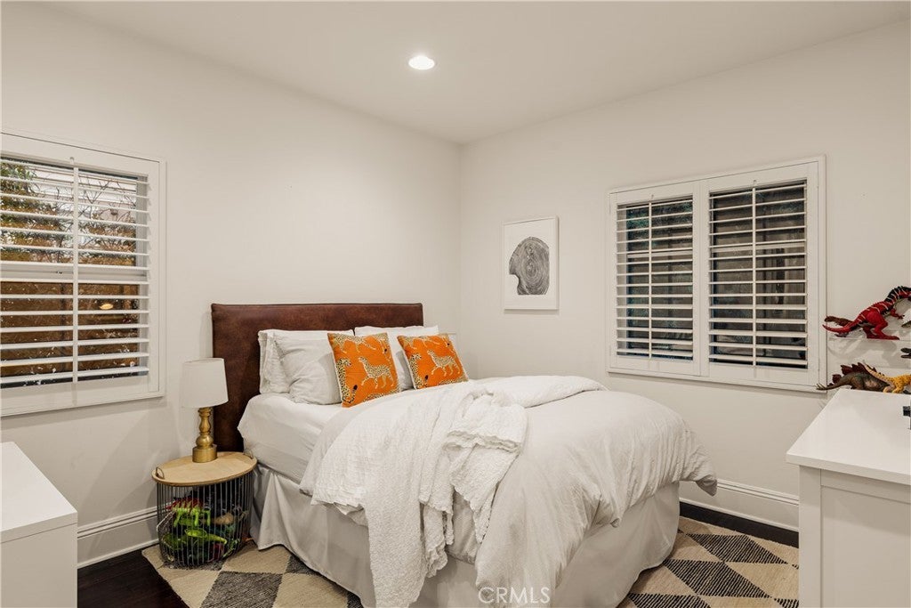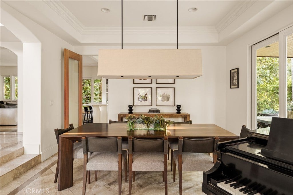 Situated within an exclusive gated enclave of just four homes with no HOA in Calabasas, this 5-bedroom, 4.5-bathroom residence offers approximately 4,365 square feet of light-filled living on an 8,654 square foot lot. A warm, inviting entry leads into interiors defined by soaring ceilings, arched architectural details, and expansive windows that fill the home with natural light. The layout is both functional and refined, with formal living and dining spaces complemented by an open-concept family room featuring custom built-ins and a fireplace. The updated kitchen is designed for everyday living and entertaining alike, with white cabinetry, generous counter space, a central island that opens seamlessly to the main living areas, and the added benefit of solar panels for enhanced energy efficiency. The main level includes a guest suite, laundry room, and a converted bonus room offering flexible use as an office, gym, media room, or playroom, along with direct access to the attached two-car garage equipped with a Tesla EV charging plug. Upstairs, the primary suite offers a true retreat, featuring vaulted ceilings, a fireplace sitting area, and private balcony access. The spa-inspired bathroom is complete with dual vanities, a soaking tub, and a glass-enclosed shower, creating a calm, resort-like feel. Additional bedrooms are spacious and well-appointed. The backyard is designed for effortless indoor-outdoor living, featuring a covered patio with wood-paneled ceiling, a pool and elevated spa, multiple lounging and dining areas, and lush, mature landscaping that provides both privacy and a serene setting. Ideally located just minutes from The Commons at Calabasas, offering premier shopping, dining, and entertainment, as well as scenic hiking and outdoor recreation in Malibu Creek State Park. With convenient access to Malibu beaches and nearby freeways, the home provides both everyday convenience and a true Southern California lifestyle. Located within the highly regarded Las Virgenes Unified School District, this home offers a rare combination of space, comfort, and prime Calabasas living.