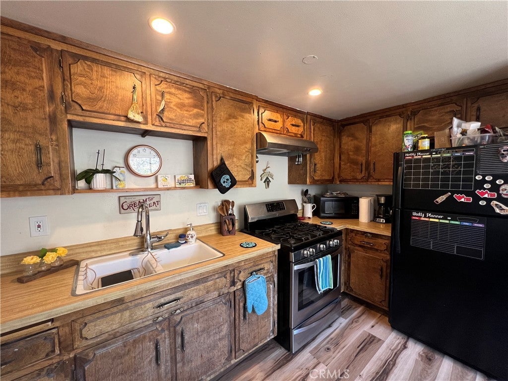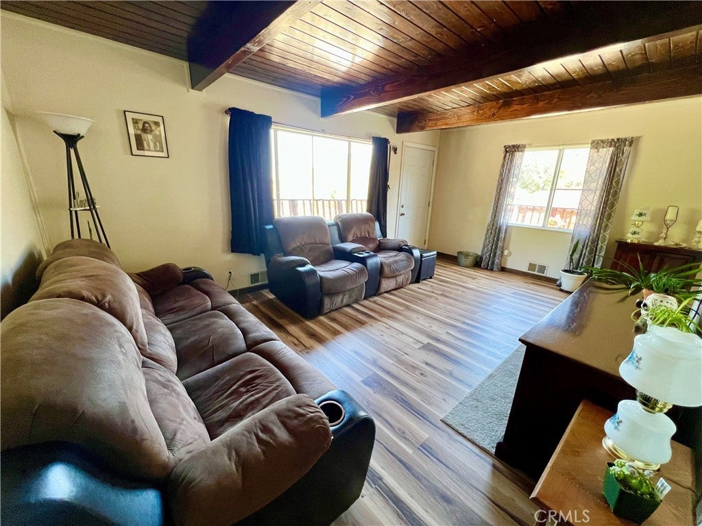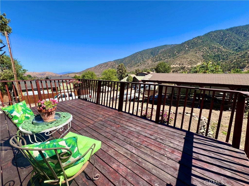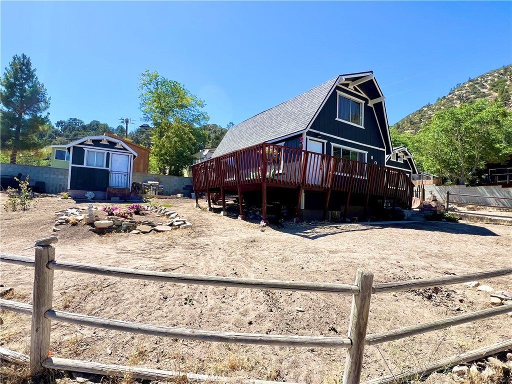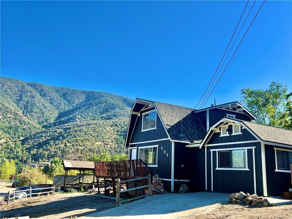 GREAT FAMILY HOME ON 2 COMBINED LOTS!! This 3 bedroom 2 bath home with freshly painted exterior and newer roof is centrally located on the "Sunny Side" of Frazier Park just off the paved road on a desirable oversized corner lot, within walking distance to restaurants and shops. The kitchen has new laminate flooring, lots of cabinets and a dining area with large windows to let in the sunlight and beautiful panoramic mountain views! Next to the kitchen is a bonus room for plenty of storage or extra living space with a piano that could be included in the sale. The inviting living room has a charming rustic knotty pine ceiling and new laminate flooring plus big windows. Just off the living room is the newly updated bathroom including an espresso colored vanity with white top, undermounted dual sinks, and a fogless touch screen dimmable mirror with ambiance lighting, 21" tall toilet and new flooring. Step down to the private primary bedroom with a high ceiling and His and Hers walk-in closets. Upstairs you'll find 2 freshly painted light and bright bedrooms with a Jack-n-Jill bathroom. Indoor laundry room with retractable stairs leading to attic storage space. The spacious yard offers an amazing new deck with solar lighting to sit and relax while taking in the spectacular views and starry nights! Plenty of room to BBQ and entertain with lots of sunny garden space including a cute shed for your tools. Covered RV parking, concrete driveway and a side yard that could provide more parking or play space. Located just 40 minutes to Santa Clarita or Bakersfield in a quaint mountain community where you can enjoy a slower paced lifestyle and four seasons of the lovely nature that surrounds you!