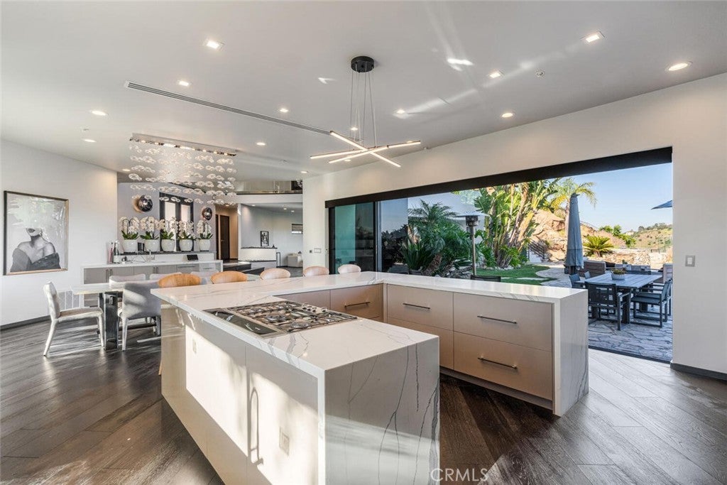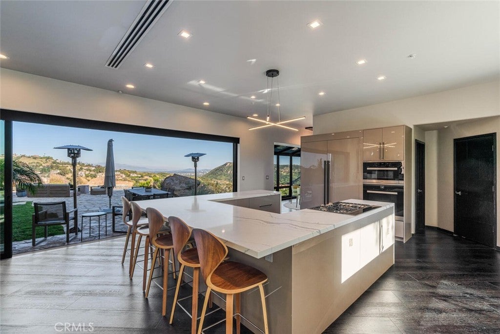 There is a distinct difference between a home that is built and one that is thoughtfully composed. This residence reflects a level of intention that is immediately felt—where architecture, natural surroundings, and expansive views are seamlessly aligned. Positioned to capture the full rhythm of the day, mornings begin with soft light filling the interiors, while evenings unfold with warm sunset hues across the horizon. These daily transitions create a sense of balance and calm, elevating the experience of living in a way that feels both grounded and inspiring. At the heart of the home is a commitment to craftsmanship. Every element has been carefully considered—stone surfaces selected for their character, cabinetry tailored with precision, and fixtures chosen for their tactile presence. This layered approach creates a refined atmosphere where luxury is expressed through subtlety and restraint, resulting in spaces that feel elevated yet inherently comfortable. Designed to live as beautifully as it presents, the layout is guided by thoughtful spatial planning that enhances both daily life and grand-scale entertaining. Rooms transition naturally, anchored by a kitchen that serves as the central heart of the home, connected to living and dining areas. Expansive openings extend the interiors outward to terraces, creating a continuous indoor-outdoor experience where guests move freely and gatherings unfold with ease. This organic flow supports both intimate moments and larger occasions, shaping a lifestyle centered on connection. Equally important is the home’s relationship to its natural setting. The surrounding landscape provides a constant sense of grounding, where open views and subtle shifts of light become an integral part of daily life. Set within the prestigious, guard-gated community of Bell Canyon, the residence balances absolute privacy with a strong sense of neighborhood. Residents enjoy shared amenities, scenic trails, and an environment that feels both secure and welcoming. Ultimately, elevated living is defined by harmony—between architecture and environment, design and function, privacy and connection. This is a home that supports the way life is truly lived, where every space and every view is experienced with intention.