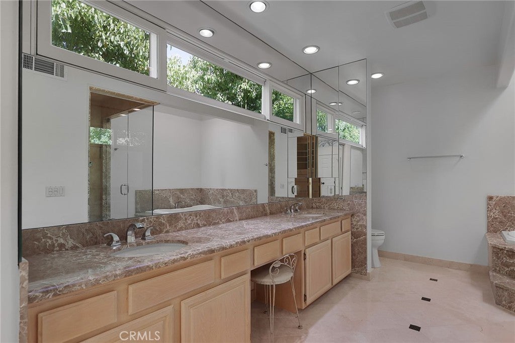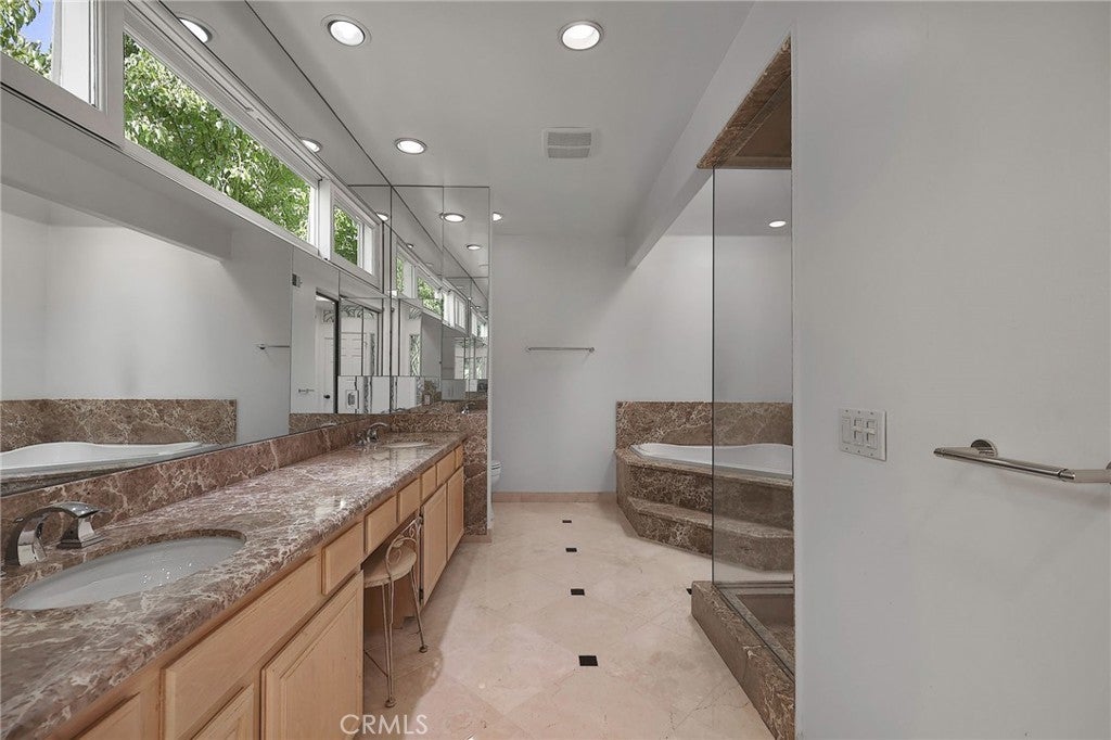 Recently redone. Gated detached home in Calabasas. This exclusive Tiffany model in Creek side in a gated community! Newer carpet upstairs just put in,light beige. Great location near the best schools and shopping and restaurants and Commons shopping area. Also near the EL Camino shopping and restaurants. Done with the finest of taste, shows like a model home! Grand entry, luxury Vinyl wood like floors throughout. High ceilings,recessed lighting throughout. The Kitchen has new counters all thru out and has tons of storage and newer appliances and with a breakfast counter. Three bedrooms and bonus room up stairs which can be used as a den,office. .There is also a downstairs room which can be used as a office, with its own entrance.! There is a formal dining room , den area ,and impressive great room / living room with Fire and Ice glass fireplace and wine closet. Newer sliders lead out to the lovely garden with patio,barbecue center ,and state of the art Dimension One Spa and fountains,also makes this a tranquil garden. Upstairs has high ceilings. There is an elegant large Primary suite, with two custom large closets. Primary bath is custom built with marble slabs counters with spa type tub,and steam shower. Upstairs also has a a large bonus room , that can be a great room,office, or kids playroom. There are two other bedrooms adjacent to a redone bathroom. All bedrooms are done with designer window treatments. Includes washer dryer. Included is a laundry room in the home. Close to the Calabasas Lake .