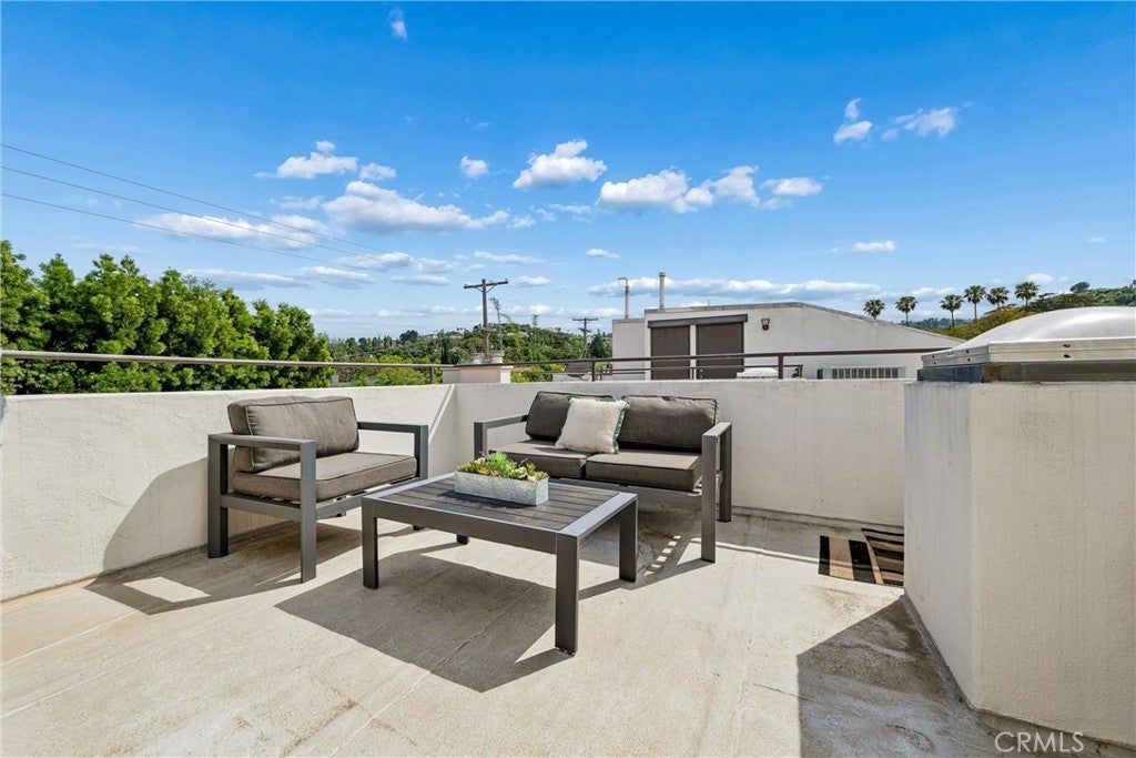 ALL OFFERS ARE DUE APRIL 14TH AT NOON. PREVIOUSLY SOLD IN MULTIPLES AT A MUCH HIGHER PRICE. Spacious, light-filled, and thoughtfully updated, this very rare 2-bedroom plus OFFICE townhome sits on one of Sherman Oaks’ most desirable streets between Stansbury and Hazeltine—just moments from Ventura Boulevard’s premier shopping, dining, and everyday conveniences. A formal entry introduces a well-designed layout featuring in-ceiling surround sound, multiple private patios and balconies, direct access to three parking spaces, and a generous in-unit laundry room updated in 2024. The oversized chef’s kitchen, remodeled in 2022, is a standout with custom wood cabinetry, chevron tile backsplash, tile flooring, Café appliances, a large center island with dining nook, and abundant storage—all enhanced by designer lighting and curated finishes. The dining area flows seamlessly into a bright living room, highlighted by Palladium-style windows and sliding doors that open to a private patio—perfect for outdoor dining and entertaining. A stylish powder room has been tastefully updated with modern fixtures and finishes. Upstairs, the primary suite offers a peaceful retreat with vaulted ceilings, a sitting area, walk-in closet, and sliding doors leading to a private balcony with treetop views. The spa-like primary bath features dual vanities and a recently remodeled soaking tub. The second bedroom includes its own walk-in closet and an updated en-suite bath. An expansive rooftop deck captures sweeping, nearly 180-degree views—ideal for relaxing or hosting guests. Additional features include a tankless water heater (installed approximately two years ago), convenient access to the 101 Freeway and Westside routes, and close proximity to Ventura Boulevard hotspots, including shopping, dining, Ralphs, and Whole Foods. Set within a meticulously maintained community known for its lush landscaping and strong curb appeal, this home offers comfort, style, and an exceptional location.