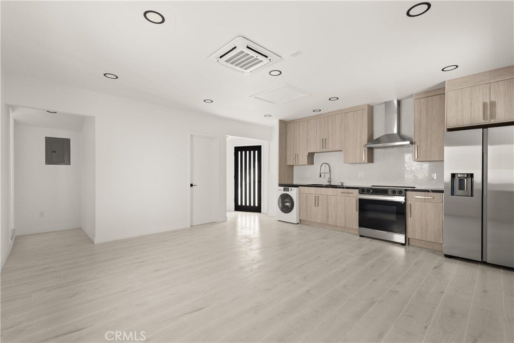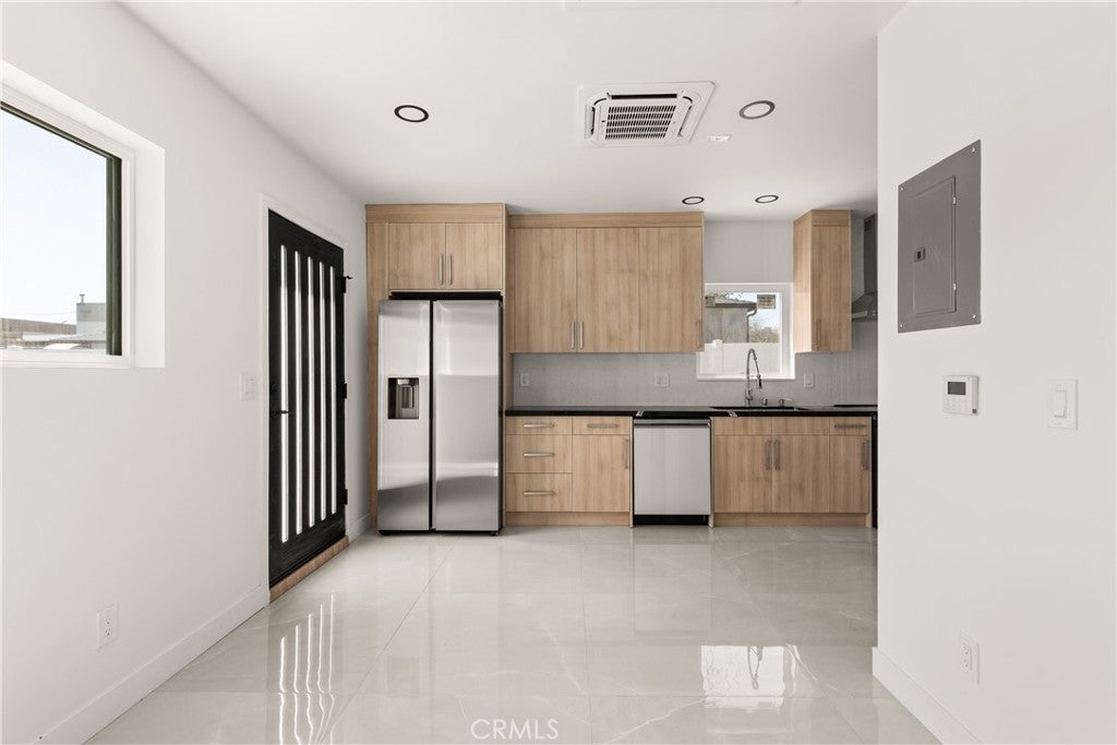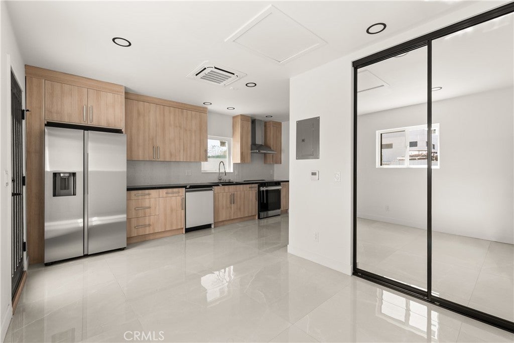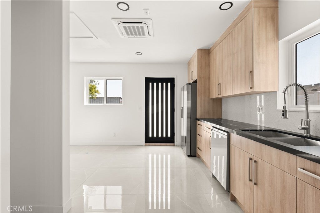 Situated in Sun Valley, this fully updated multi-unit property offers a rare blend of modern design, flexibility, and income potential. Comprised of a 1,296 sq ft 2-bedroom, 1-bath main residence, a 526 sq ft 1-bedroom, 1-bath detached ADU, and a 300 sq ft studio JADU, the property totals approximately 2,122 sq ft of living space. The main home has been thoughtfully renovated with a clean, contemporary aesthetic, featuring an open-concept layout, large-format tile flooring, recessed lighting, and abundant natural light throughout. The kitchen is finished with sleek cabinetry, quartz countertops, and stainless steel appliances, seamlessly flowing into the living and dining areas for everyday comfort and entertaining. The detached ADU mirrors the same modern design quality, offering a private and fully equipped living space—ideal for rental income, extended family, or guests. The studio JADU adds further versatility, perfect as an additional income-producing unit, home office, or creative space. The exterior showcases a refreshed modern facade with smooth stucco finishes, updated lighting, and clean lines, creating strong curb appeal. Each unit is thoughtfully positioned to provide privacy and independence, enhancing both livability and rental appeal. Conveniently located near the 5, 170, and 118 freeways, the property offers easy access to Burbank, North Hollywood, and the greater San Fernando Valley. Enjoy close proximity to Hansen Dam Recreation Area, local parks, and outdoor trails, along with nearby shopping and dining options in Sun Valley, North Hollywood, and Burbank’s vibrant retail and entertainment corridor. This property presents a compelling opportunity to live in one unit while generating income from the others, or to fully maximize its income-producing potential.