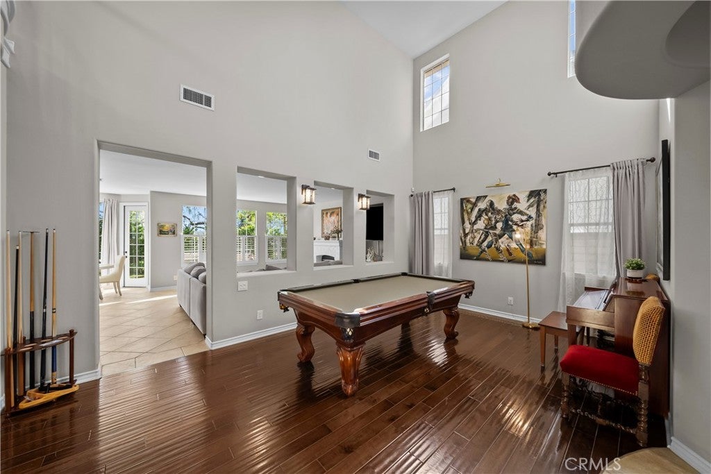 Welcome to luxury living behind the gates of the prestigious Bridgeport Island community! This beautifully situated 4-bedroom, 3 bath home offers a rare opportunity to enjoy serene waterfront surroundings, with a charming stream flowing just behind the property—creating a peaceful, private backdrop that feels like a daily retreat. This bright and airy home is filled with natural light, enhancing the spacious and functional floor plan designed for both everyday living and entertaining. A highly desirable first-floor room offers the flexibility to be converted into a guest suite, home office, or private retreat—perfect for multi-generational living or visiting guests. Upstairs, you’ll find well-appointed bedrooms providing comfort and privacy for the whole household. The home also features a three-car garage, offering ample space for parking, storage, or even a home gym setup. And it also features a newer 40k paid solar system, saving hundreds a month. Step outside to enjoy the tranquil setting, where the soothing sounds of the stream and nearby walking paths invite you to unwind. Residents of Bridgeport Island enjoy exclusive access to resort-style amenities, including a private lake with scenic pathways, pools, parks, and beautifully maintained grounds that create a true community lifestyle. Whether you're taking an evening stroll around the lake, enjoying peaceful water views, or entertaining in your own backyard, this home offers the perfect blend of elegance, comfort, and location. Don’t miss this rare opportunity to live in one of Valencia’s most sought-after gated communities! No Mello Roos and don't forget about the 40k paid solar.